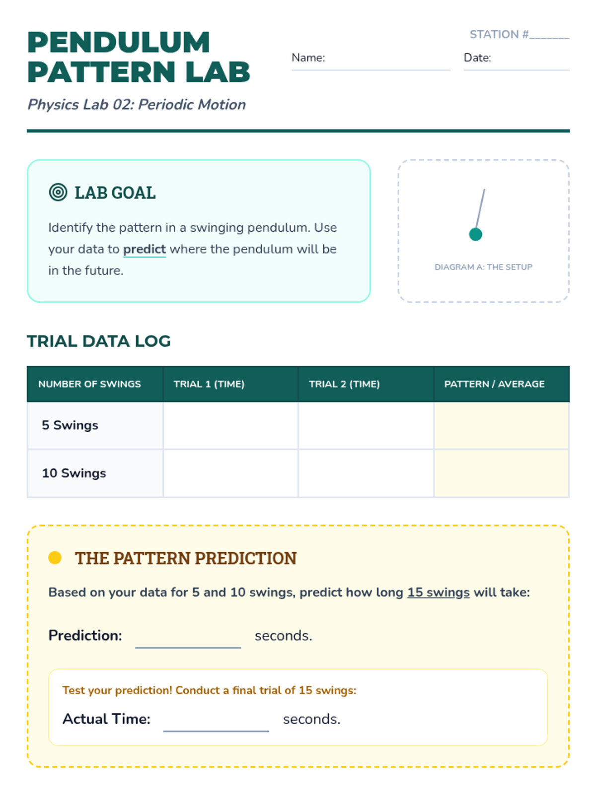 Students use pendulums to observe, time, and count periodic motion, discovering predictable patterns in swinging objects.