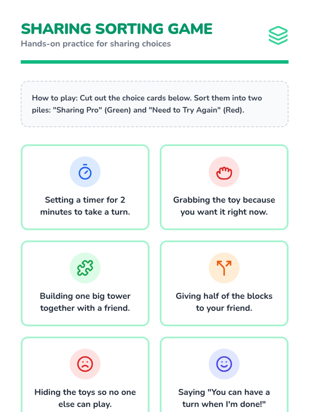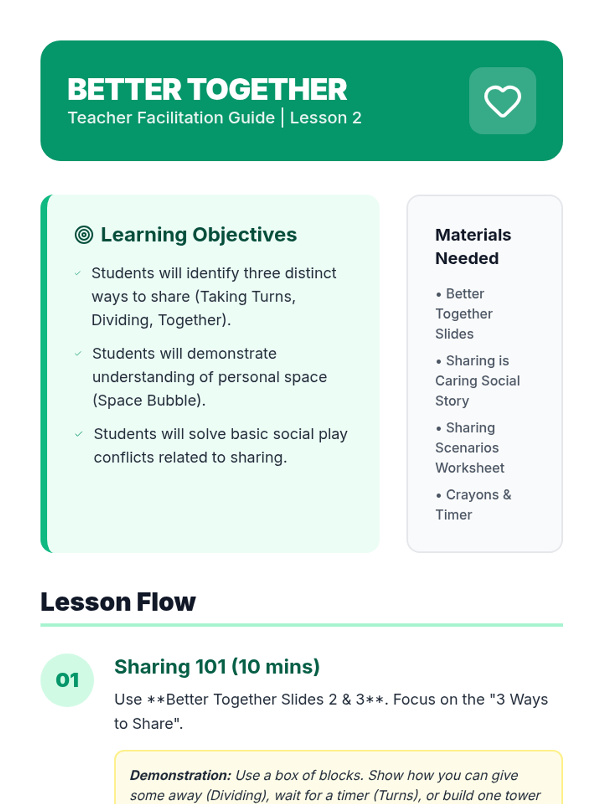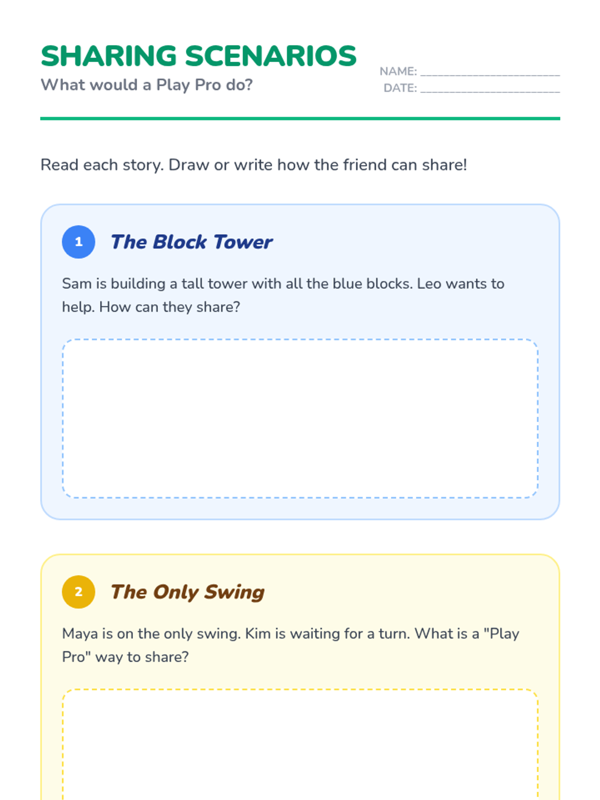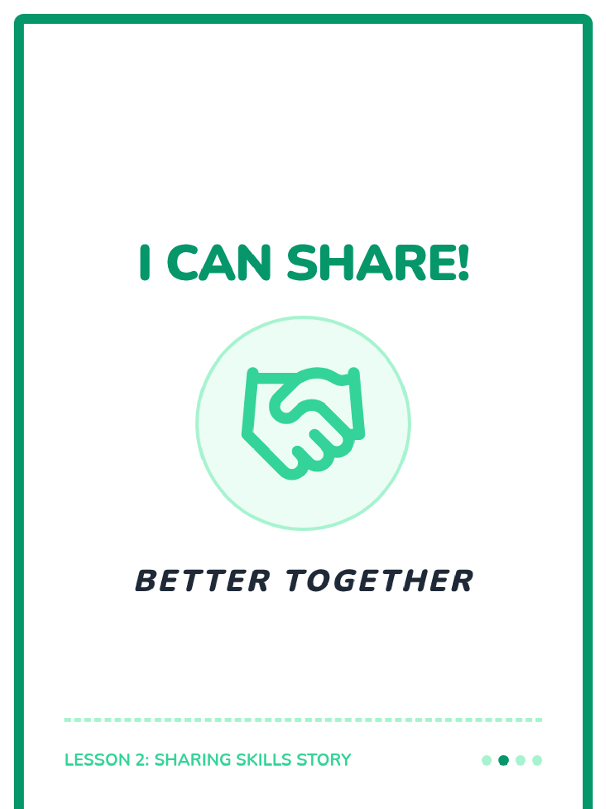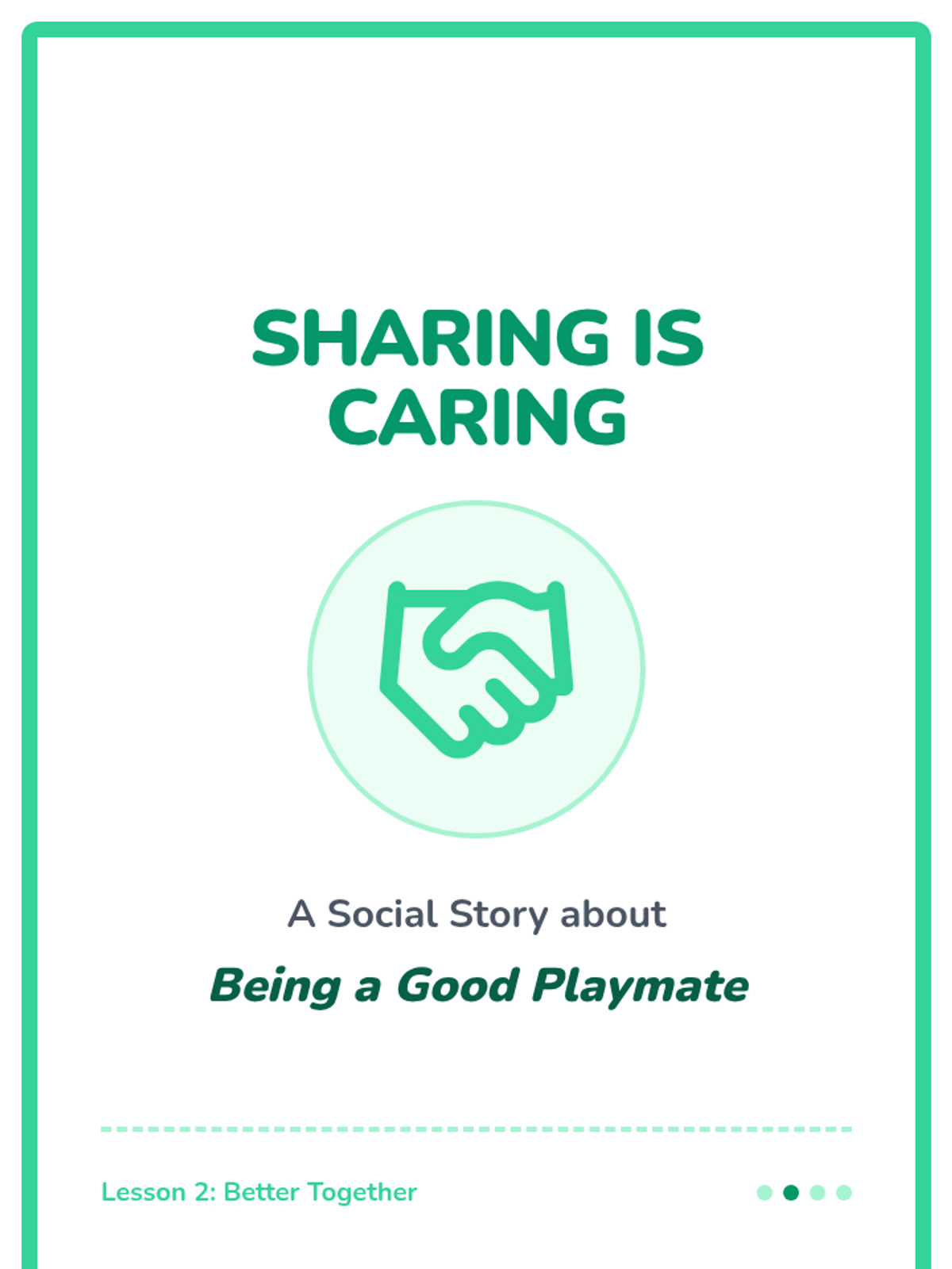 This lesson covers the essentials of interacting during play, specifically focusing on how to share toys and space with others.