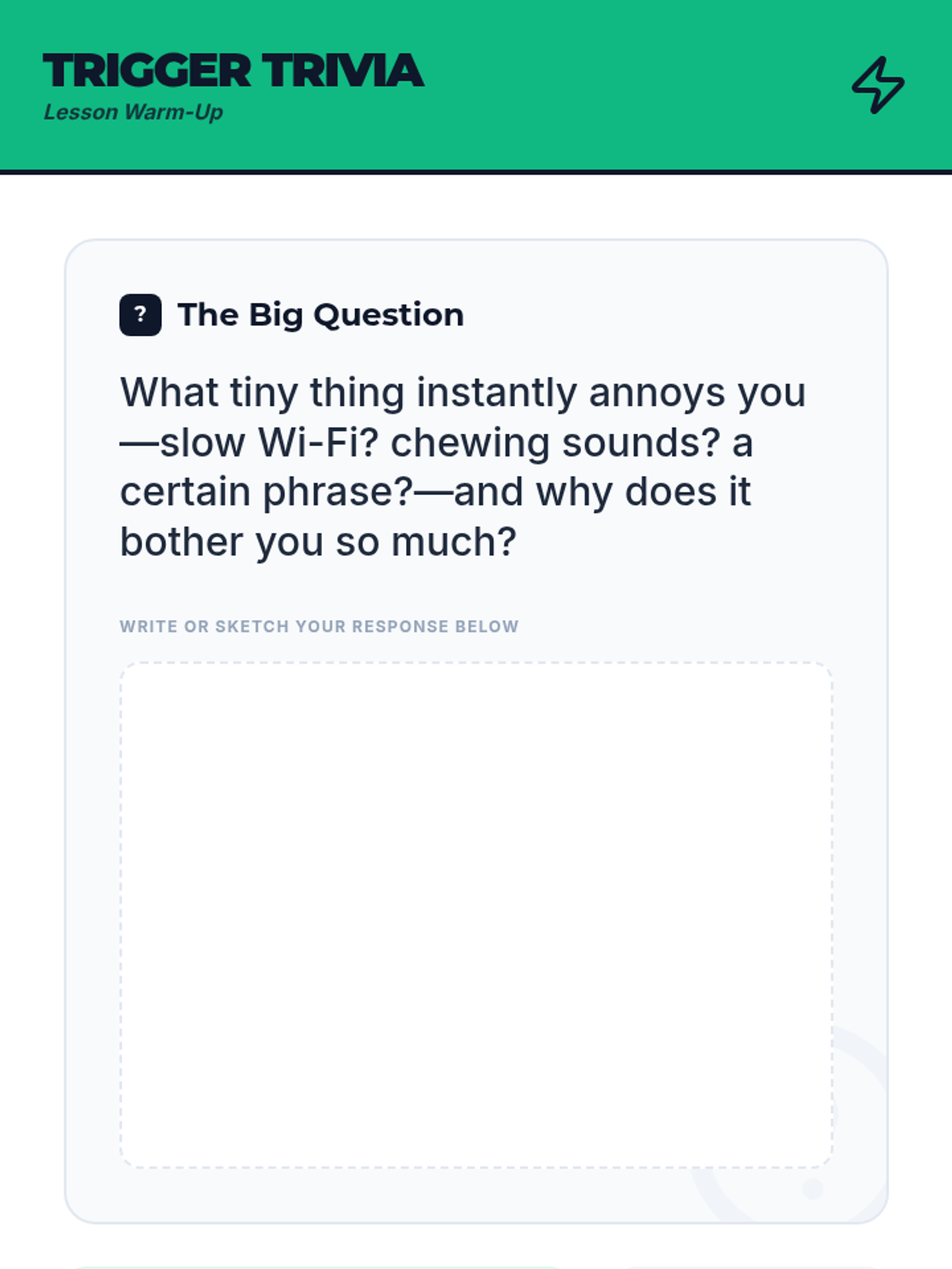 Students identify personal stress triggers and develop a 'relief valve' system of coping strategies. The lesson focuses on recognizing physical signs of stress and planning proactive responses.