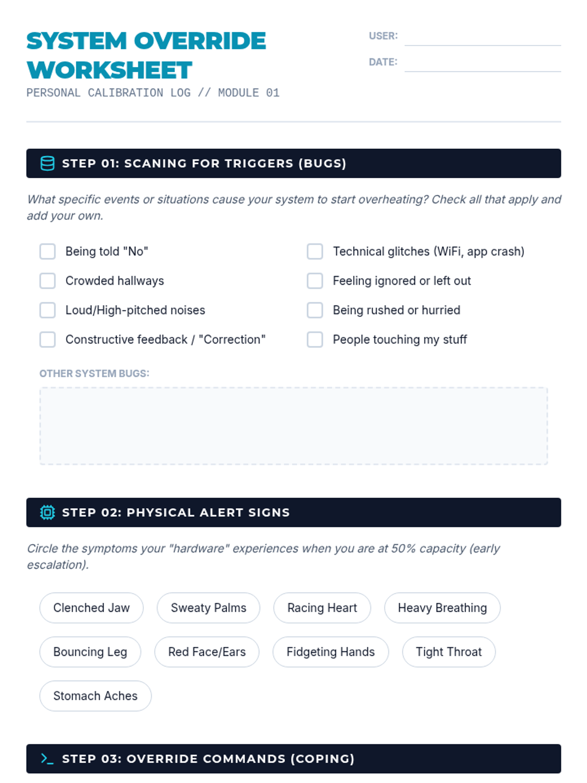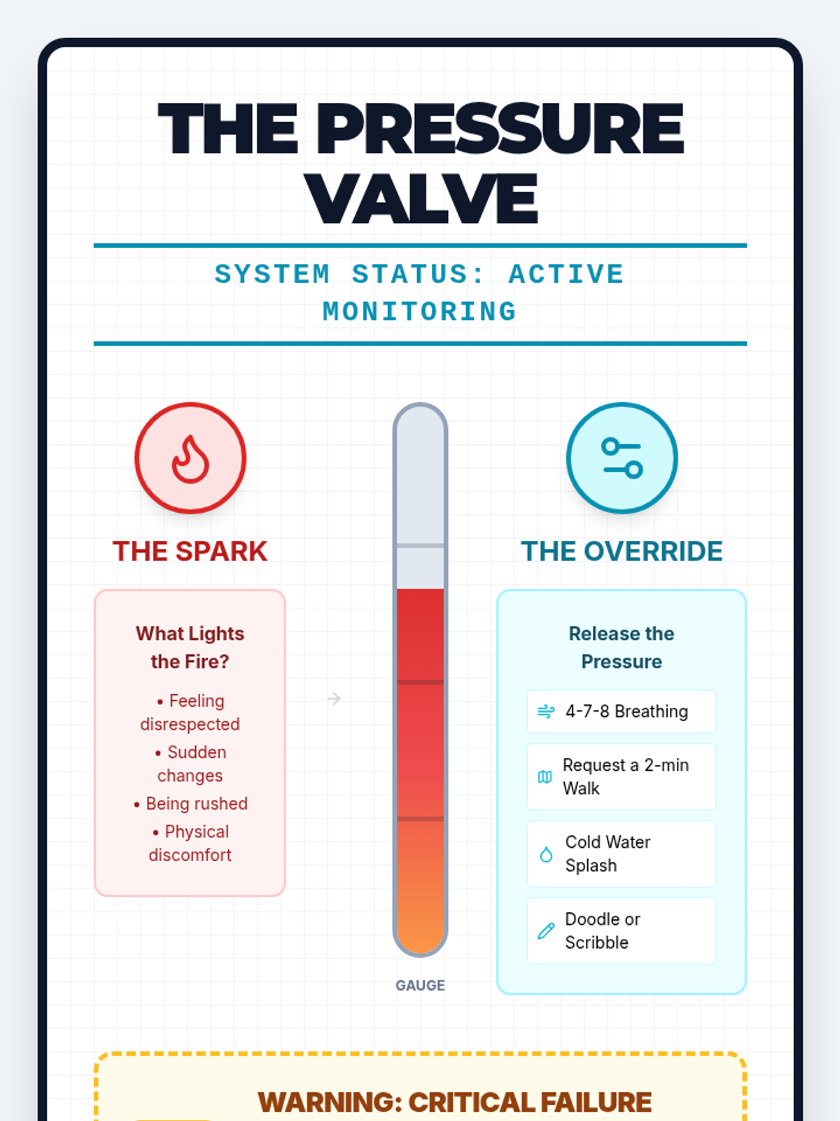 Focuses on identifying personal triggers and learning immediate 'system override' techniques to prevent emotional escalation.