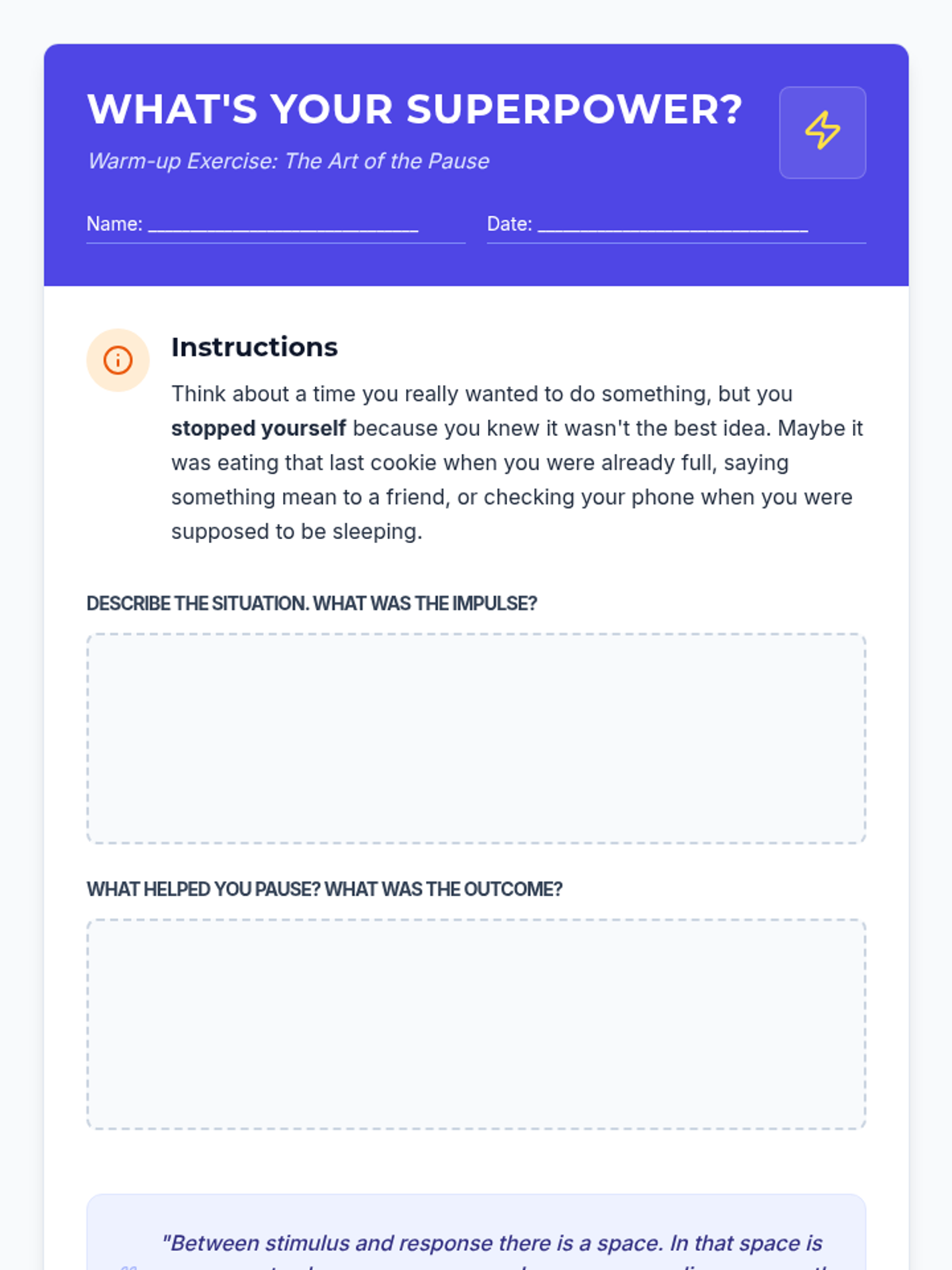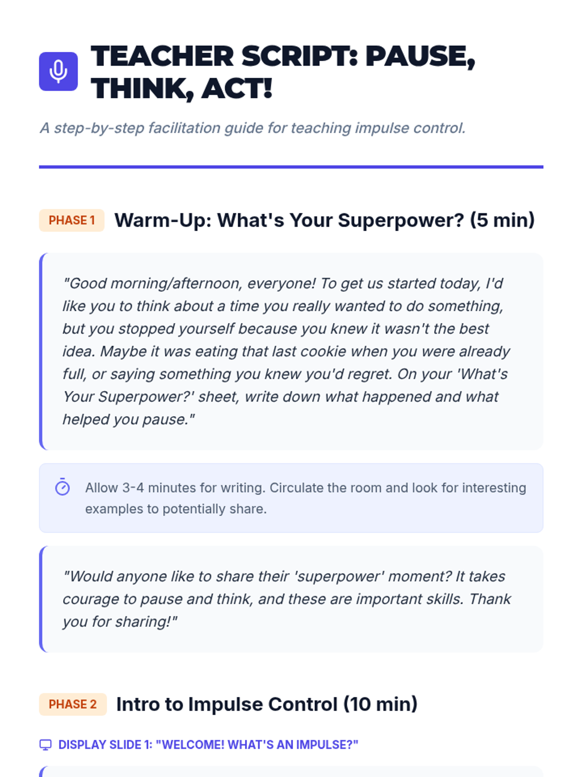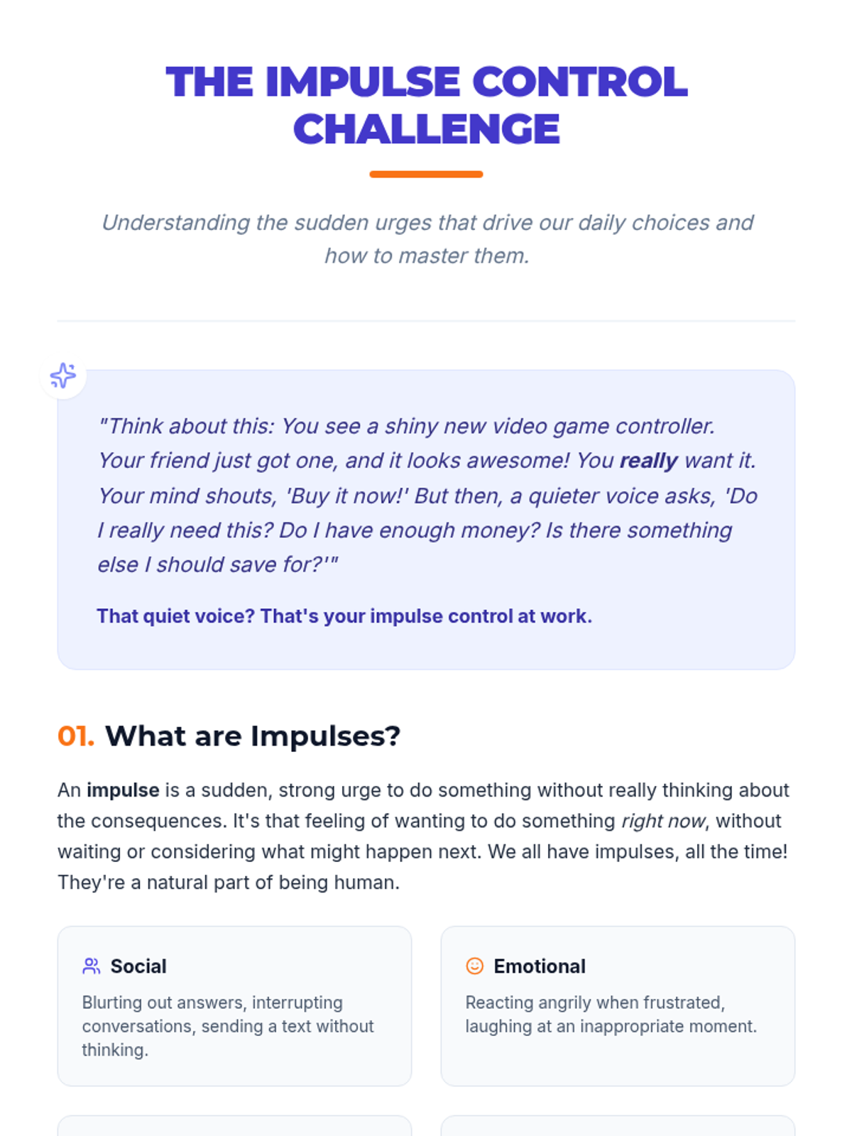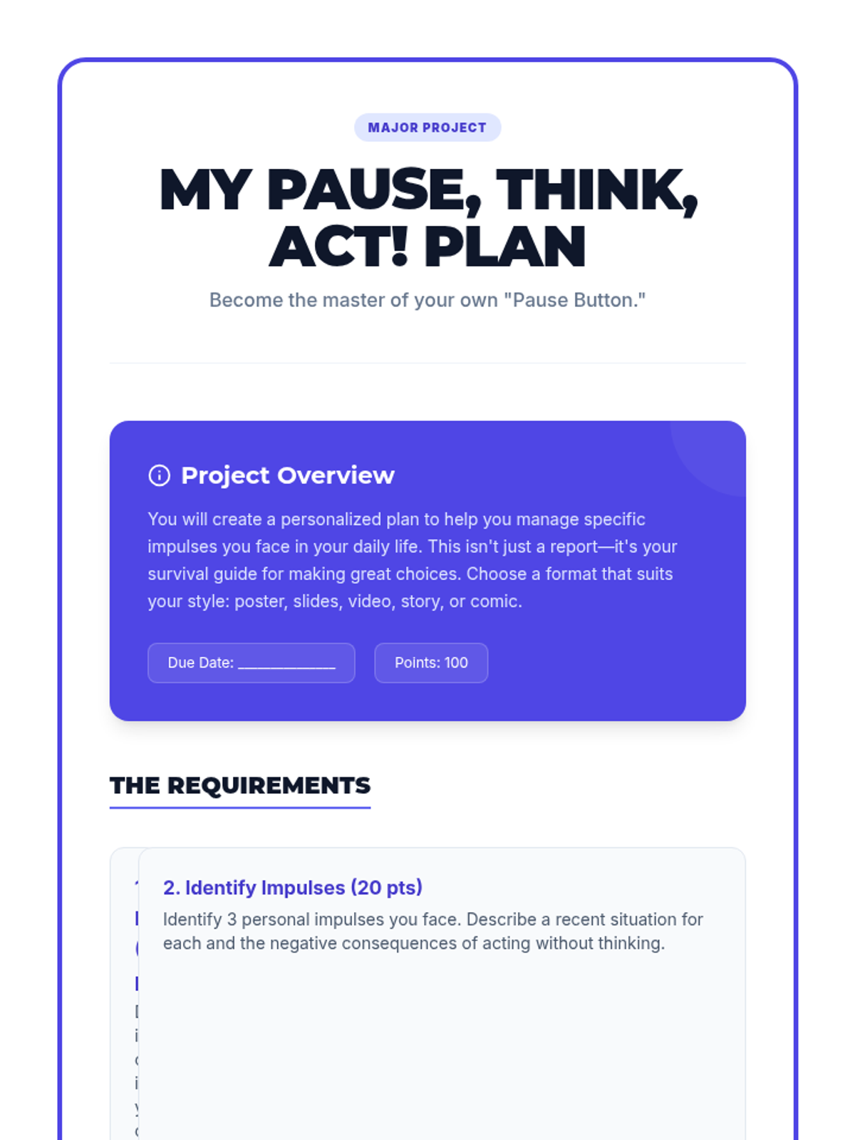 This lesson empowers middle school students with essential impulse control strategies through the 'Stop, Breathe, & Choose' method. Students explore the impact of impulsive behavior and practice techniques to respond thoughtfully in social, academic, and personal situations.