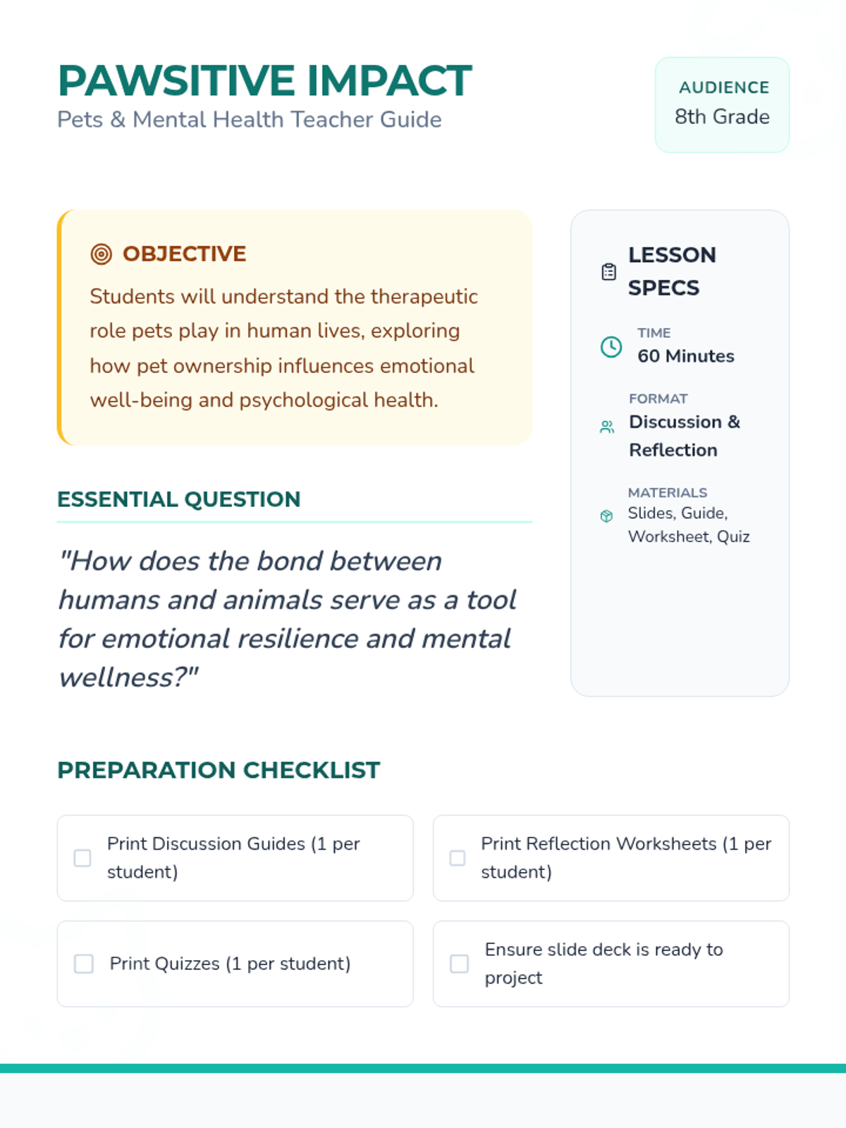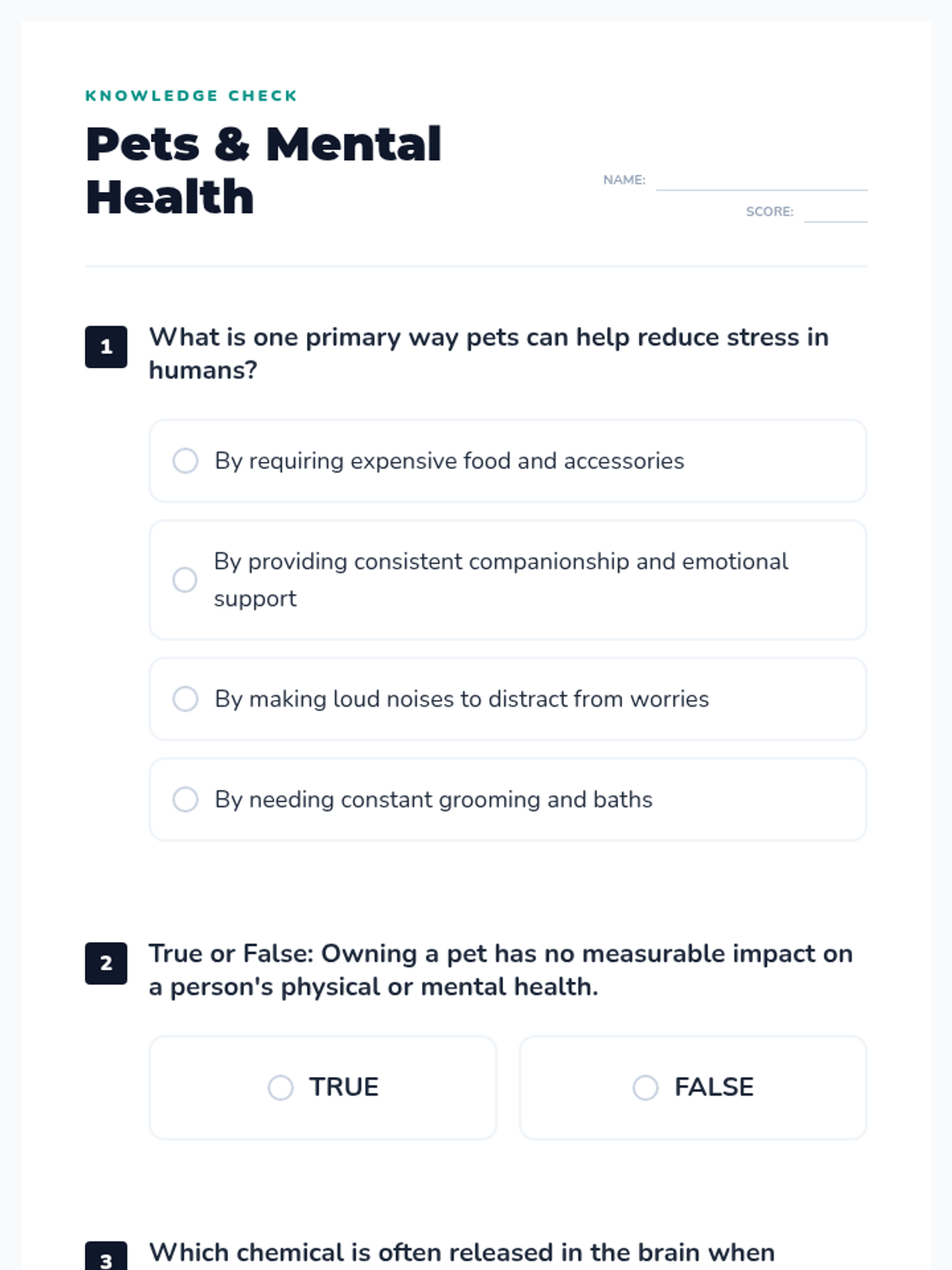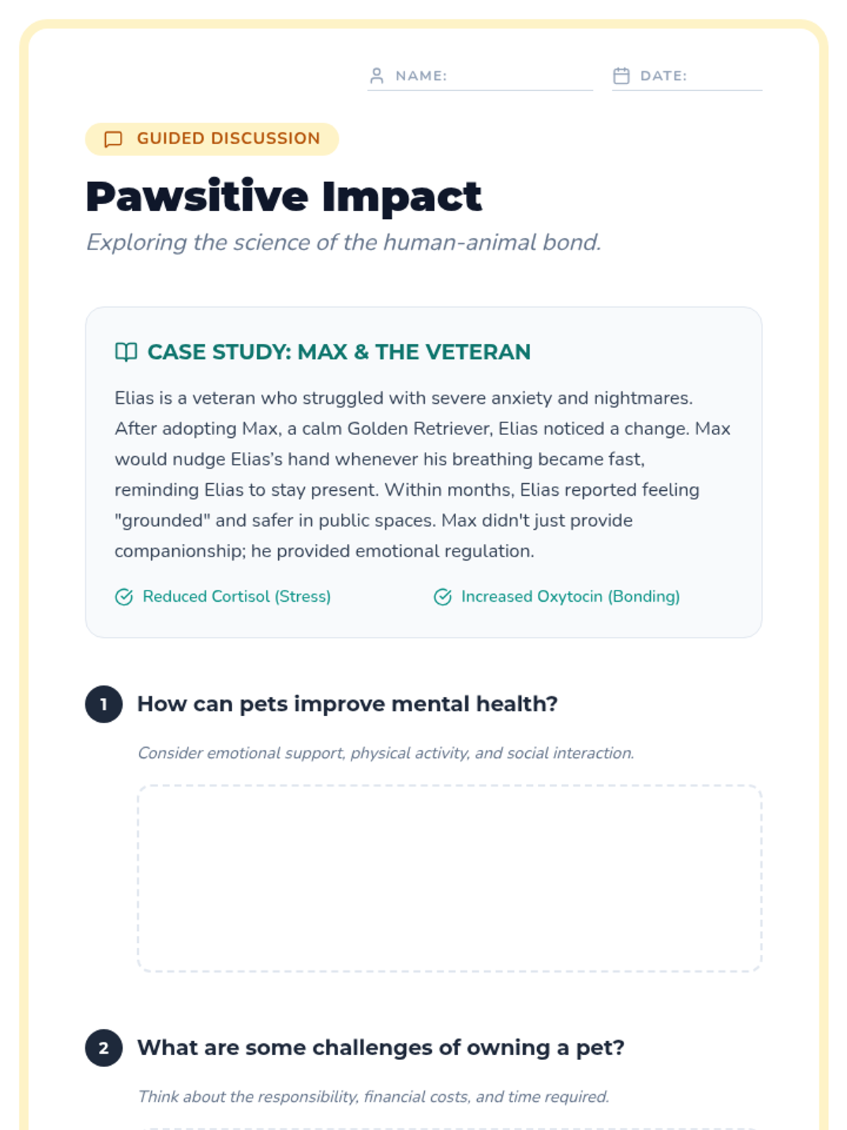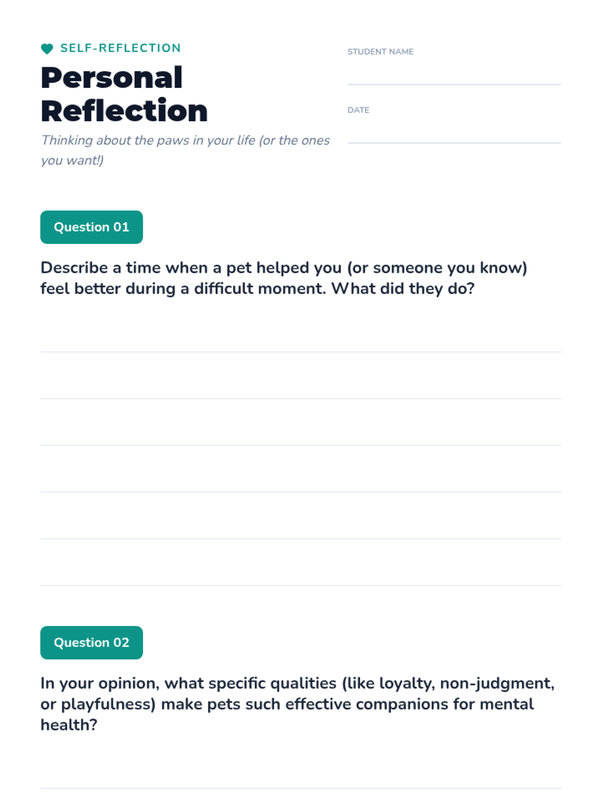 Students will explore how owning pets, such as puppies, can positively influence mental health and well-being through case studies and personal reflection.