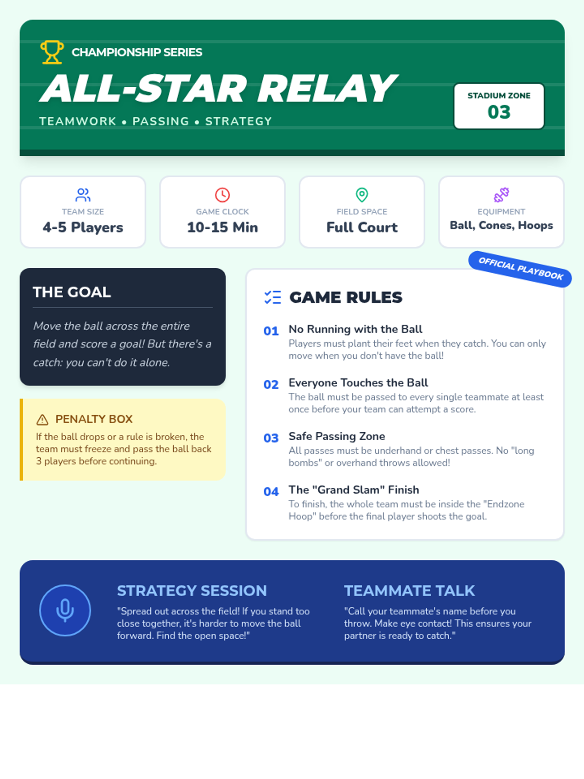 A comprehensive management system for outdoor recess, designed for 3 staff members overseeing 50 students. Includes visual supports, safety protocols, and structured play guides.