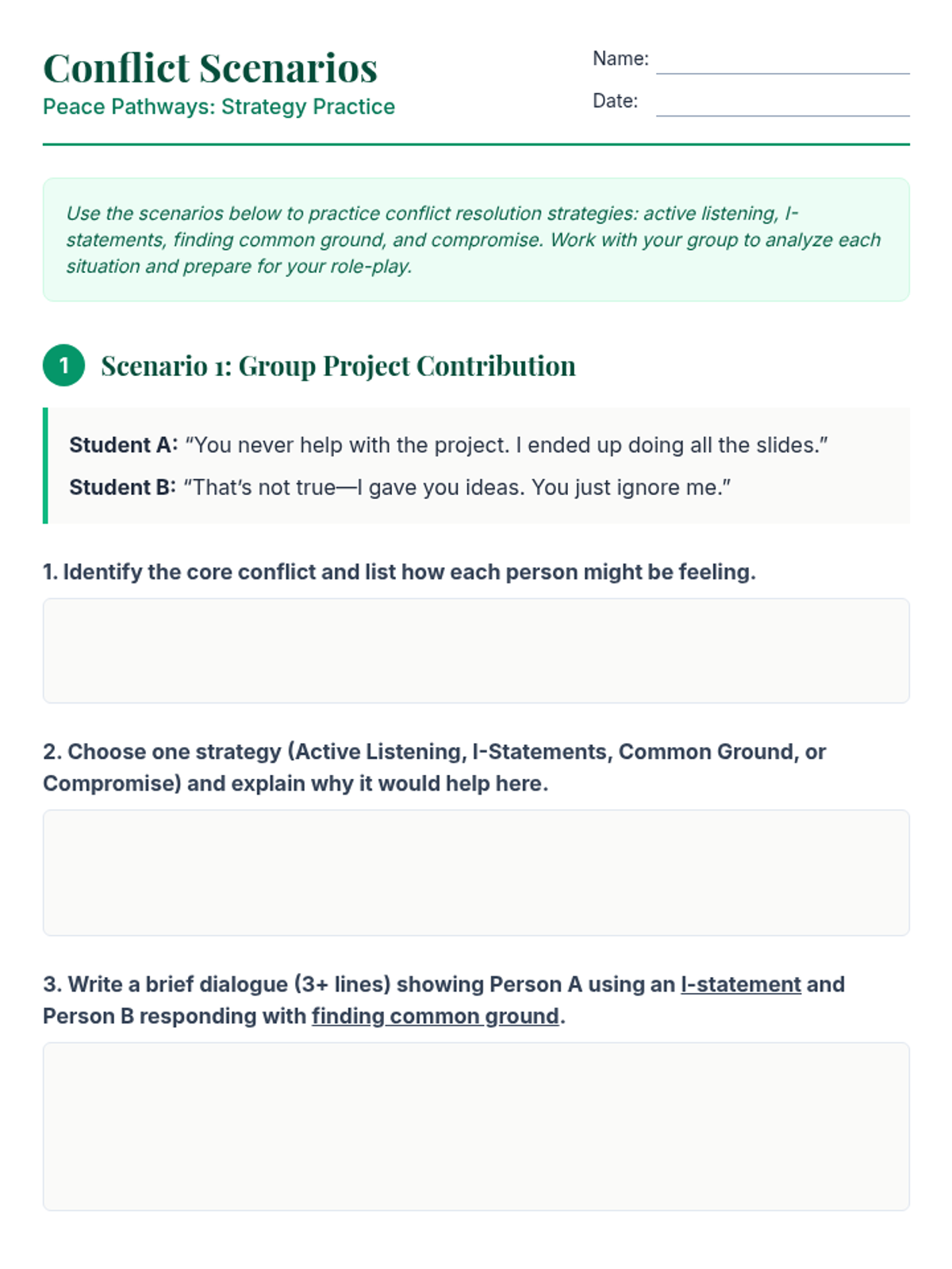 A 45-minute Tier 1 classroom lesson for 9th graders focused on learning and practicing conflict resolution strategies like active listening, I-statements, and compromise.