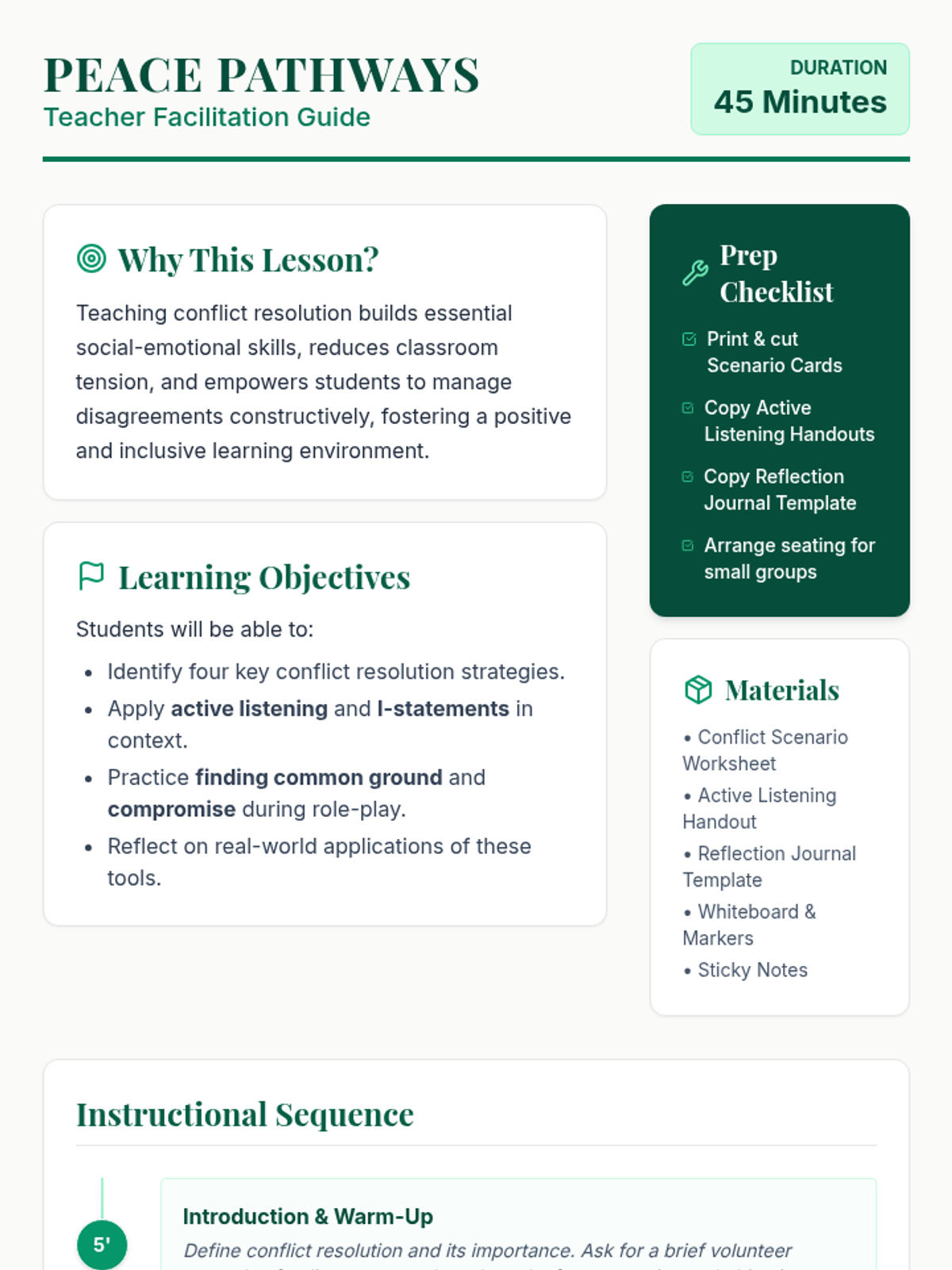 A high-speed micro-lesson designed to give students actionable strategies for de-escalating conflicts with peers and teachers in under 10 minutes. Updated with the Peace Protocol framework.