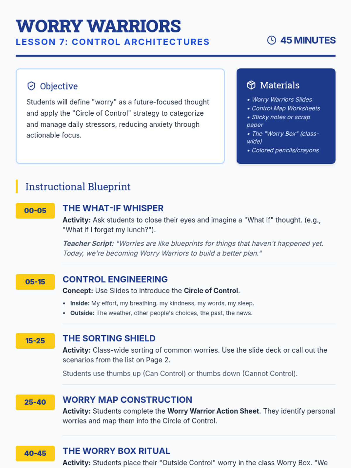 This lesson introduces students to essential conflict resolution strategies and emotional intelligence vocabulary. Students will learn to navigate social challenges using Kelso's Choices, I-Messages, and the STEP model, while also exploring the importance of healthy boundaries.