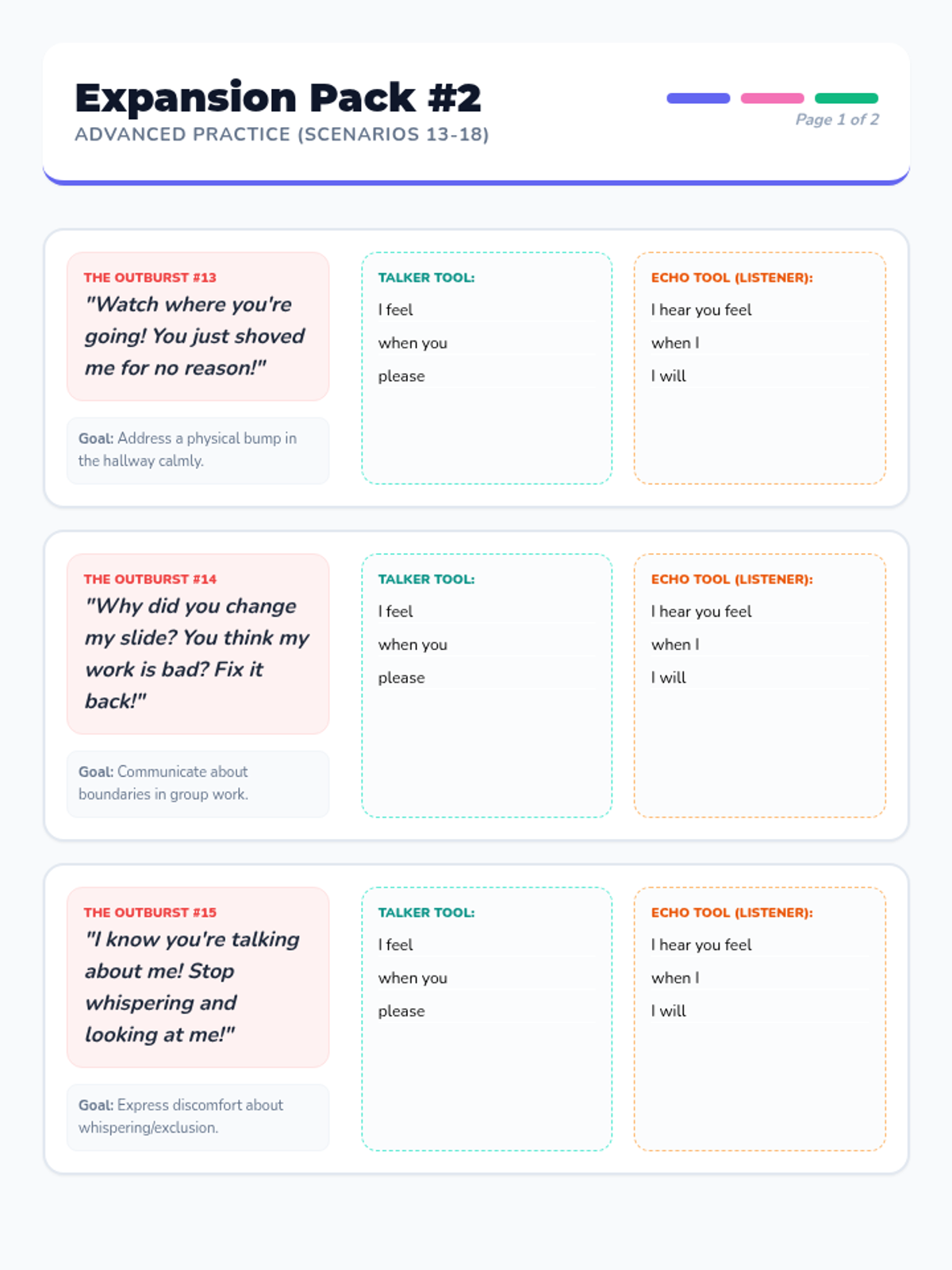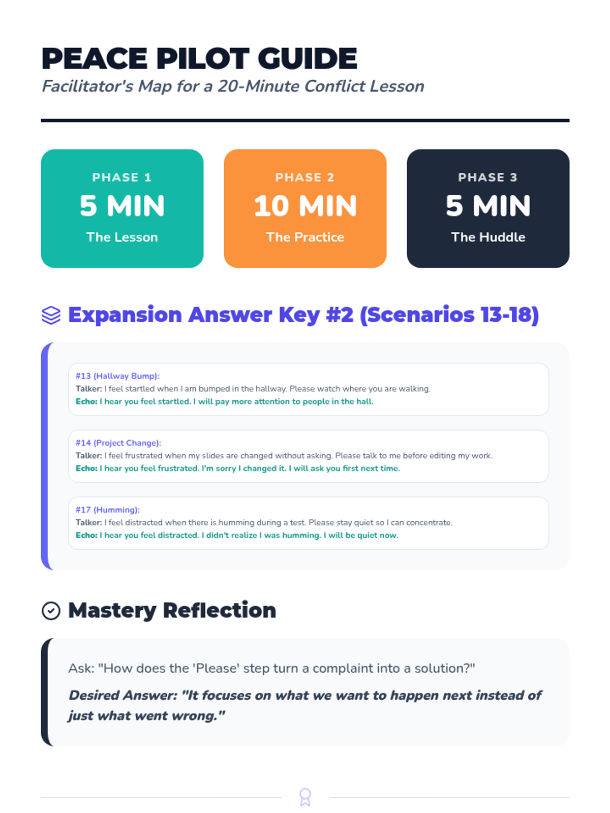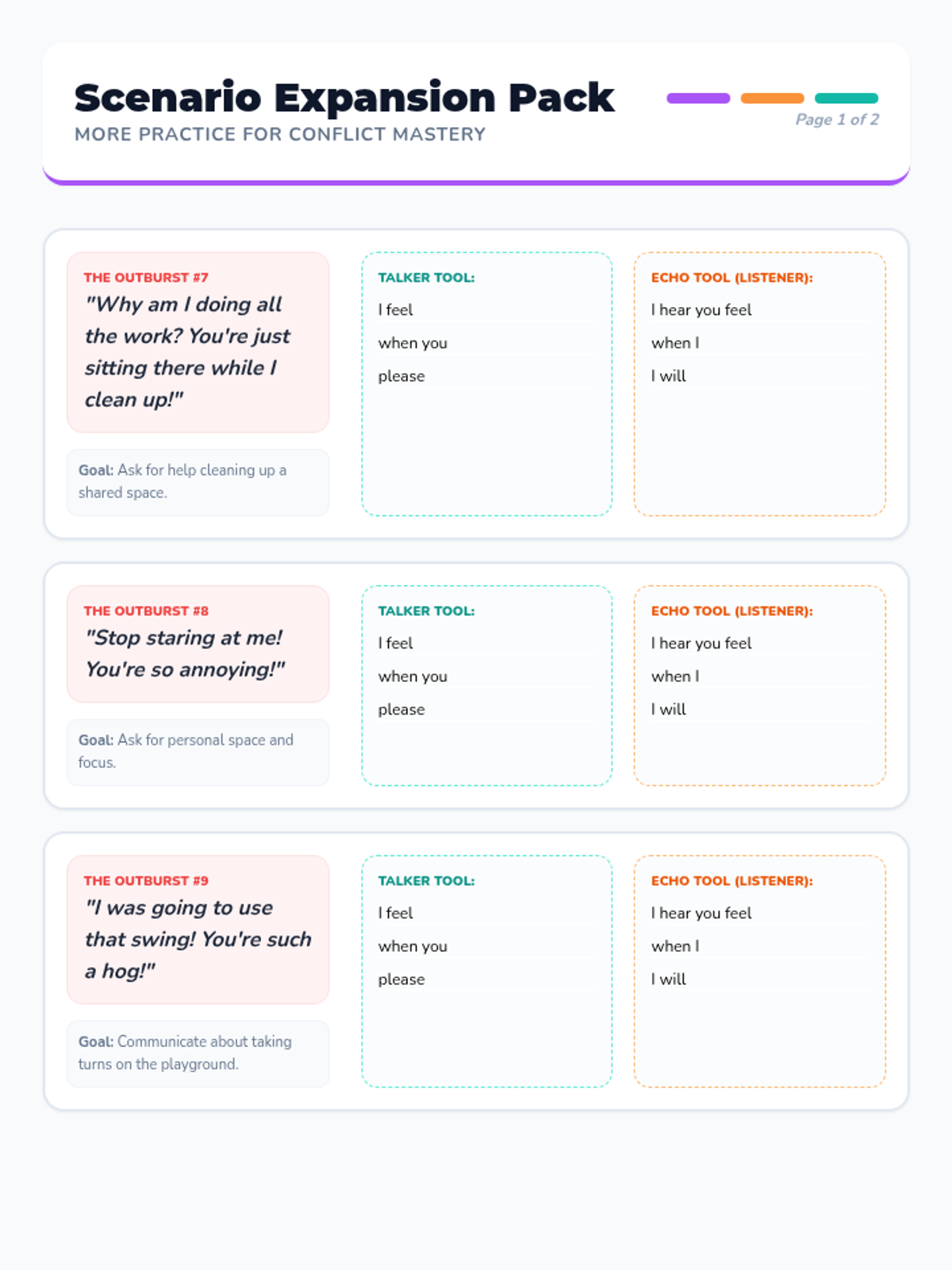 A 20-minute lesson on resolving conflicts with kindness and respect using 'I-statements' to express feelings and needs without blame.