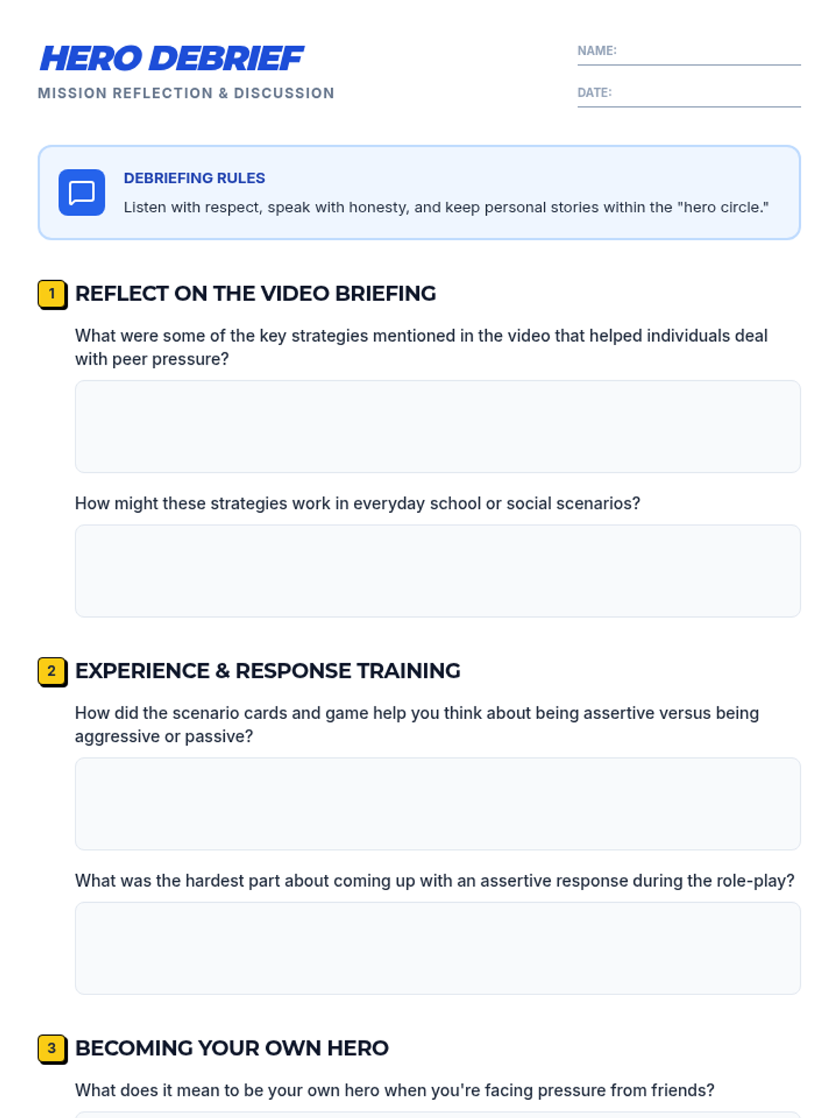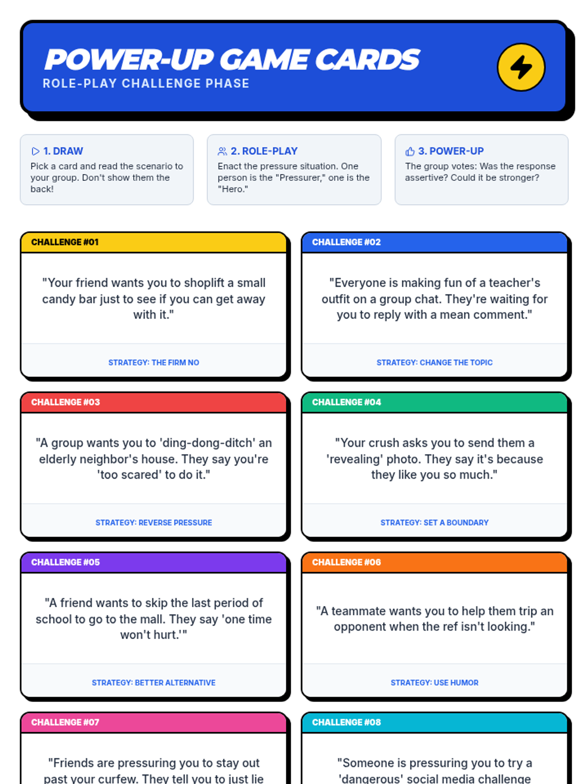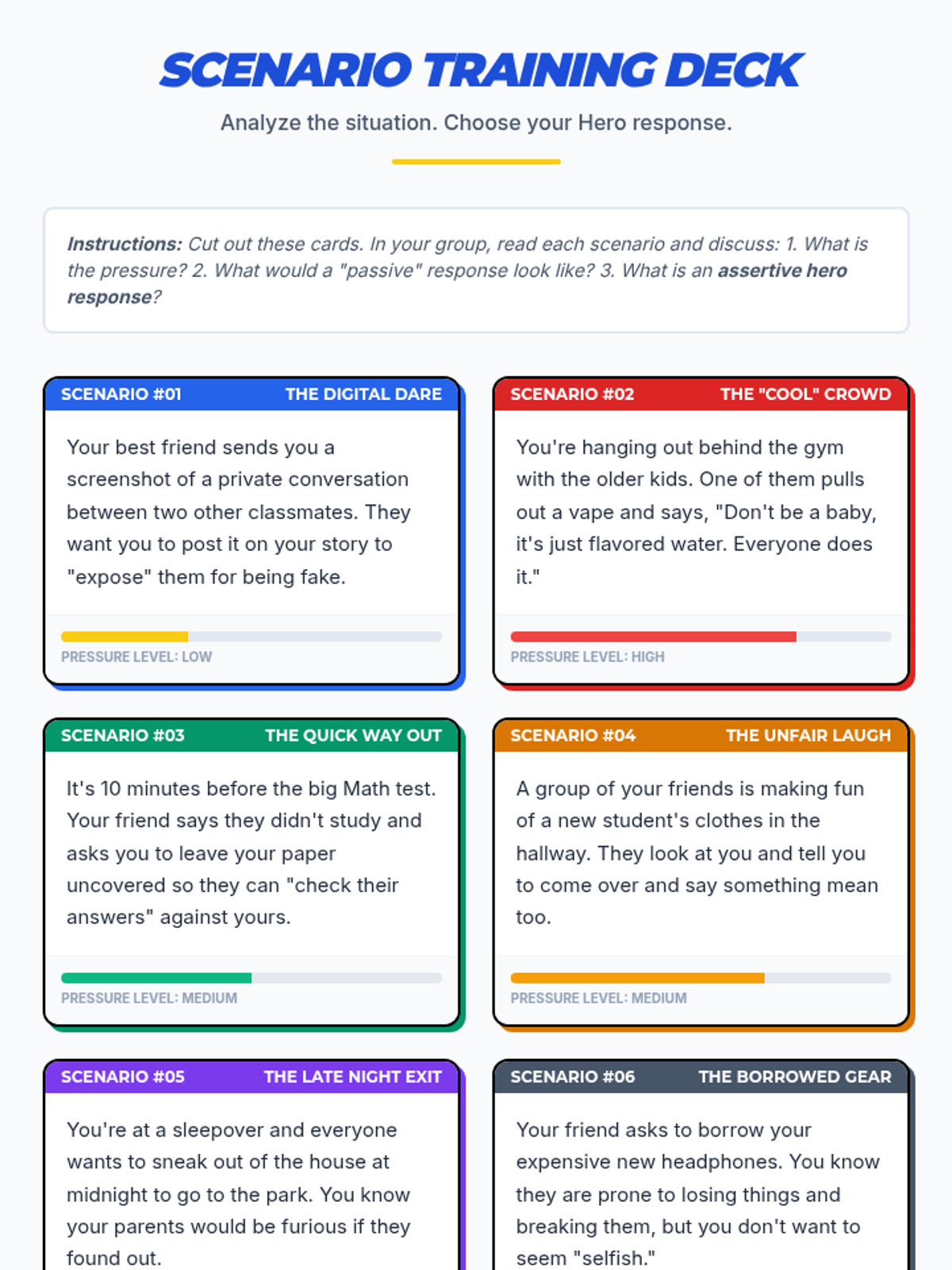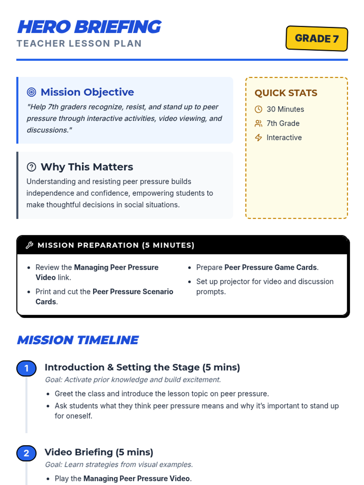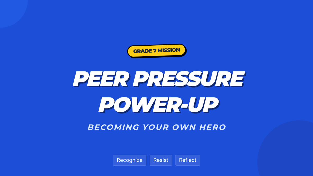 This interactive 7th-grade lesson empowers students to resist peer pressure using a superhero-themed approach. Through role-playing, scenario analysis, and strategic 'Power-Up' techniques, students build the confidence and assertiveness needed to be their own hero in social situations.