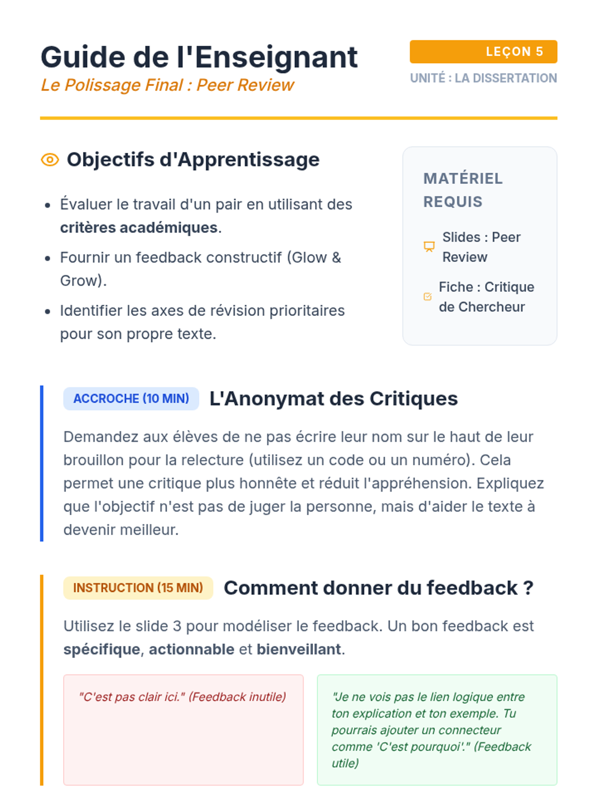 A mastery-based session where students use a formal rubric to provide feedback and refine their final drafts.