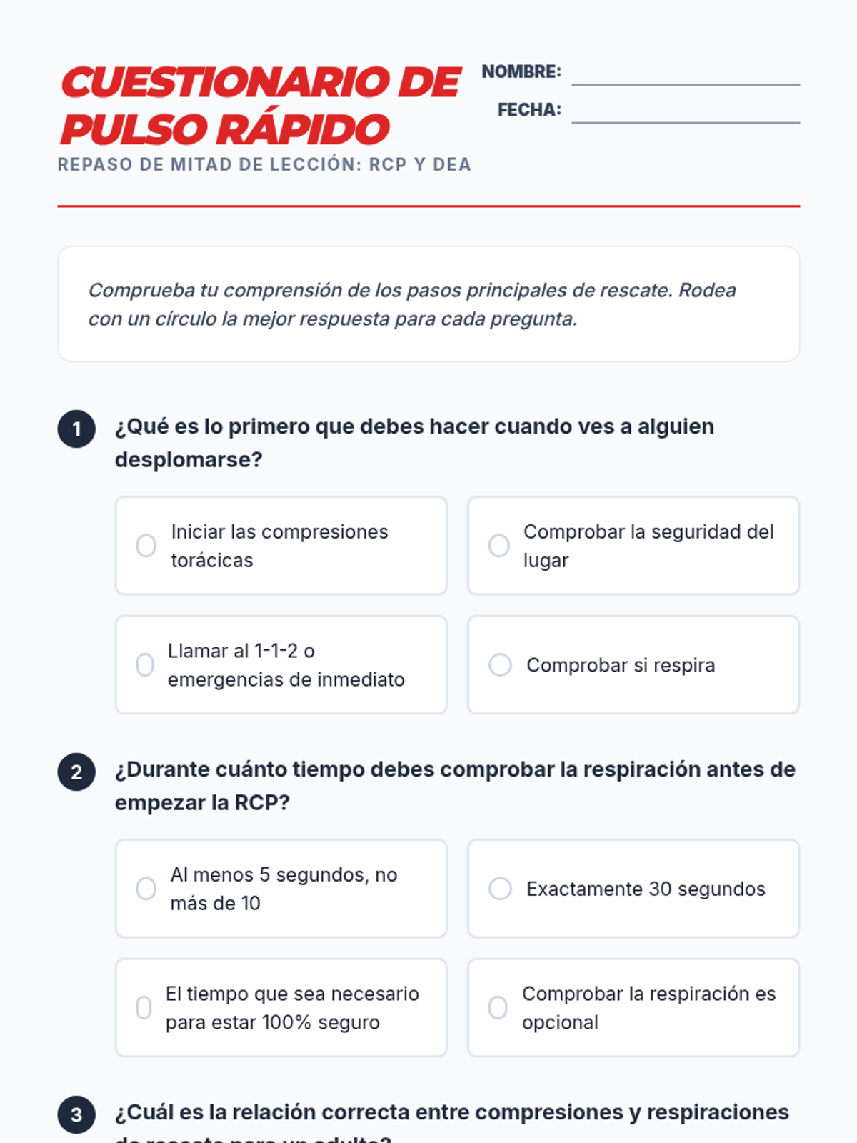 A comprehensive training lesson for teens on CPR and AED procedures following American Red Cross standards, covering scene assessment, compressions, rescue breaths, and AED operation.