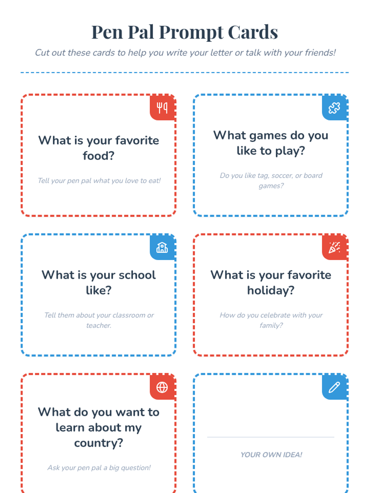 Students will learn about global cultures and develop communication skills by writing letters to international pen pals, fostering empathy and a growth mindset.