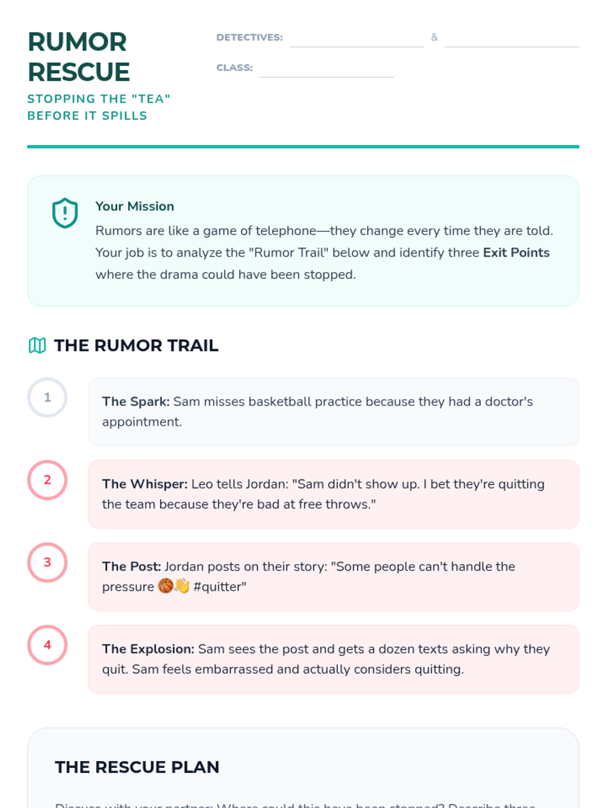 A 1:1 guided session designed for middle schoolers to navigate social challenges like gossip and teasing. This lesson focuses on internal resilience (building a 'Social Shield') and external advocacy (using a 'Clear Voice').