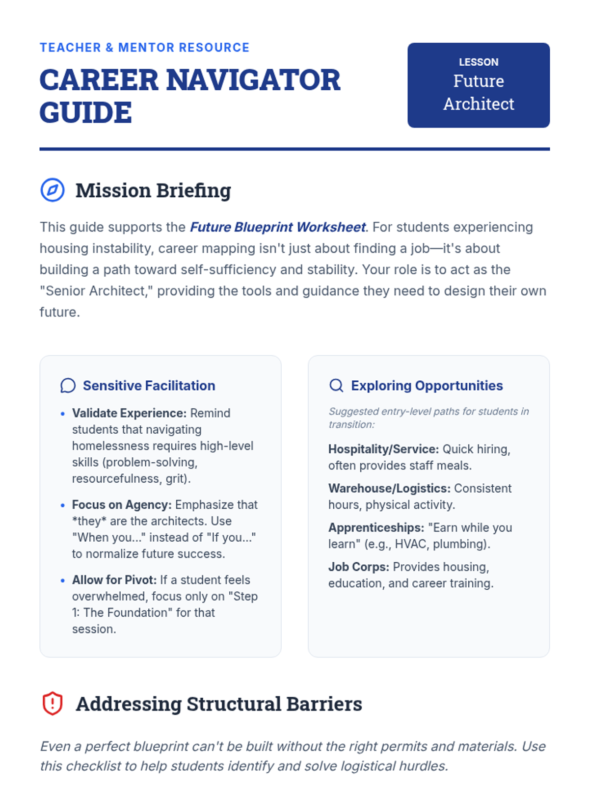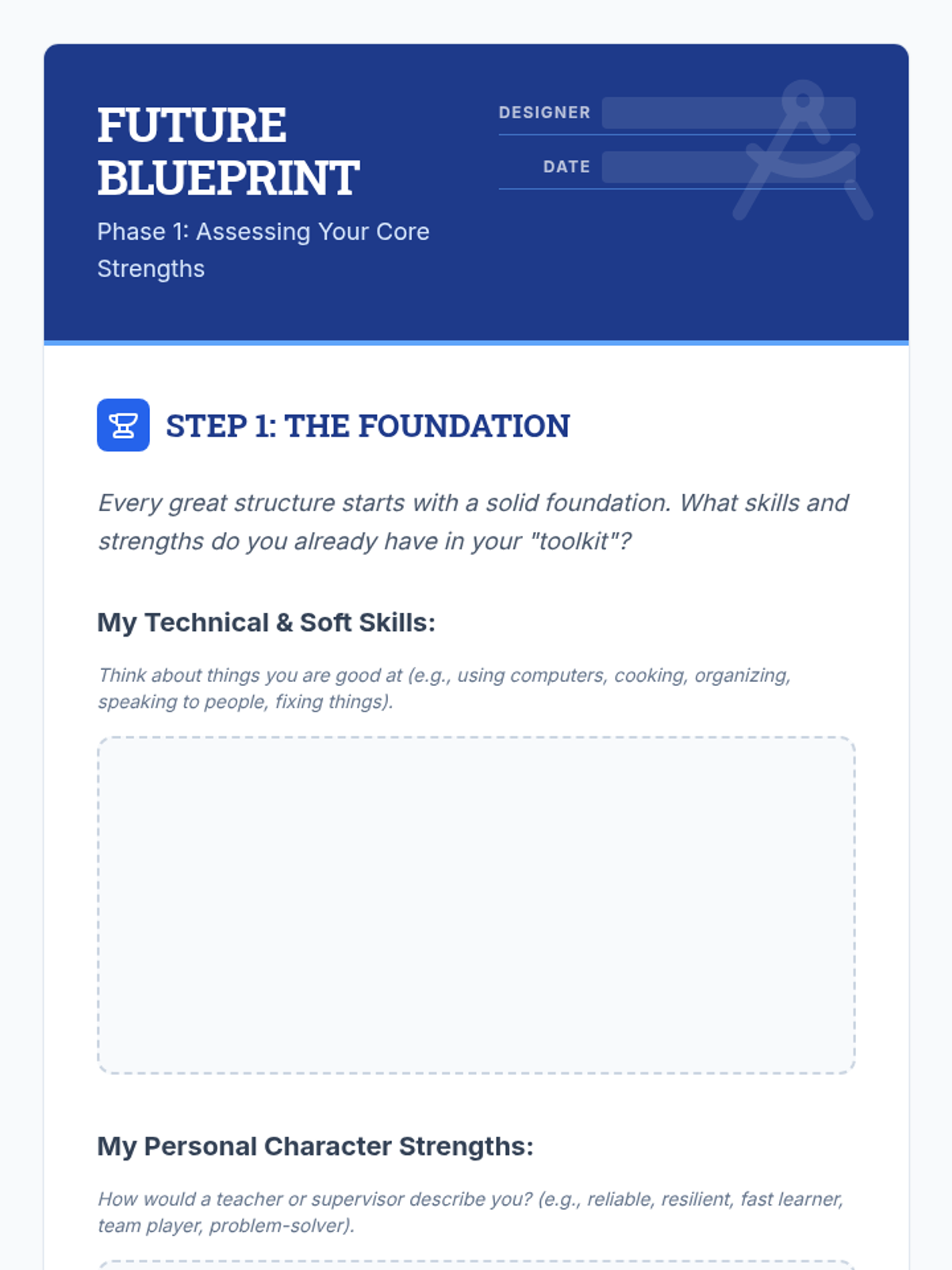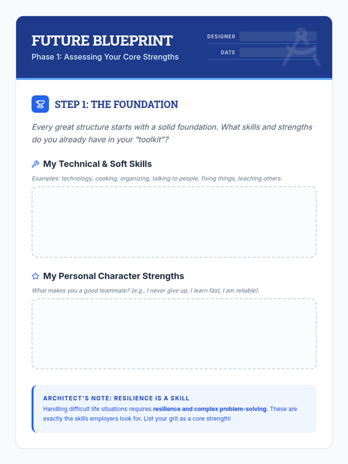 A career mapping lesson designed for students in transition, focusing on identifying strengths, exploring entry-level paths, and creating concrete action plans for self-sufficiency and professional growth.