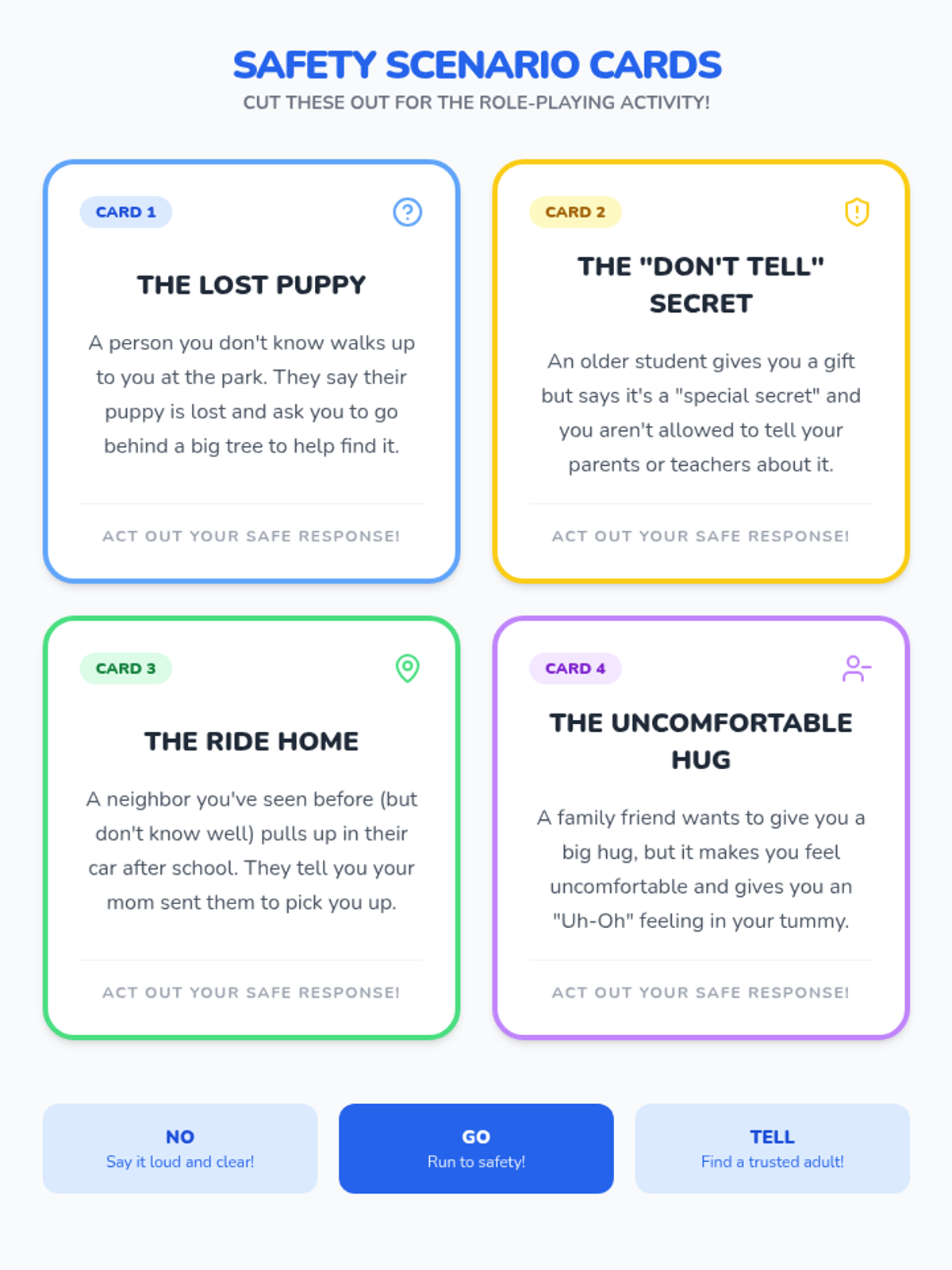 A lesson designed to teach children how to recognize common tricks used by strangers and how to respond safely.