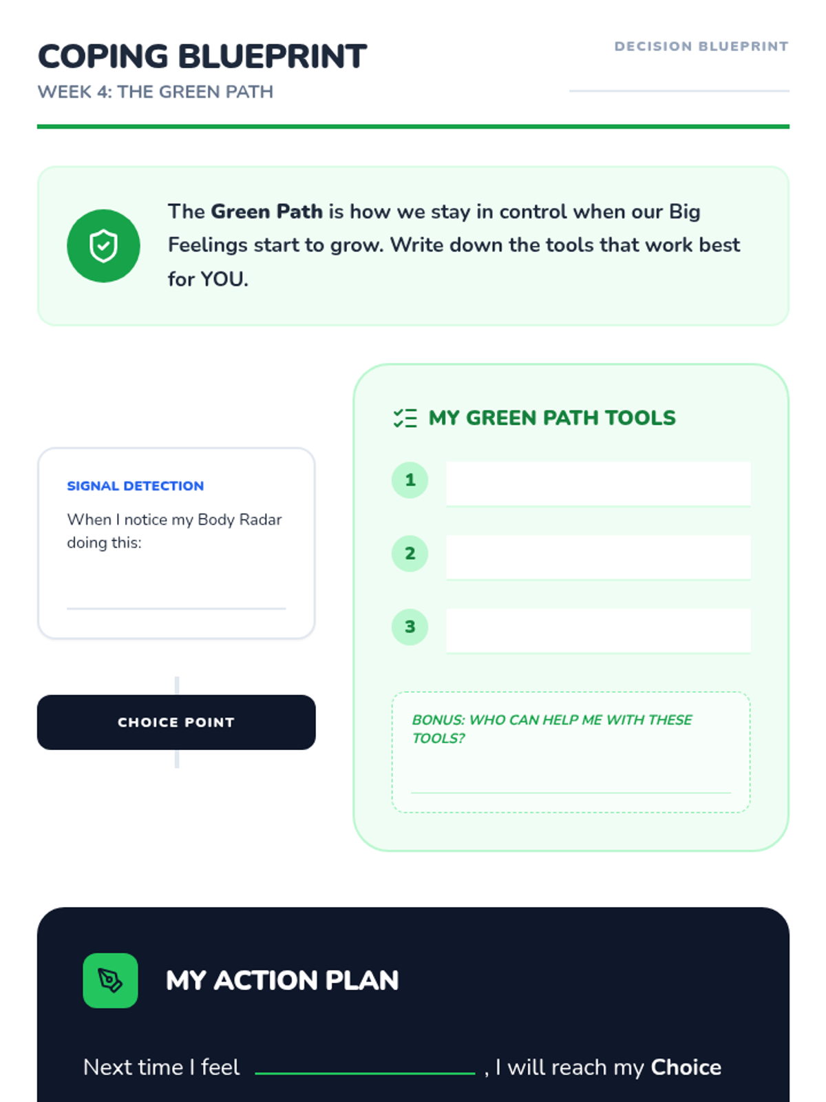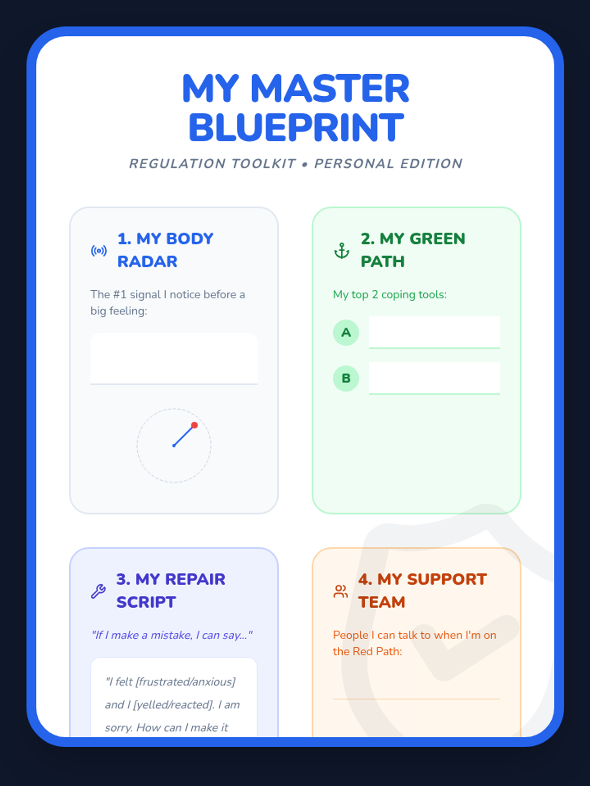 Students compile their learned strategies into a personalized, visual regulation plan for long-term success.