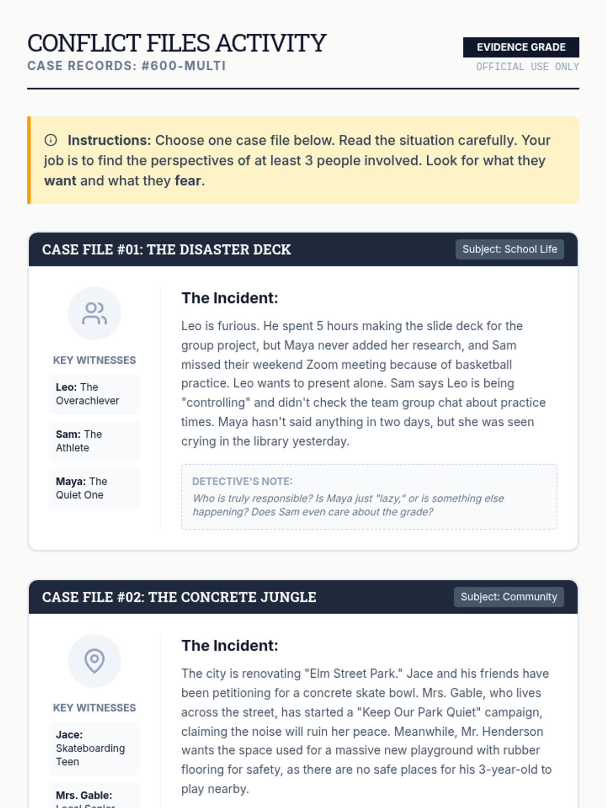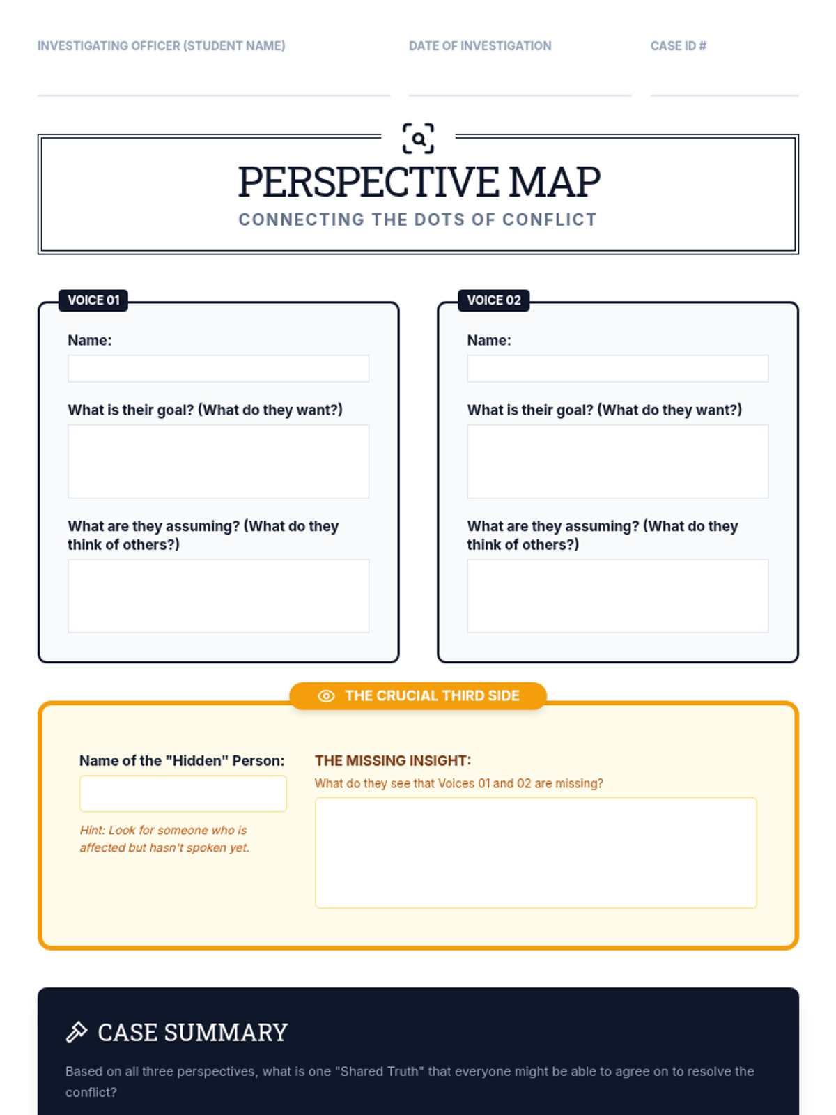 A fast-paced lesson designed to shift students from dualistic 'both sides' thinking to recognizing the complex web of perspectives in social conflicts through an investigative lens.