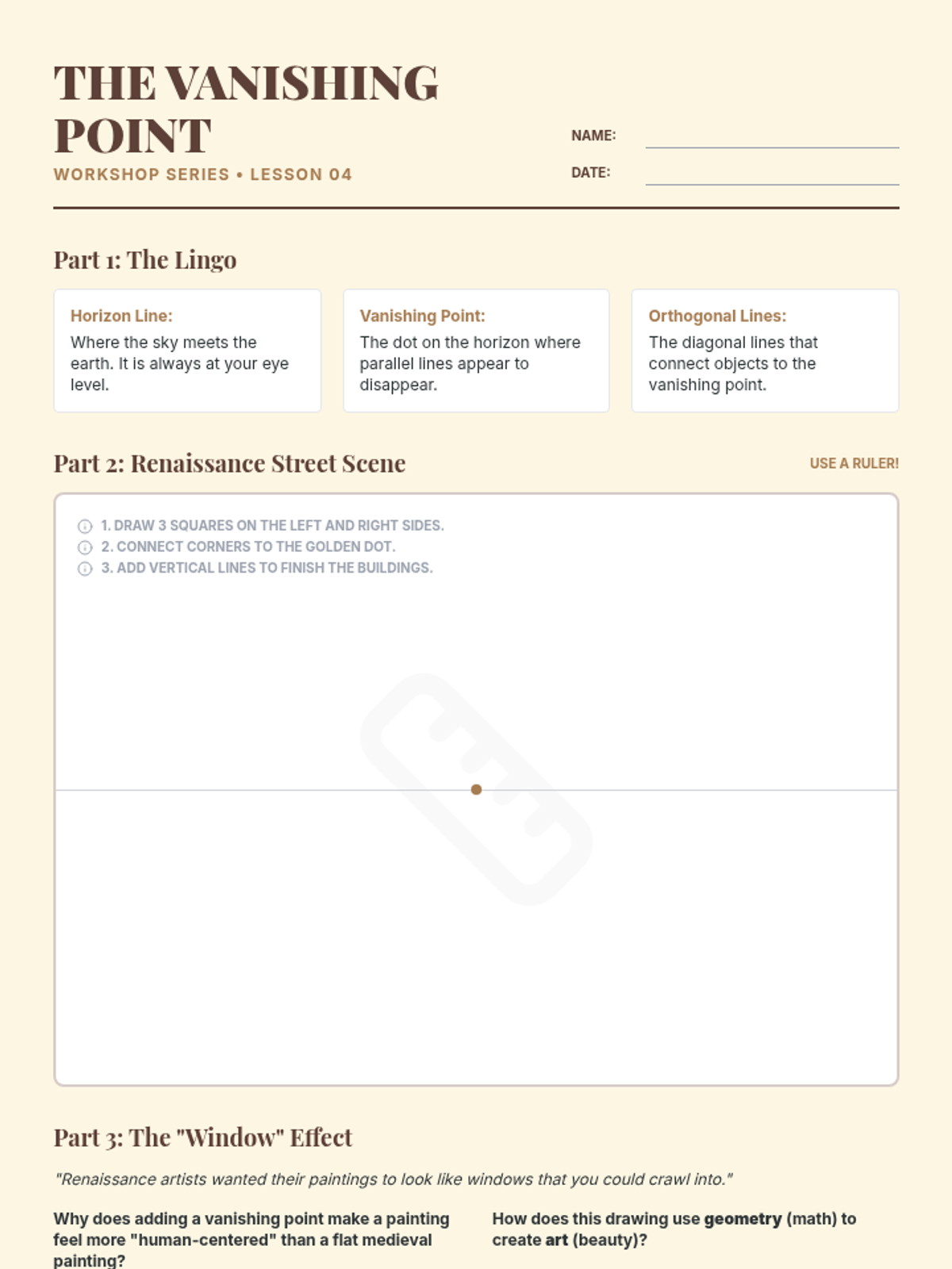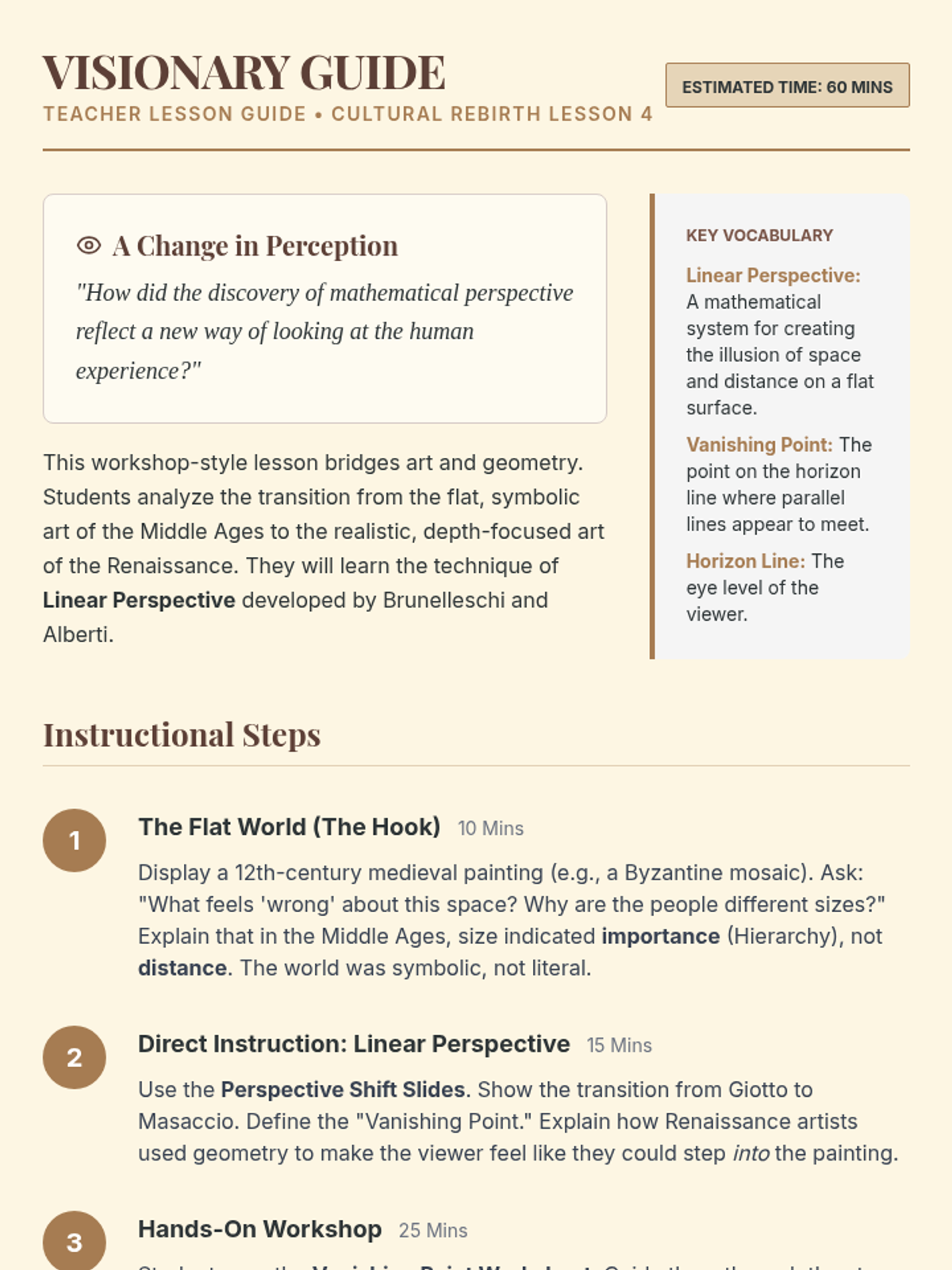 A technical and historical exploration of linear perspective and the shift from flat medieval styles to realistic Renaissance art.
