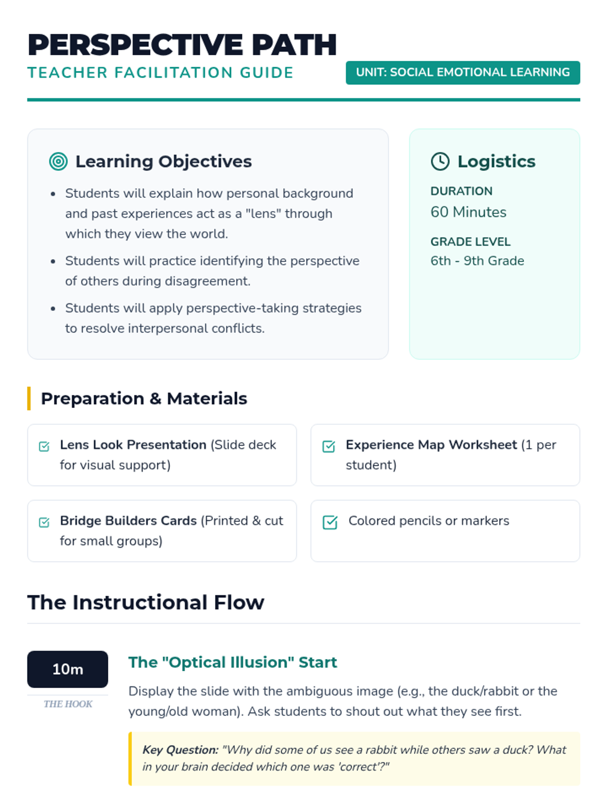A comprehensive lesson on perspective taking that explores how personal experiences shape our viewpoints and how to apply these skills to resolve conflicts effectively.