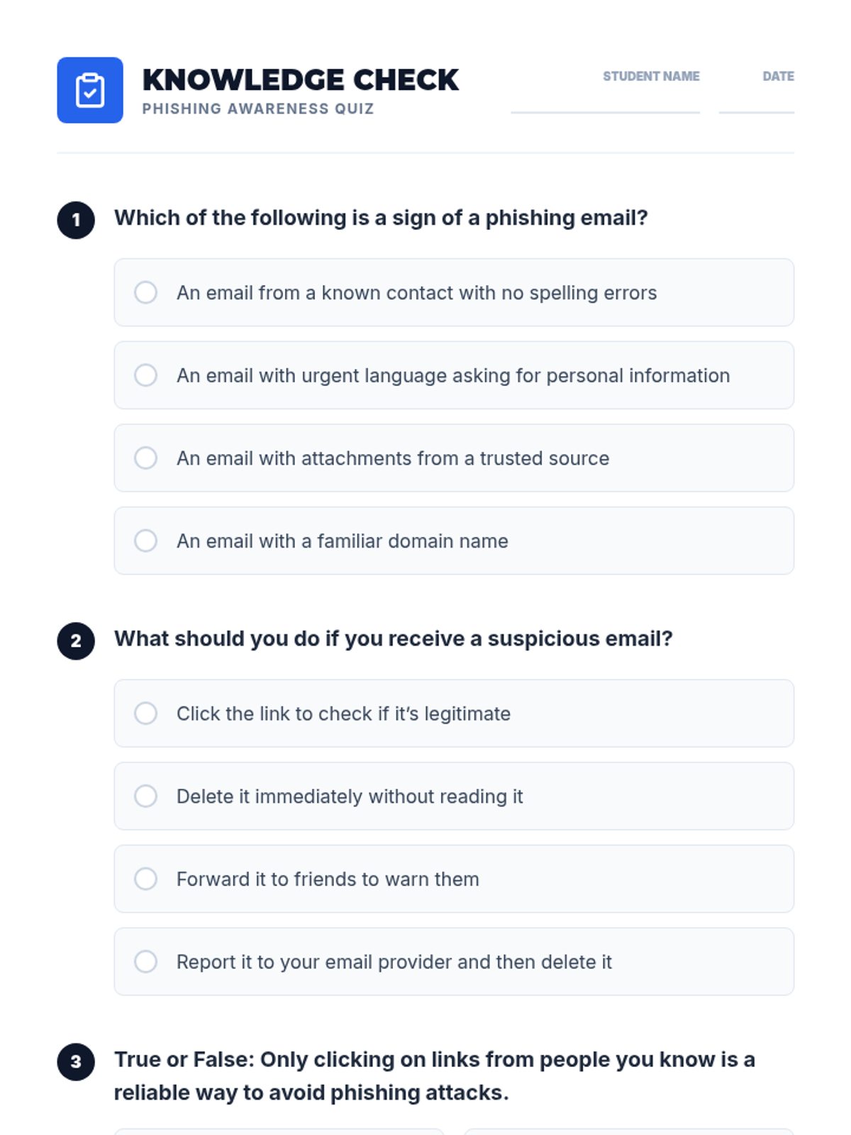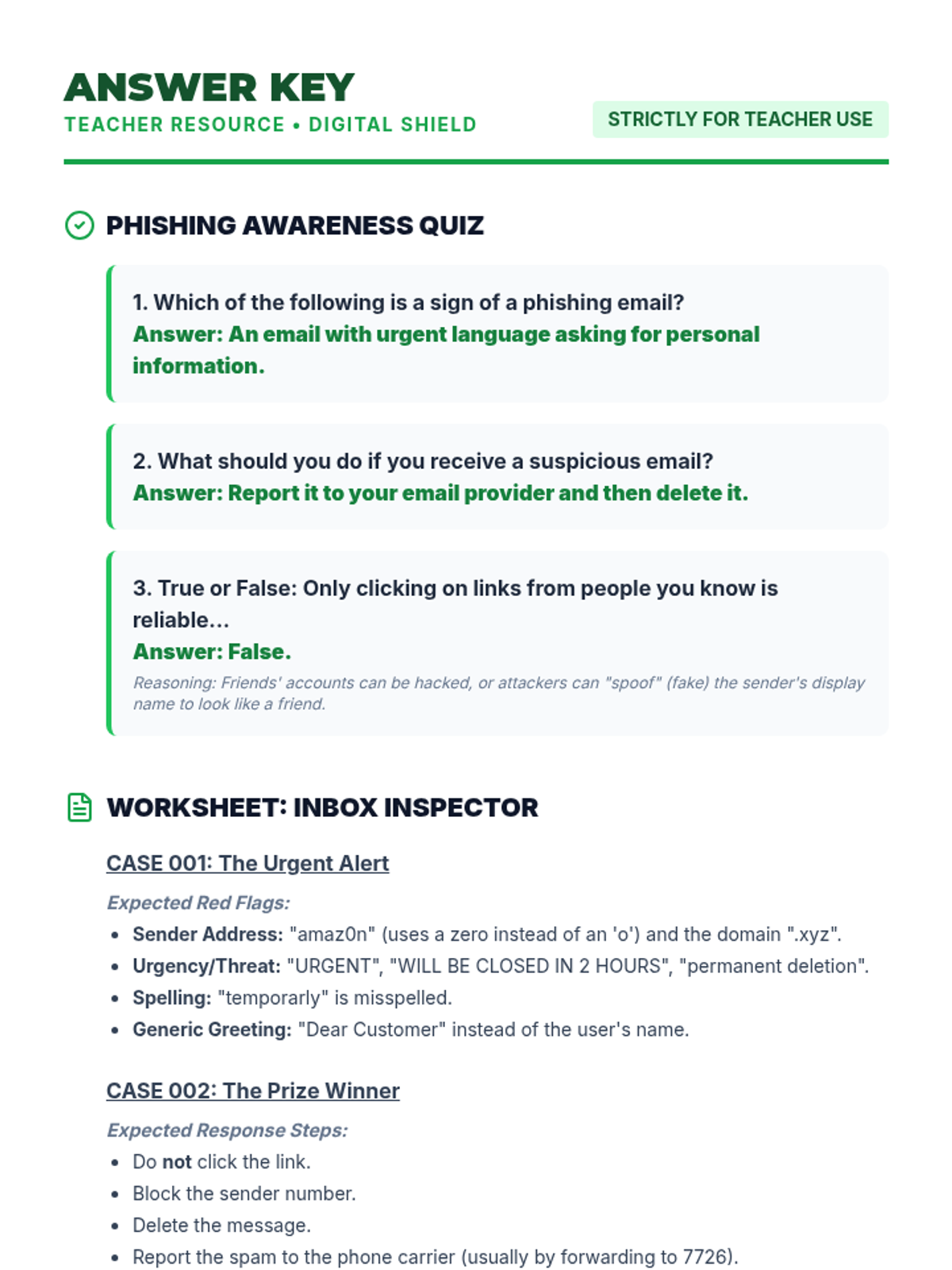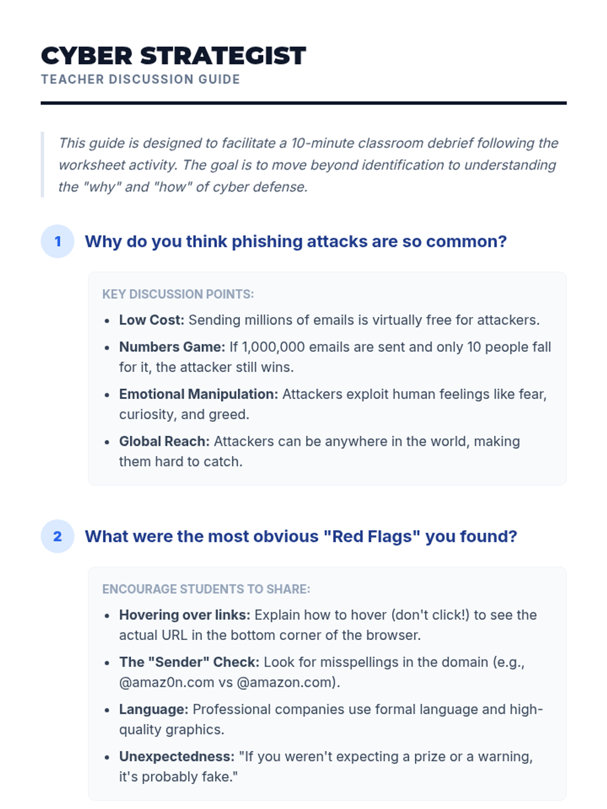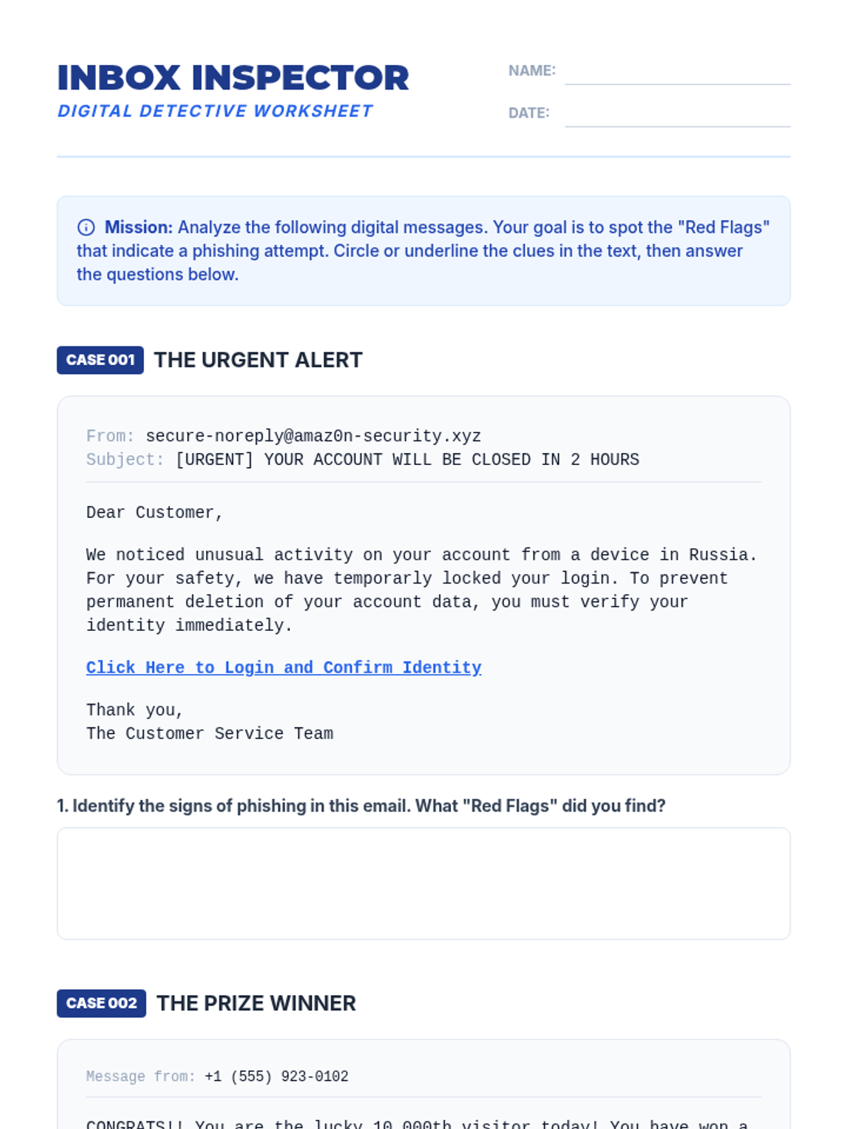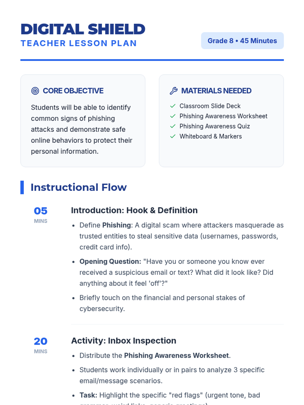 A Grade 8 lesson designed to educate students on recognizing and avoiding phishing attacks through interactive activities and analysis of real-world examples.