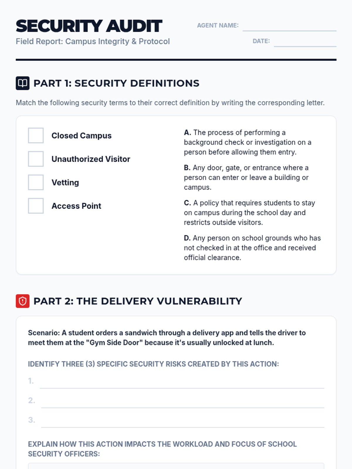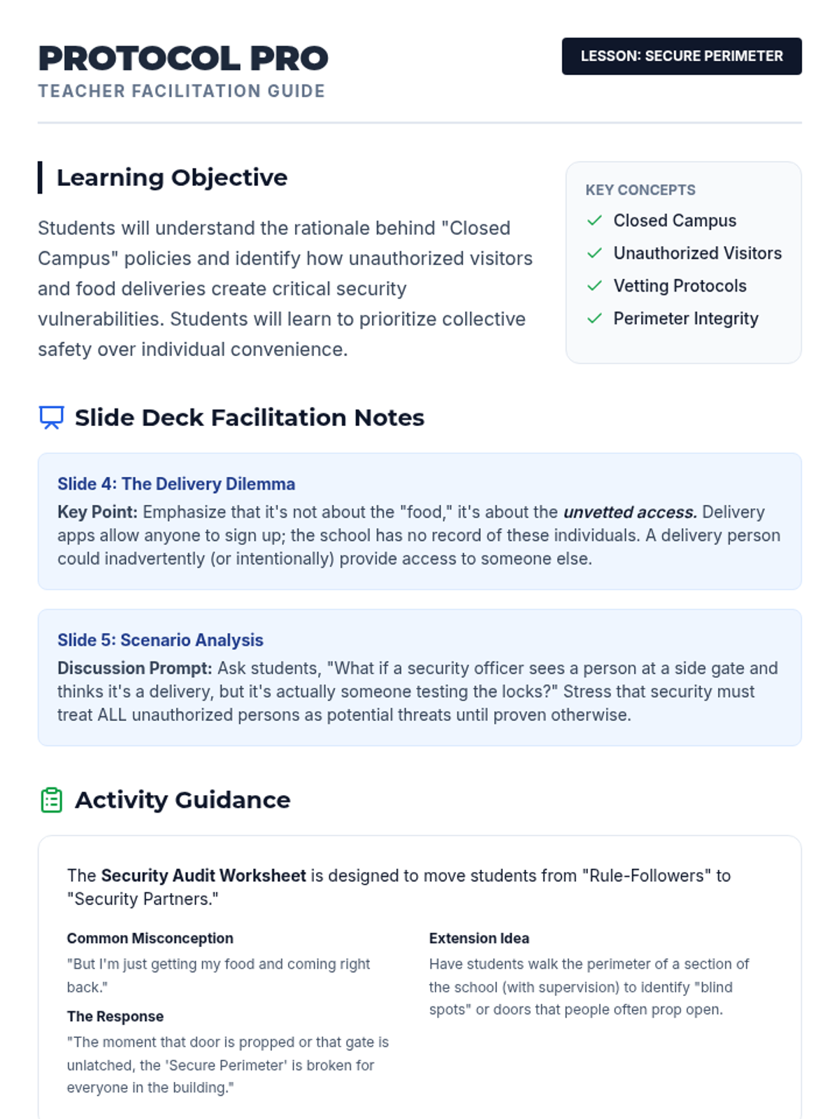 A critical look at school safety protocols, focusing on the importance of maintaining a closed campus and the risks associated with unauthorized visitors and deliveries.