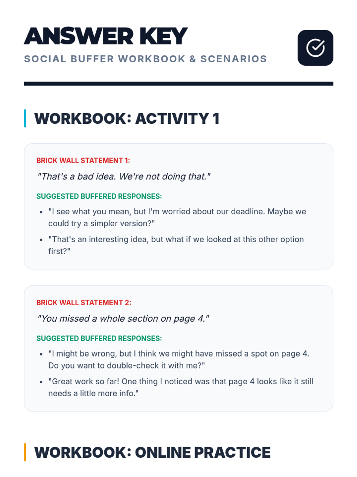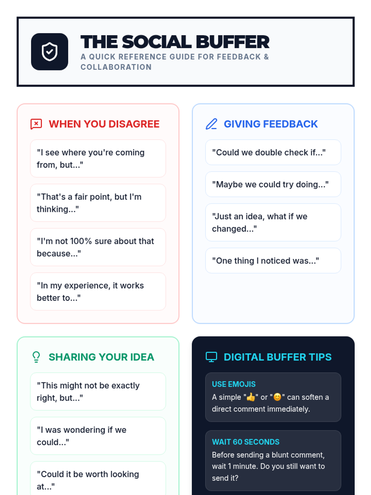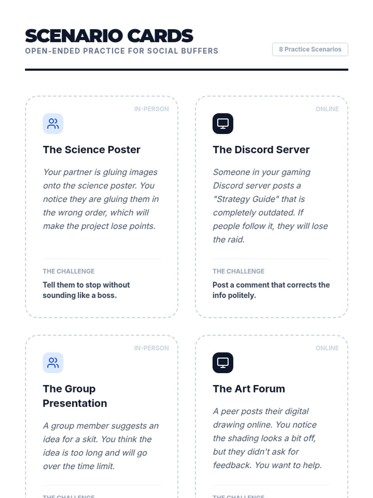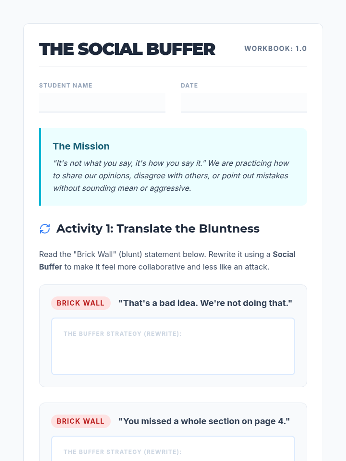 A comprehensive lesson for middle and high school students on using softening phrases to improve social pragmatics in person and online. Students learn to identify blunt language and apply 'social buffers' to provide feedback more effectively.