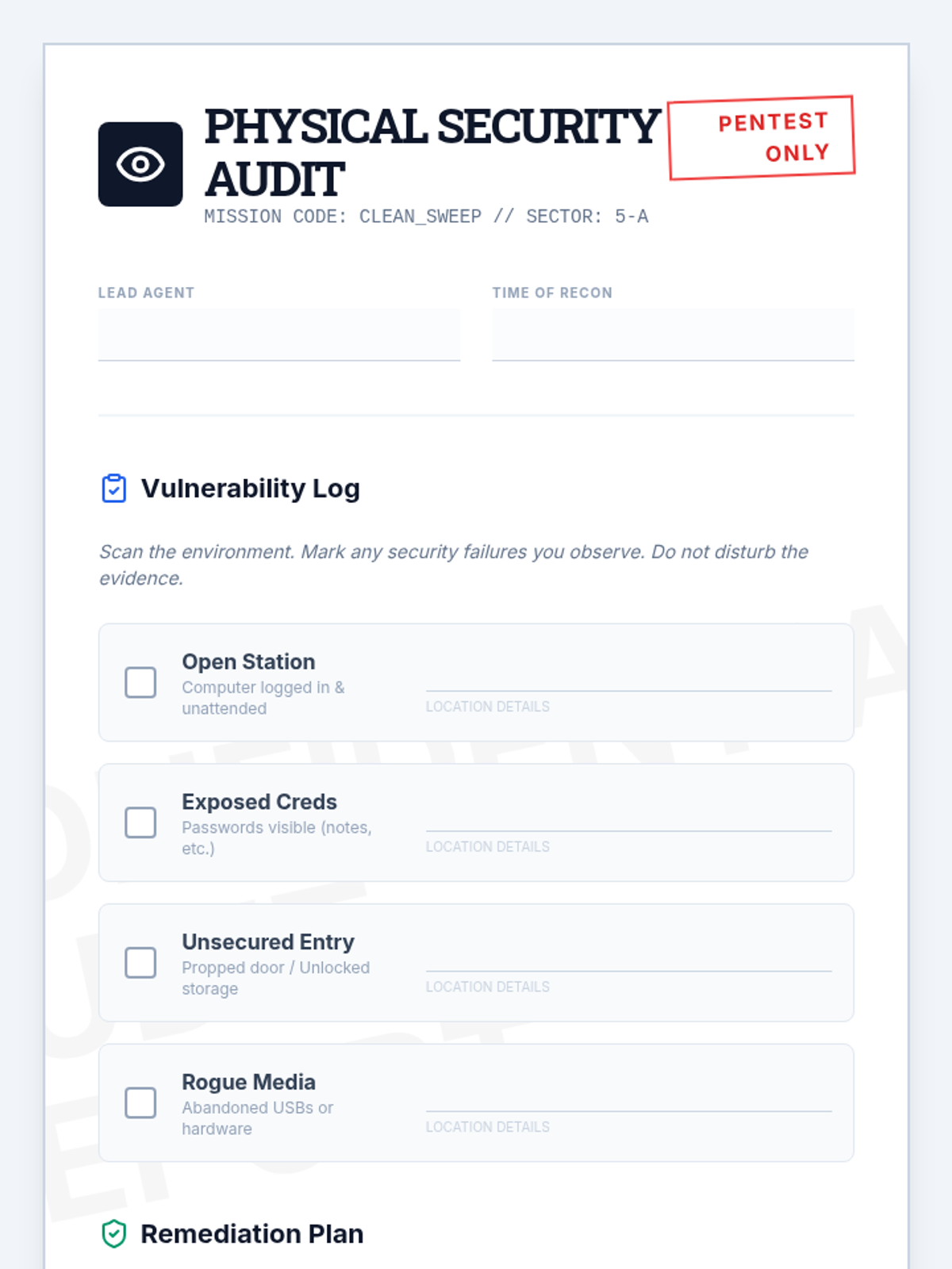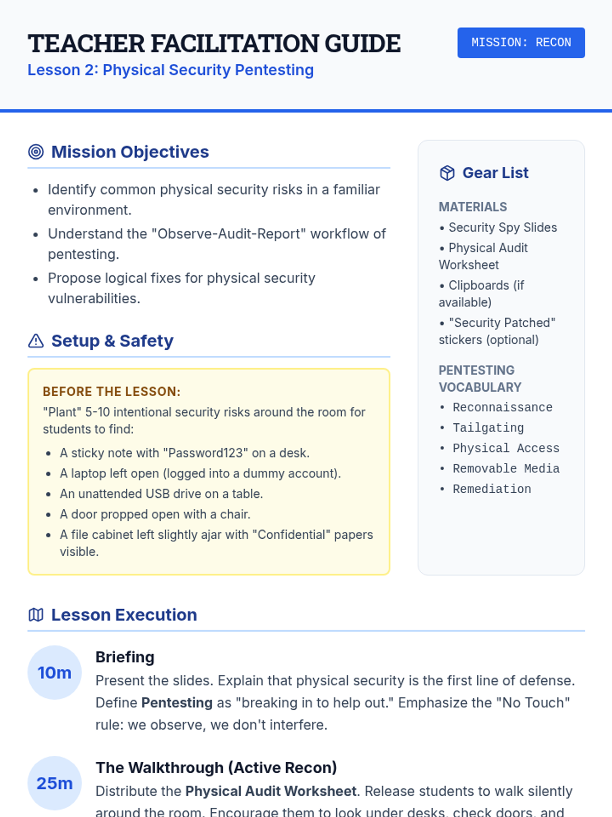 Students perform a walkthrough of a designated area to identify physical security risks.