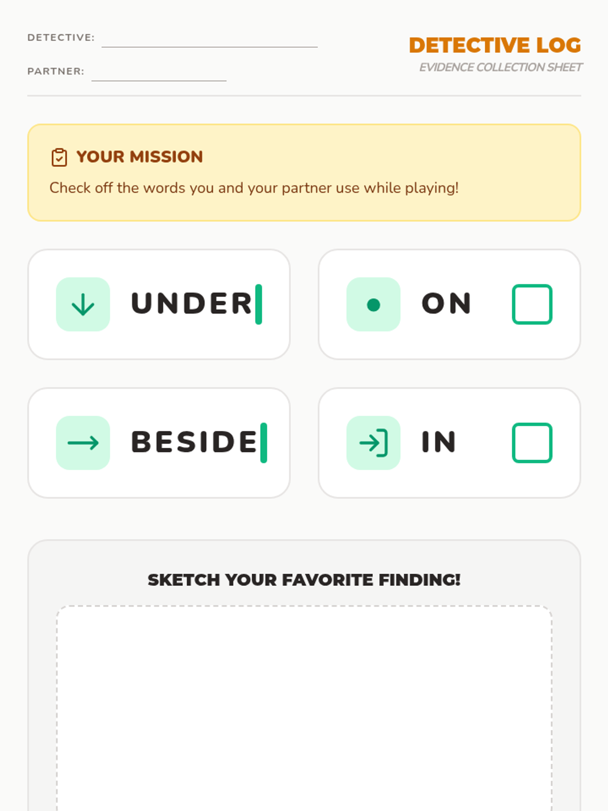 Students use complex illustrations to play a game of 'Picture Detectives,' practicing oral language to describe the exact position of hidden objects to a partner.