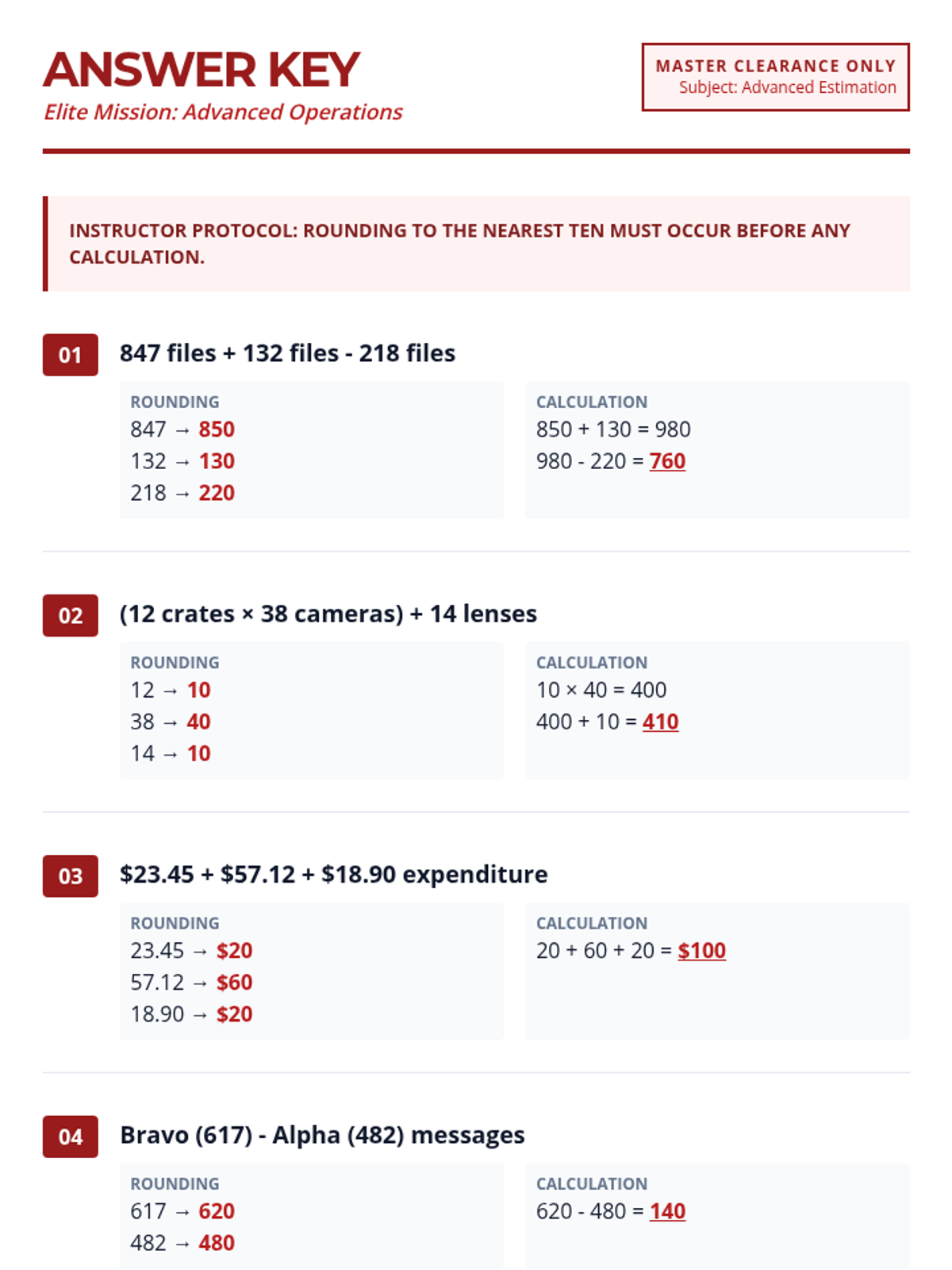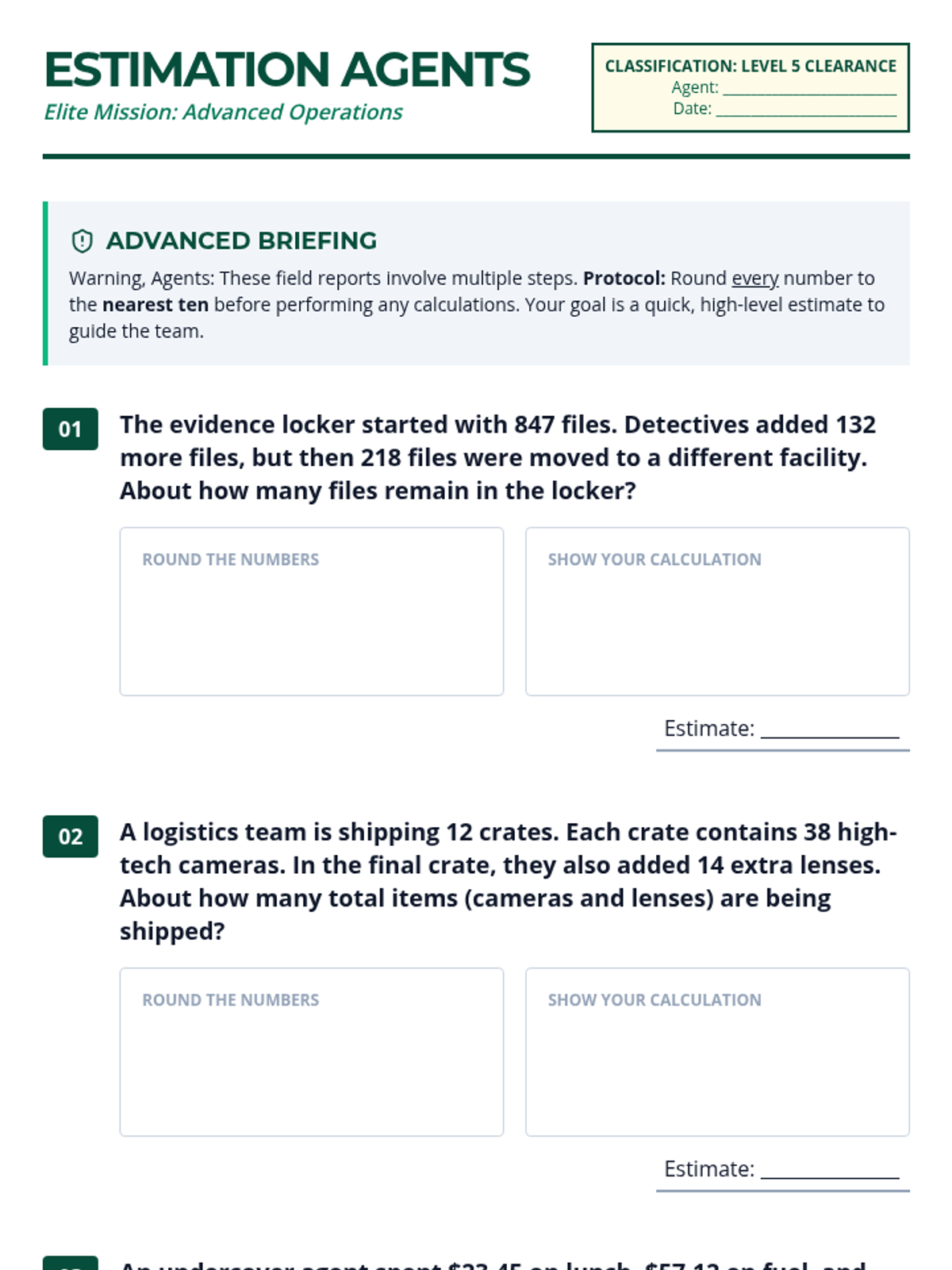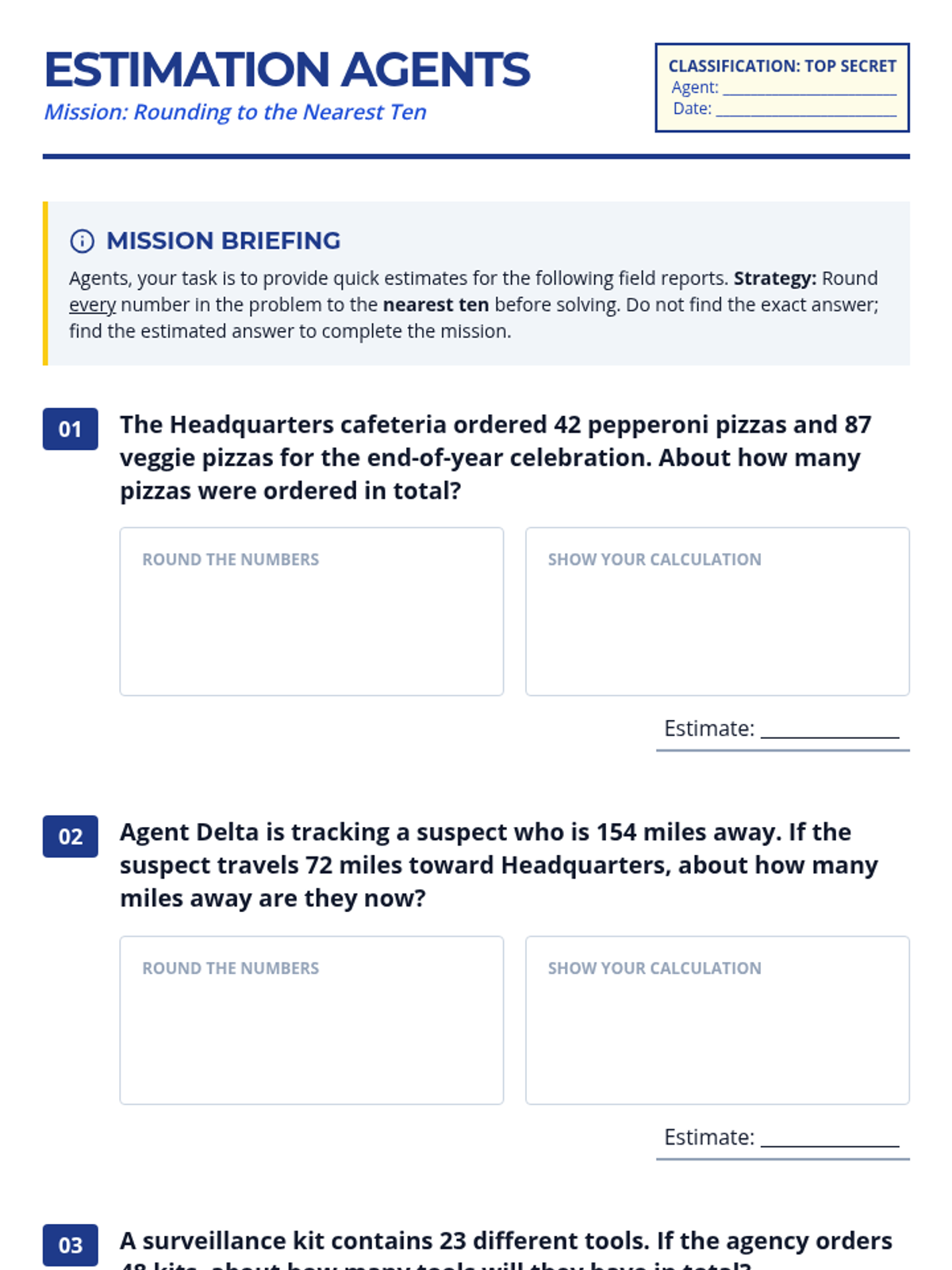 A focused lesson on estimation using the rounding to the nearest ten strategy. Students solve mixed-operation word problems to develop mental math skills and check for reasonableness in their calculations.