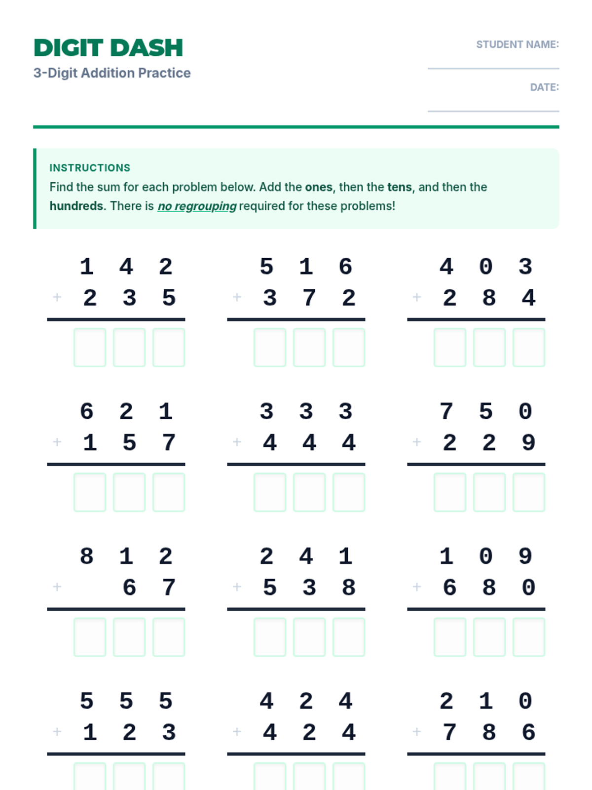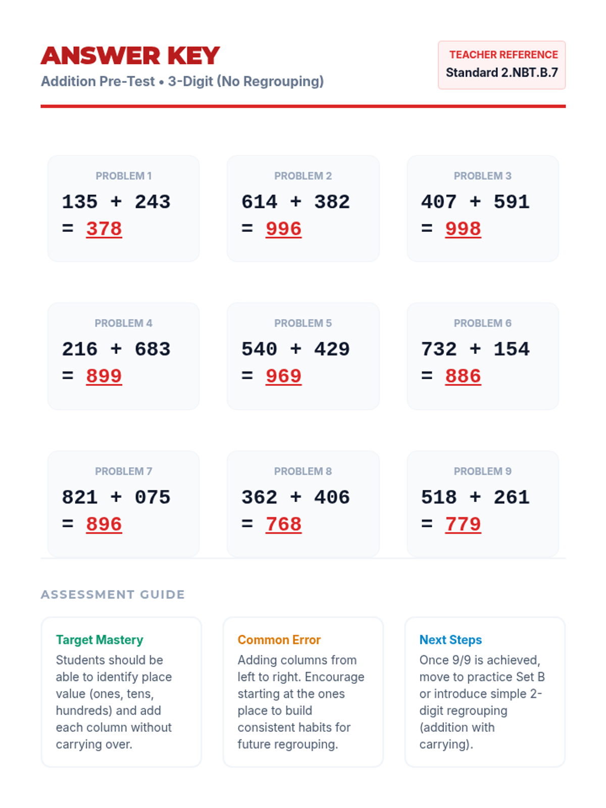 A series of focused practice materials for Massachusetts place value standards in Grades 1 and 2, including tens/ones, hundreds, expanded form, and number comparisons.