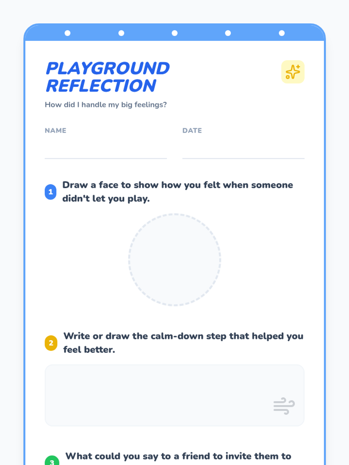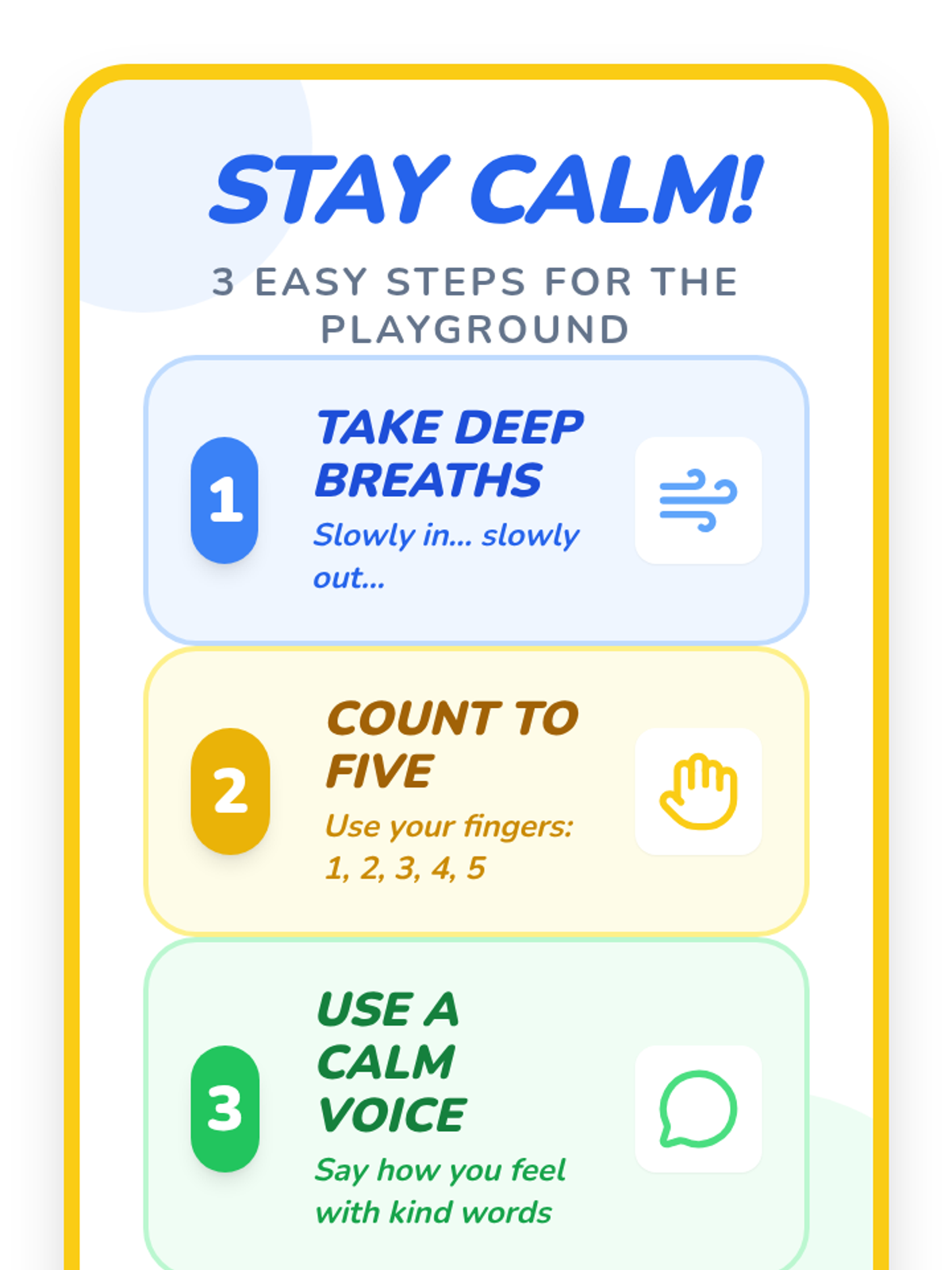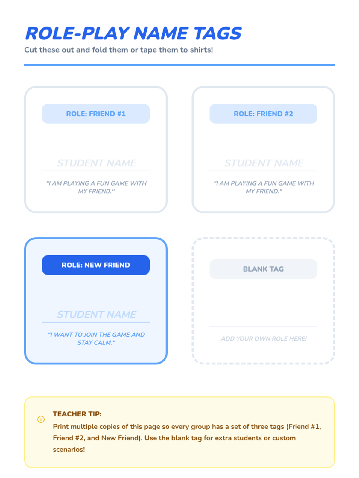 A 30-minute Tier 1 SEL lesson for 1st graders focusing on emotional regulation and empathy during playground exclusion. Students learn and practice a 3-step calm-down strategy through role-play.