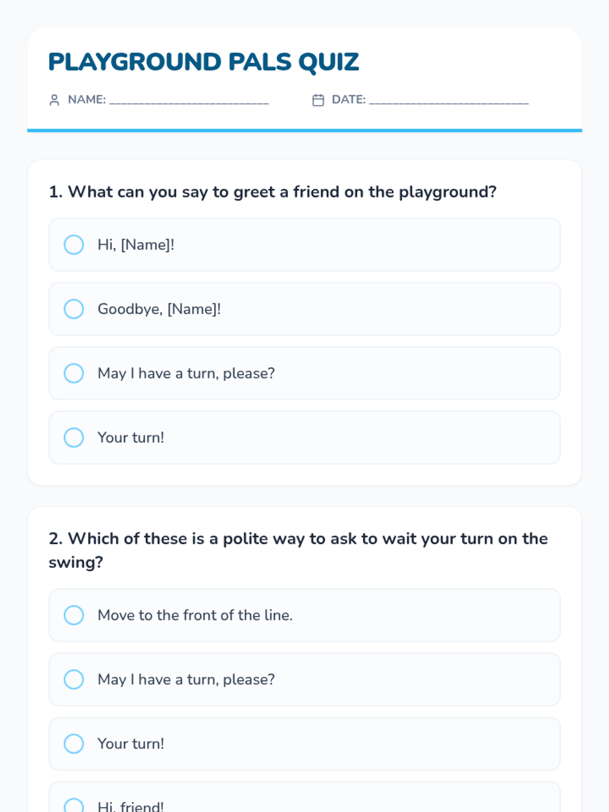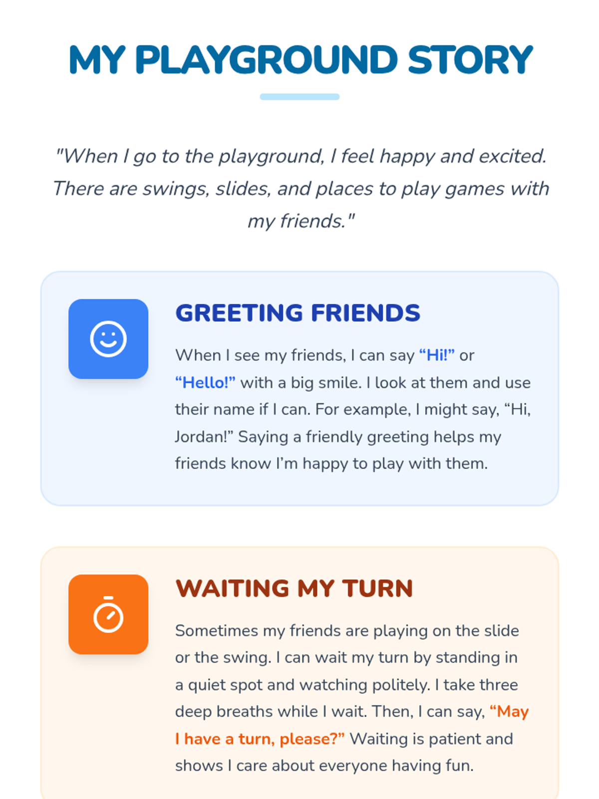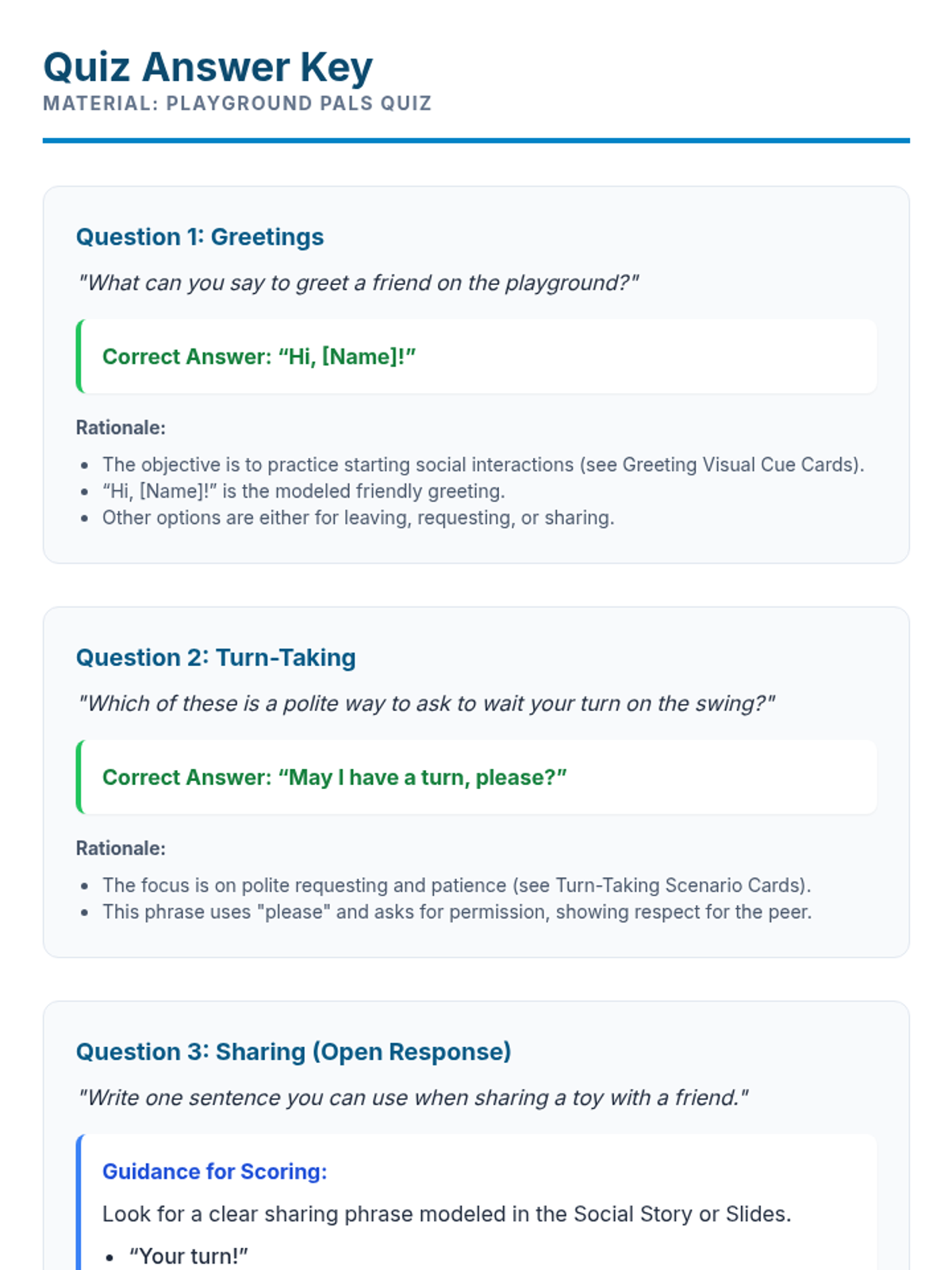 A targeted 30-minute social skills session designed for a 2nd grader with autism, focusing on greetings, turn-taking, and sharing. This individual Tier 3 lesson builds confidence and practical strategies for positive peer interactions.