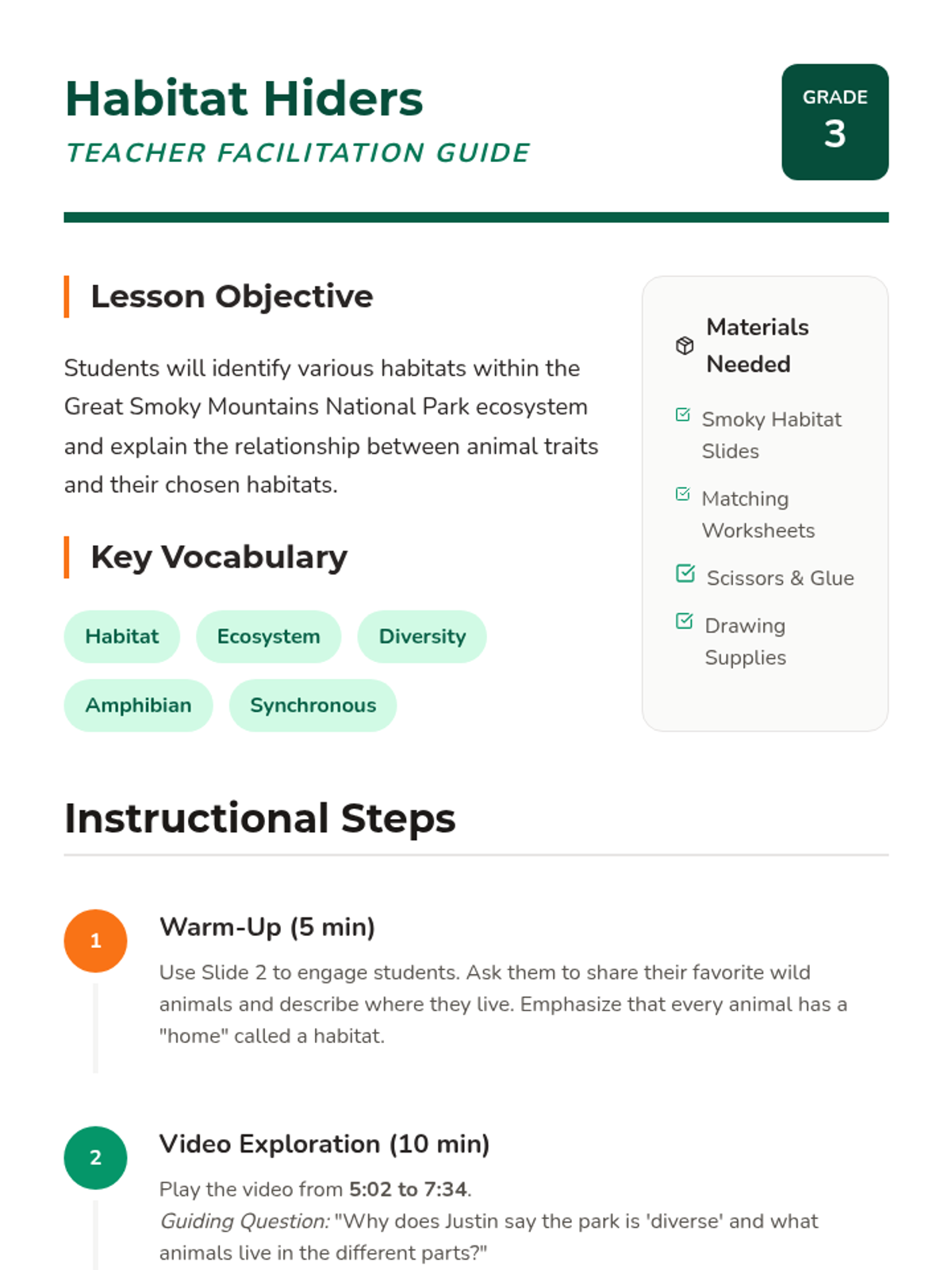 Students explore the diverse habitats of Great Smoky Mountains National Park through a guided video, a classification activity, and a deep dive into why this park is the 'Salamander Capital of the World'.