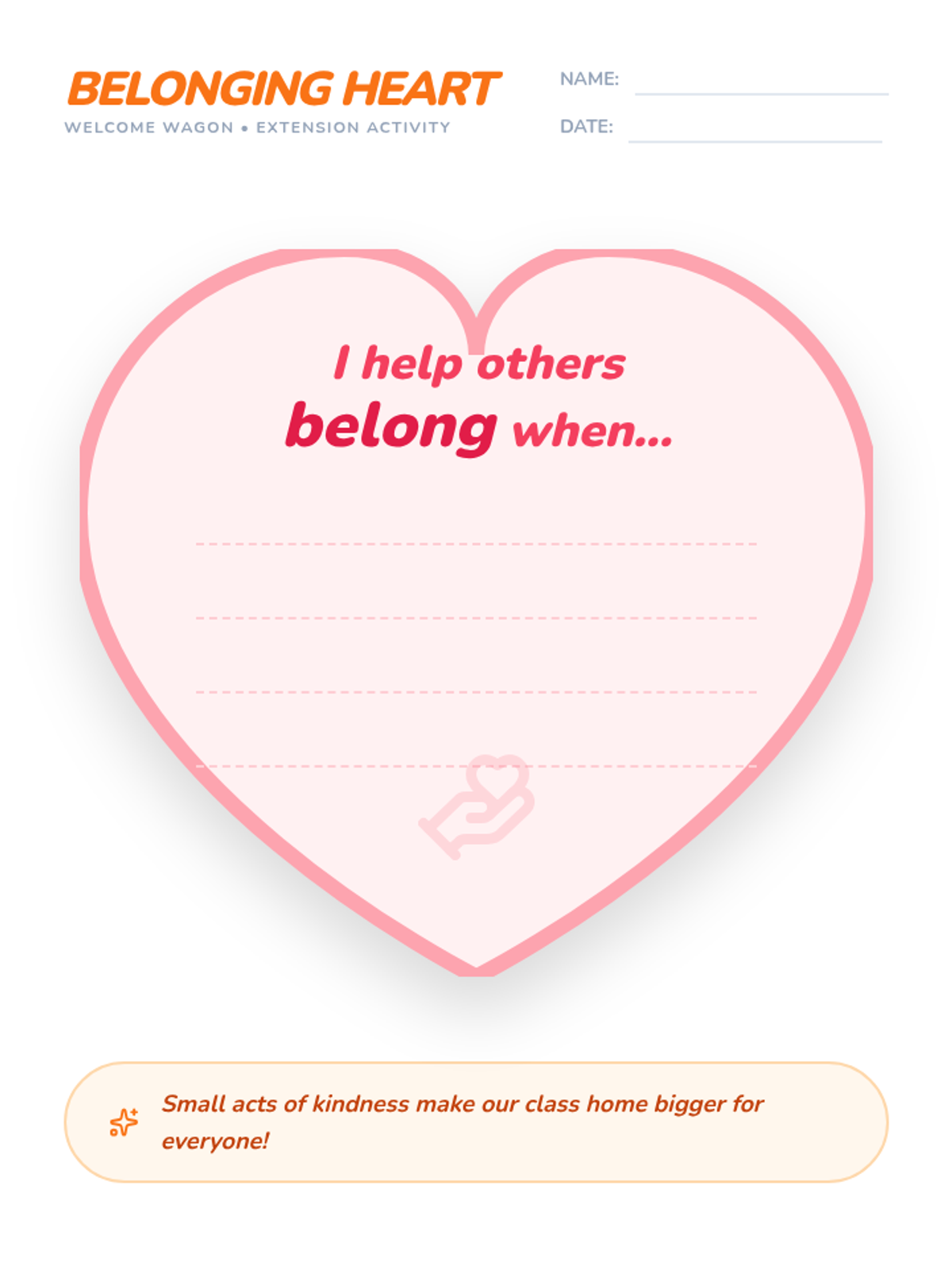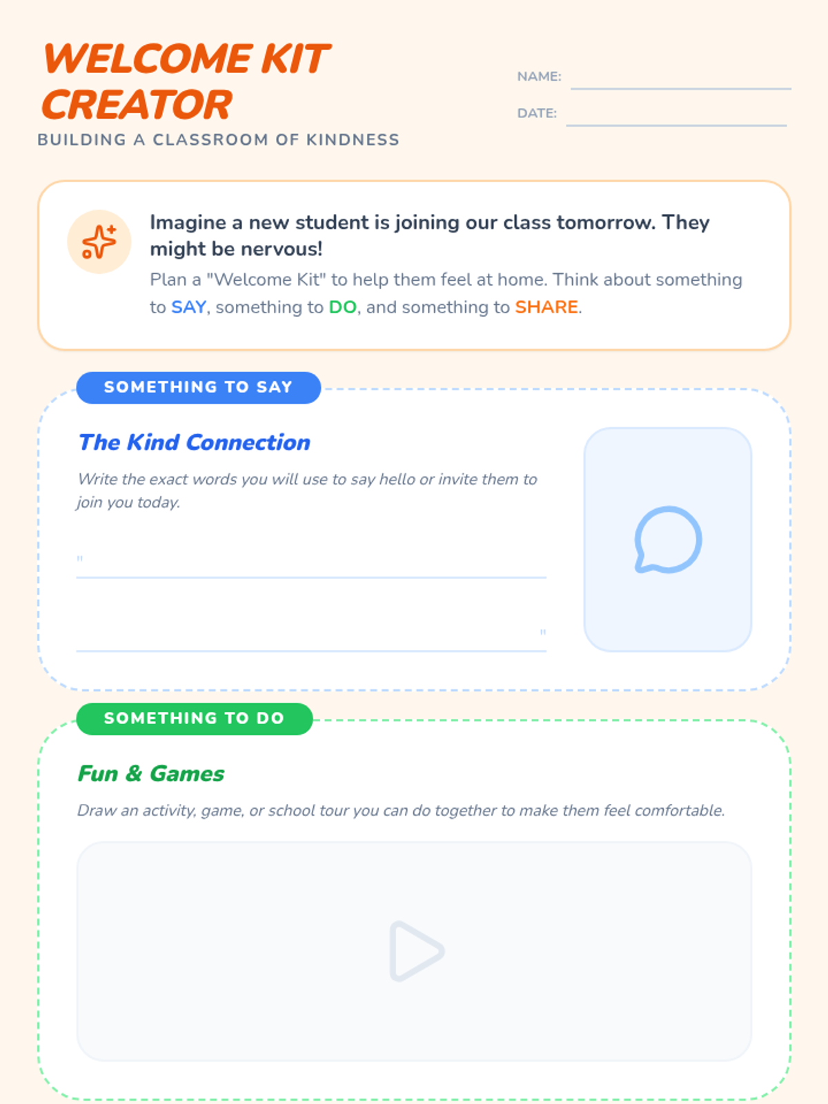 A 20-minute SEL lesson focused on empathy, kindness, and inclusion to help new students feel at home in the classroom. Students will explore scenarios and create a 'Welcome Kit' to practice welcoming others.