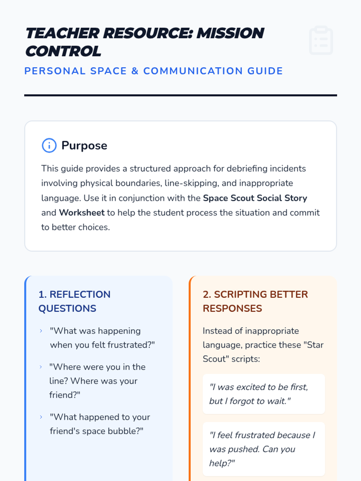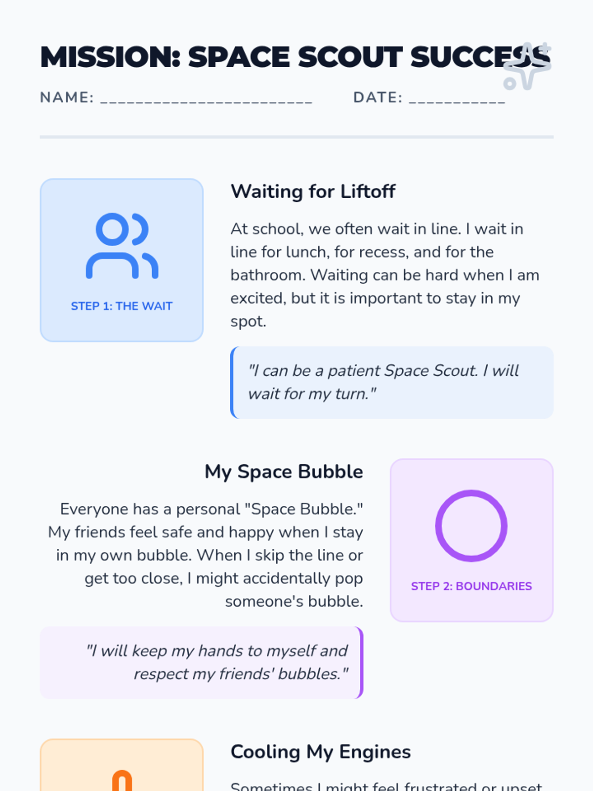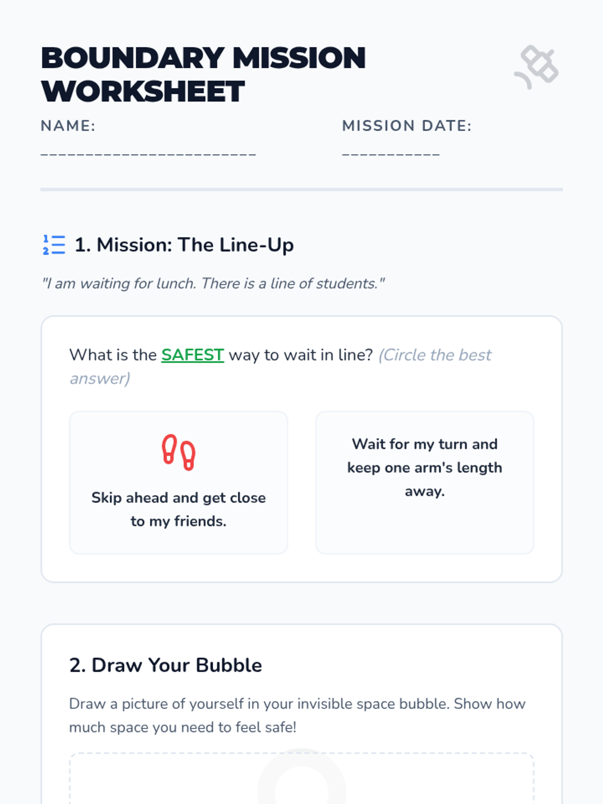 An intervention lesson focused on personal space, waiting in line, and choosing appropriate words when feeling frustrated or overwhelmed.