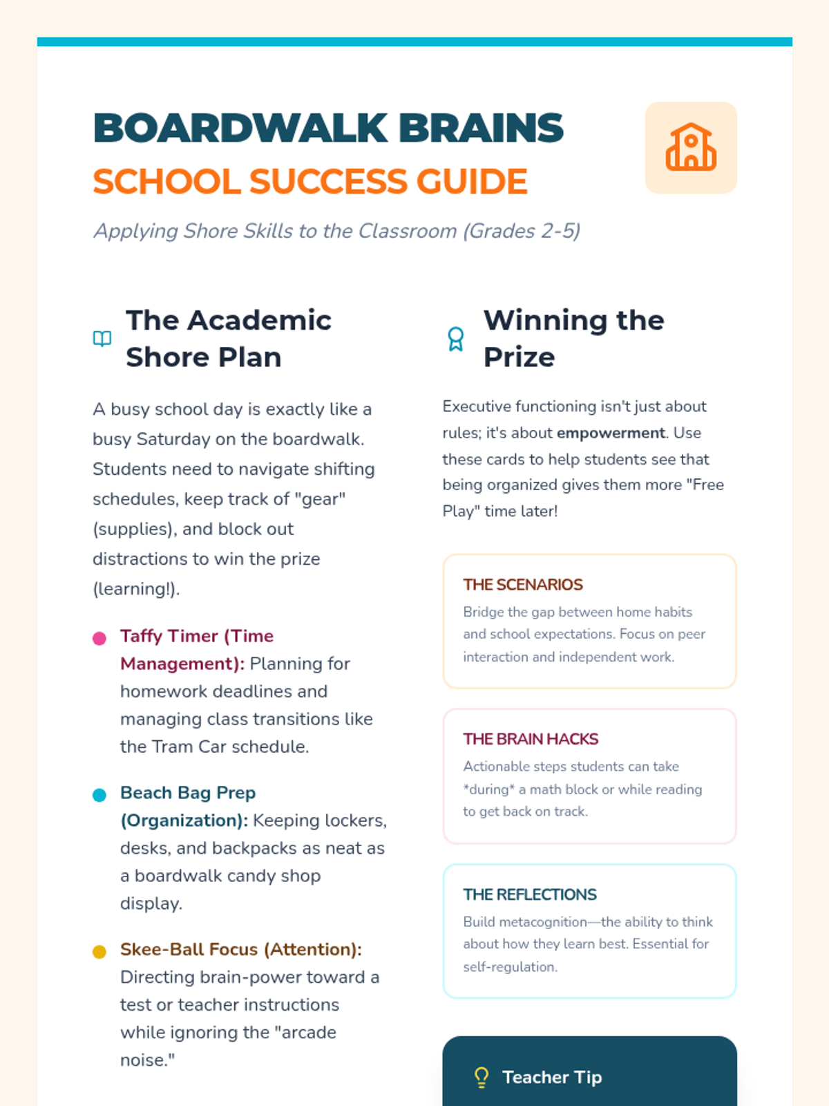 A summery, boardwalk-themed set of resources to help students in grades 2-5 master time management, organization, and focus through the lens of a Jersey Shore adventure.