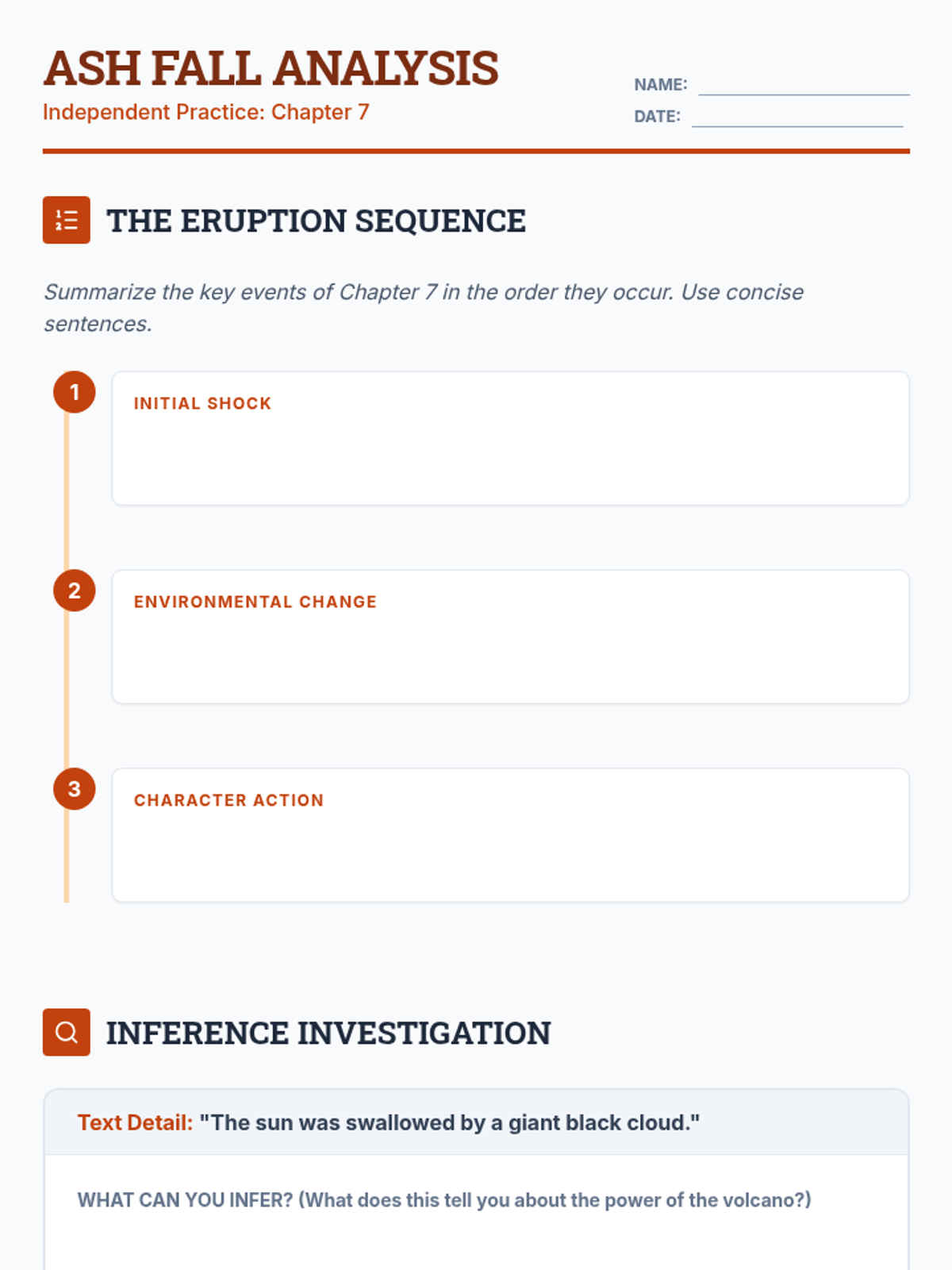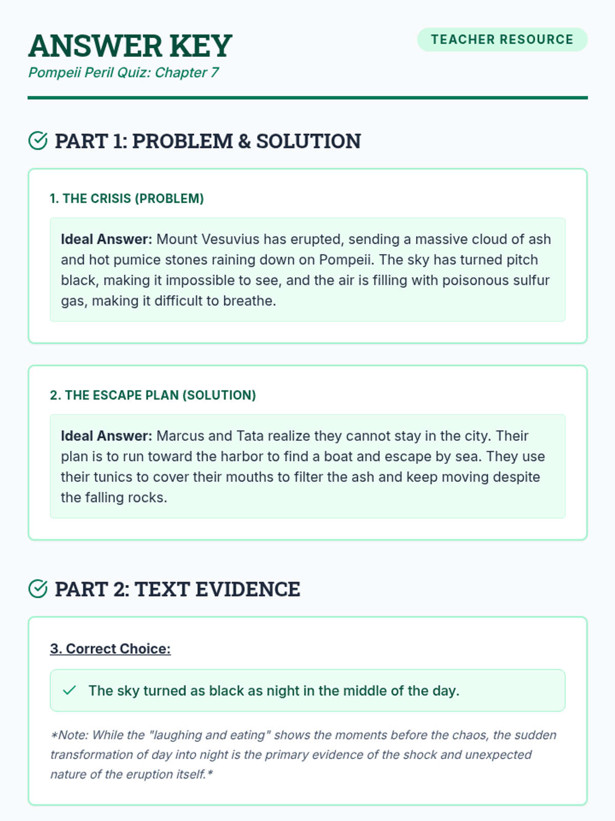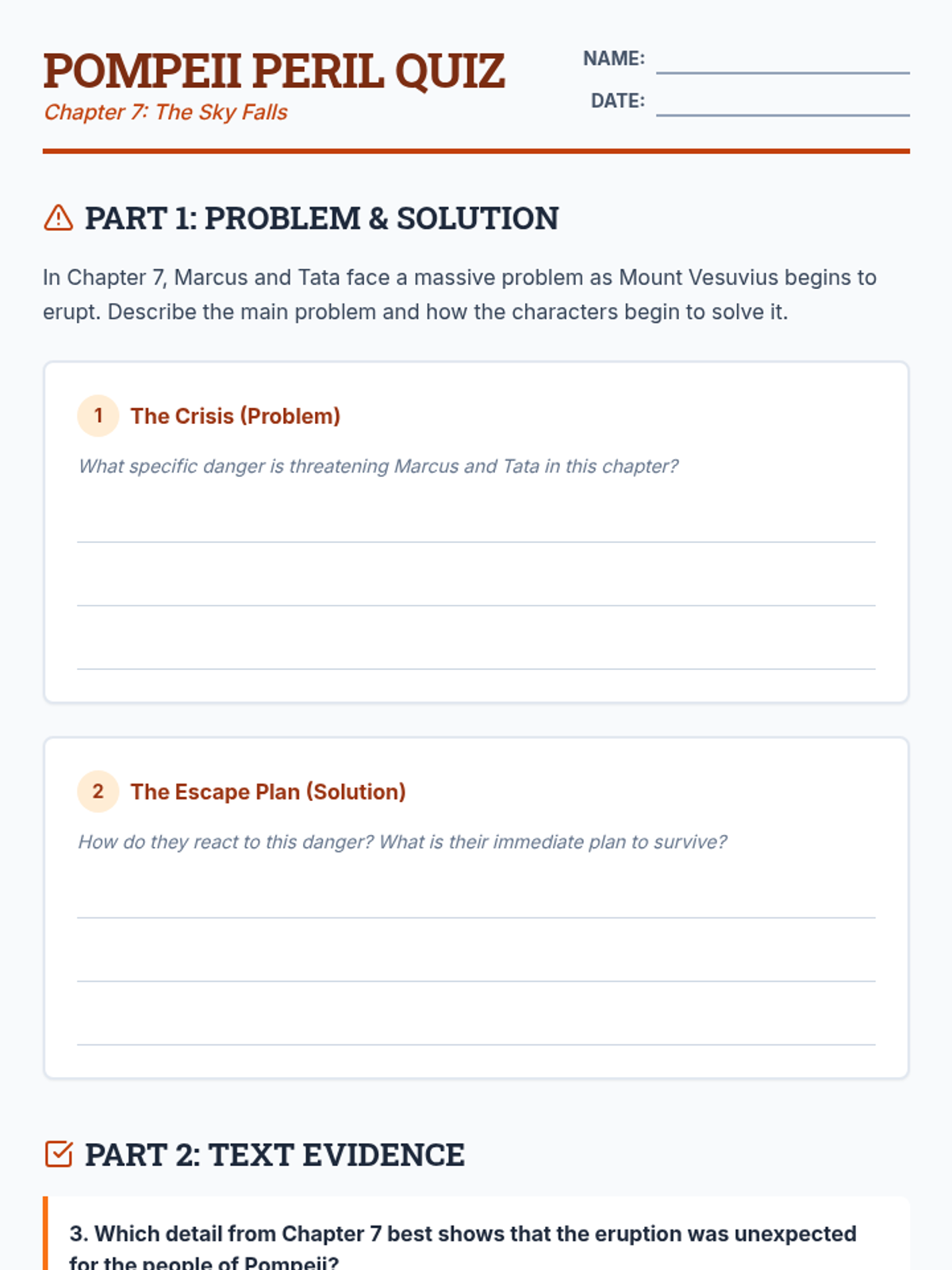 A focused study of Chapter 7 from 'I Survived the Destruction of Pompeii, AD 79', covering the onset of the eruption, character motivations, and problem-solving under pressure.