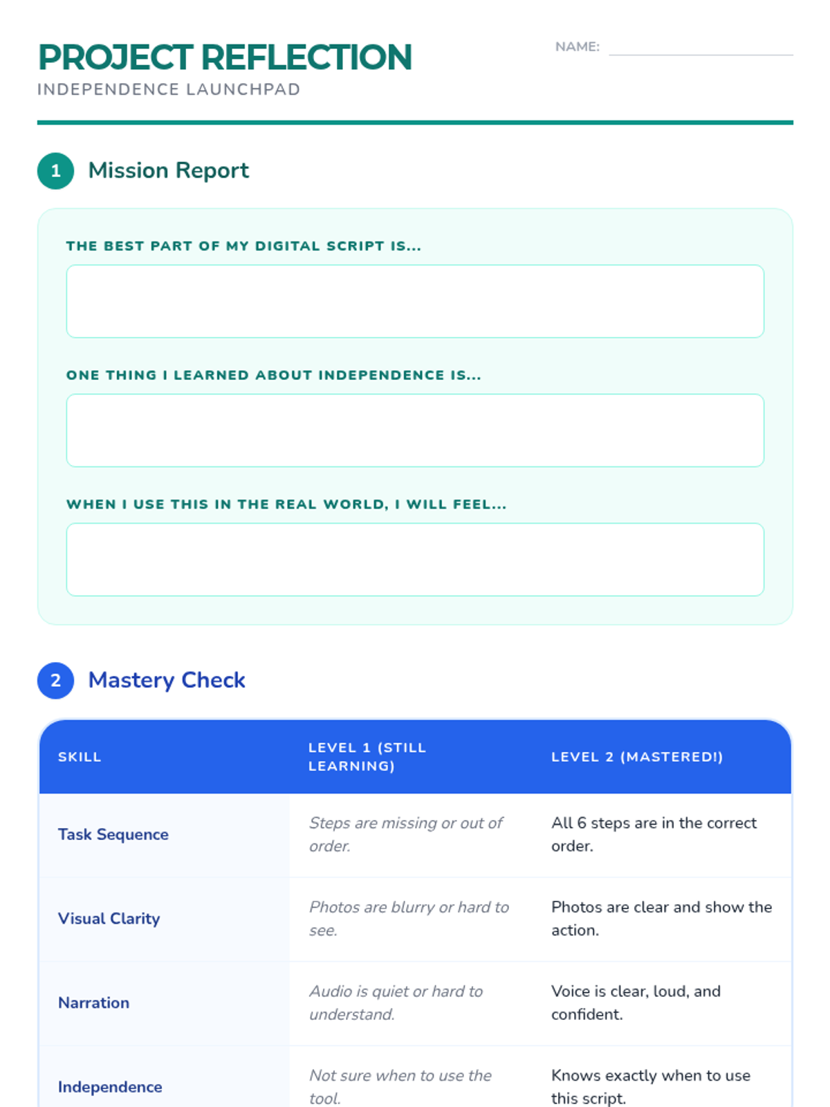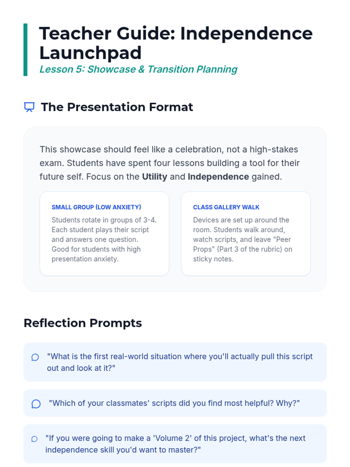 Students showcase their digital scripts and reflect on how they will use these tools in real-world transition scenarios.