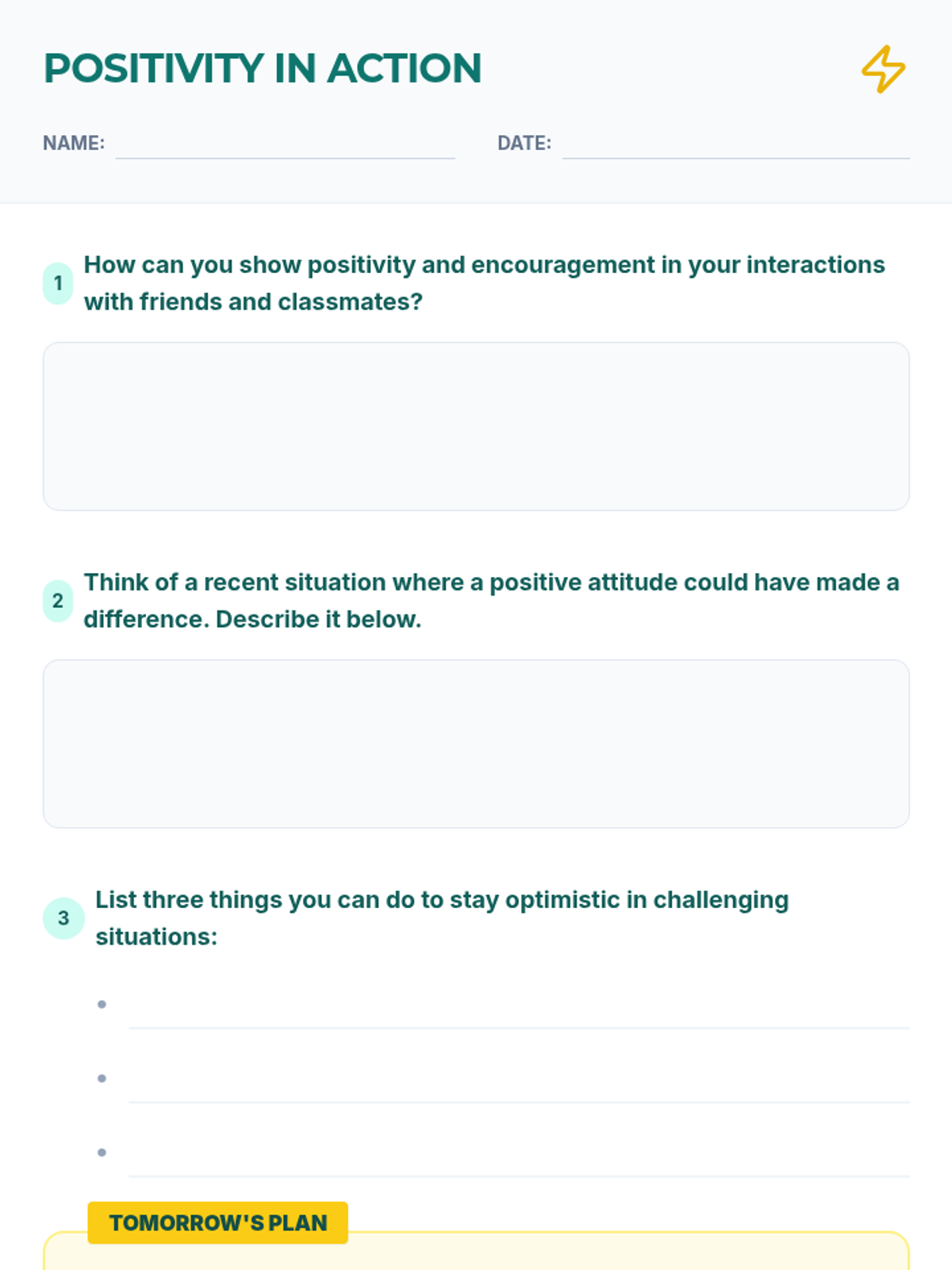 Covers the fourth 'P' (Positivity), teaching students to reframe negative thoughts and maintain a growth mindset during setbacks.