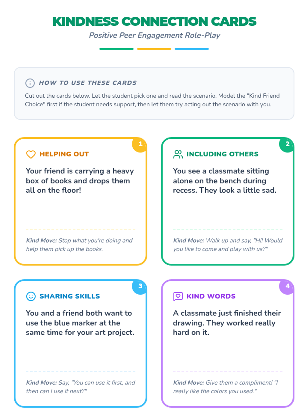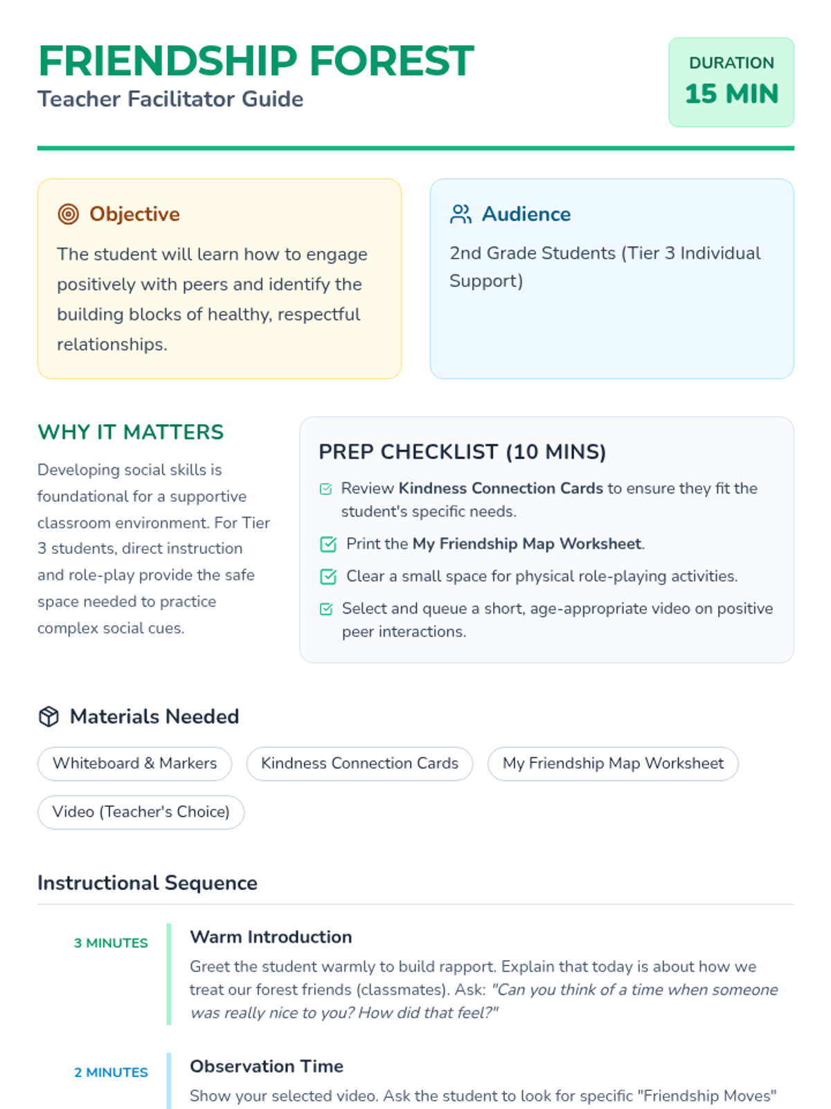 A Tier 3 individual lesson for 2nd graders focused on teaching positive social interactions and building healthy relationships through role-play and reflection.