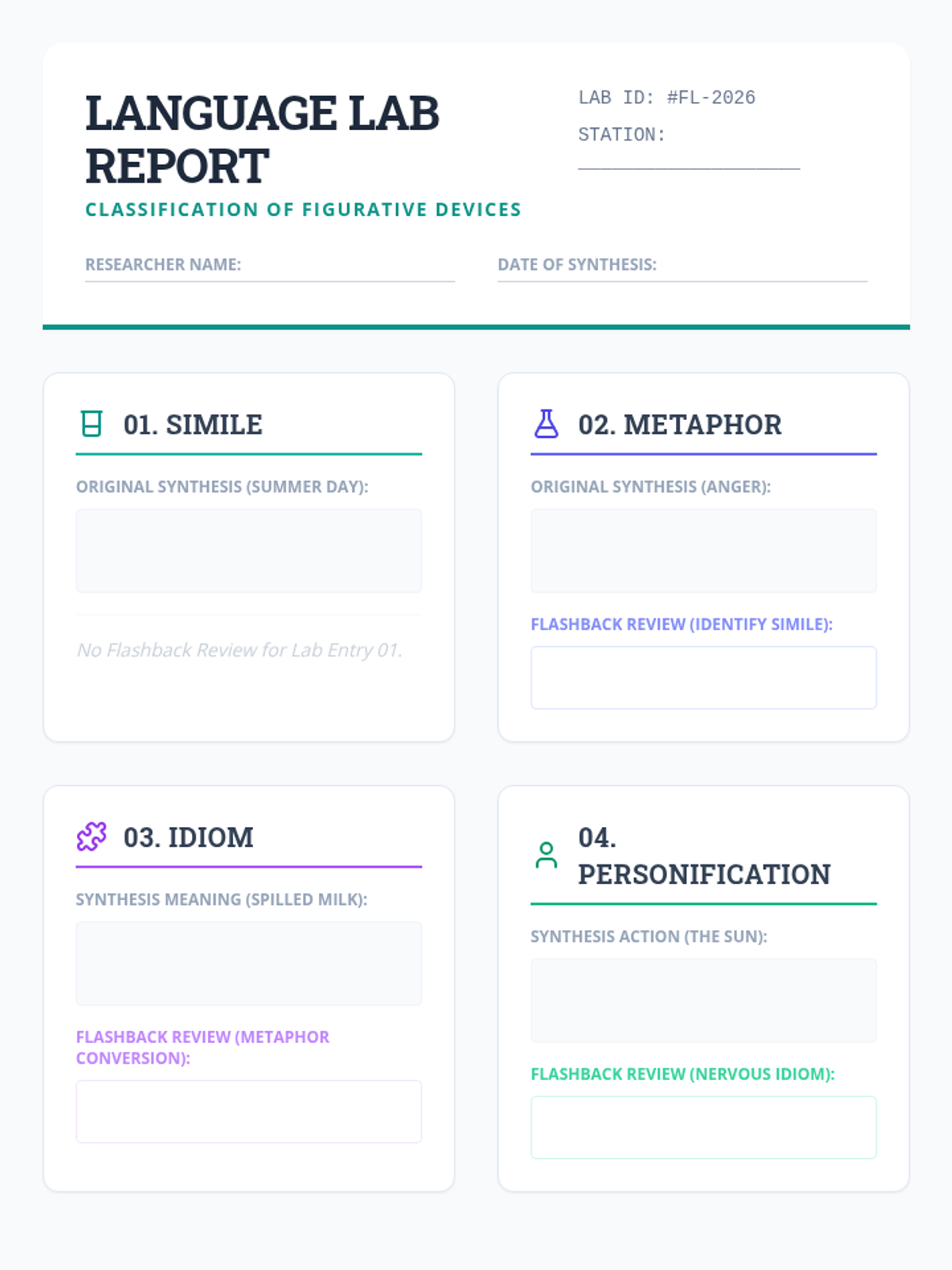 This lesson introduces nine key figurative language devices through interactive slides and practice. Students identify definitions, analyze examples, and create their own original phrases while reviewing previous concepts.
