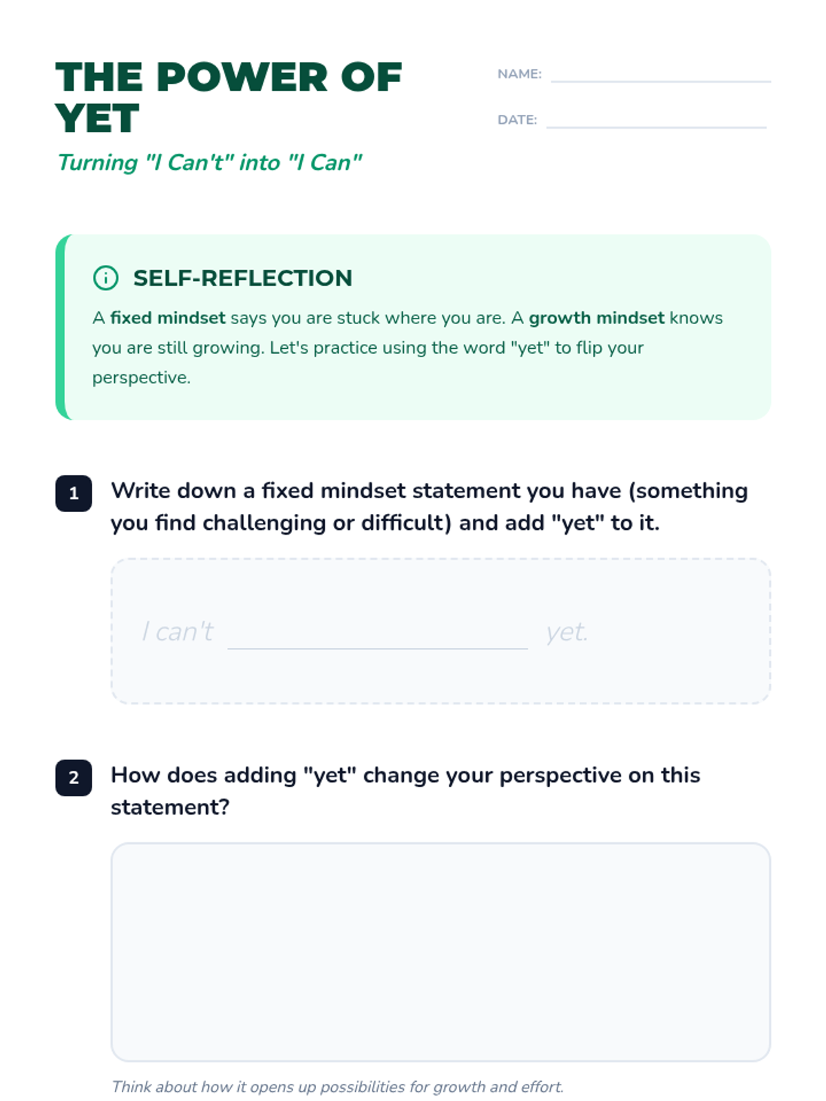 Introduction to the growth mindset. Focus on the 'Power of Yet' and building resilience when facing initial failure.