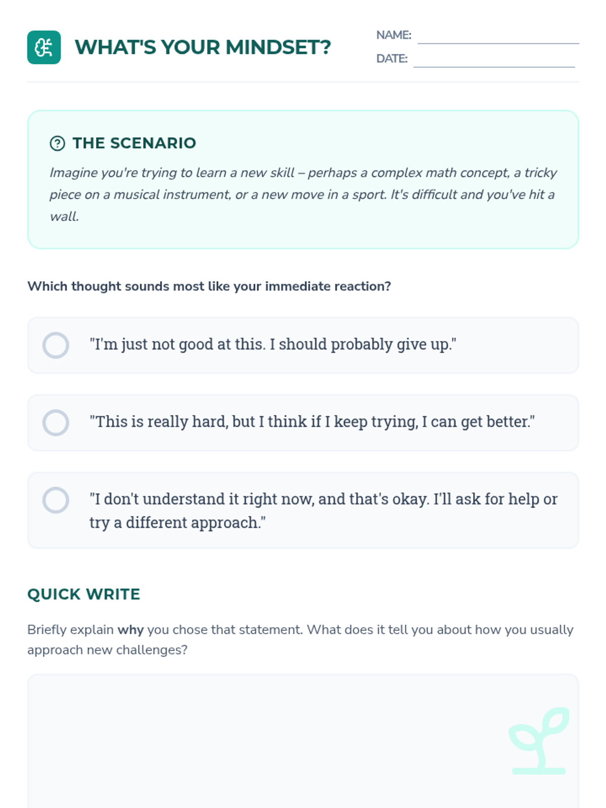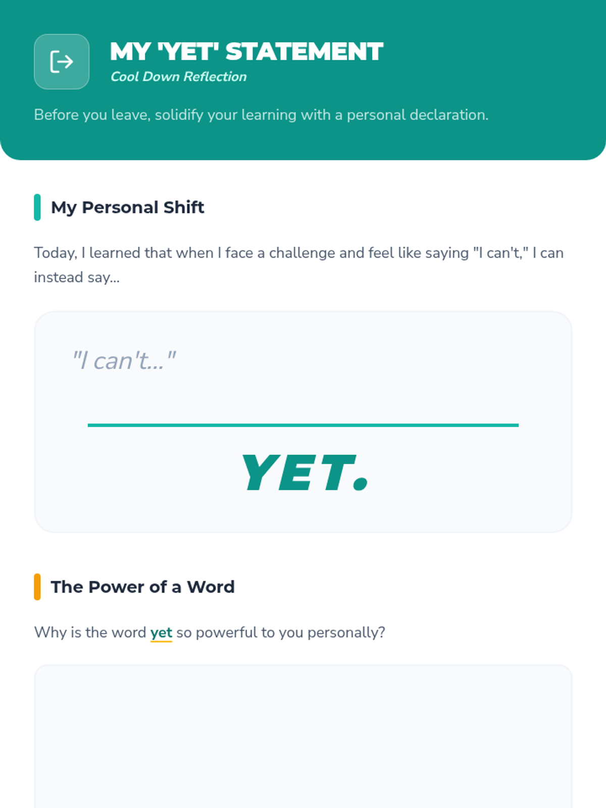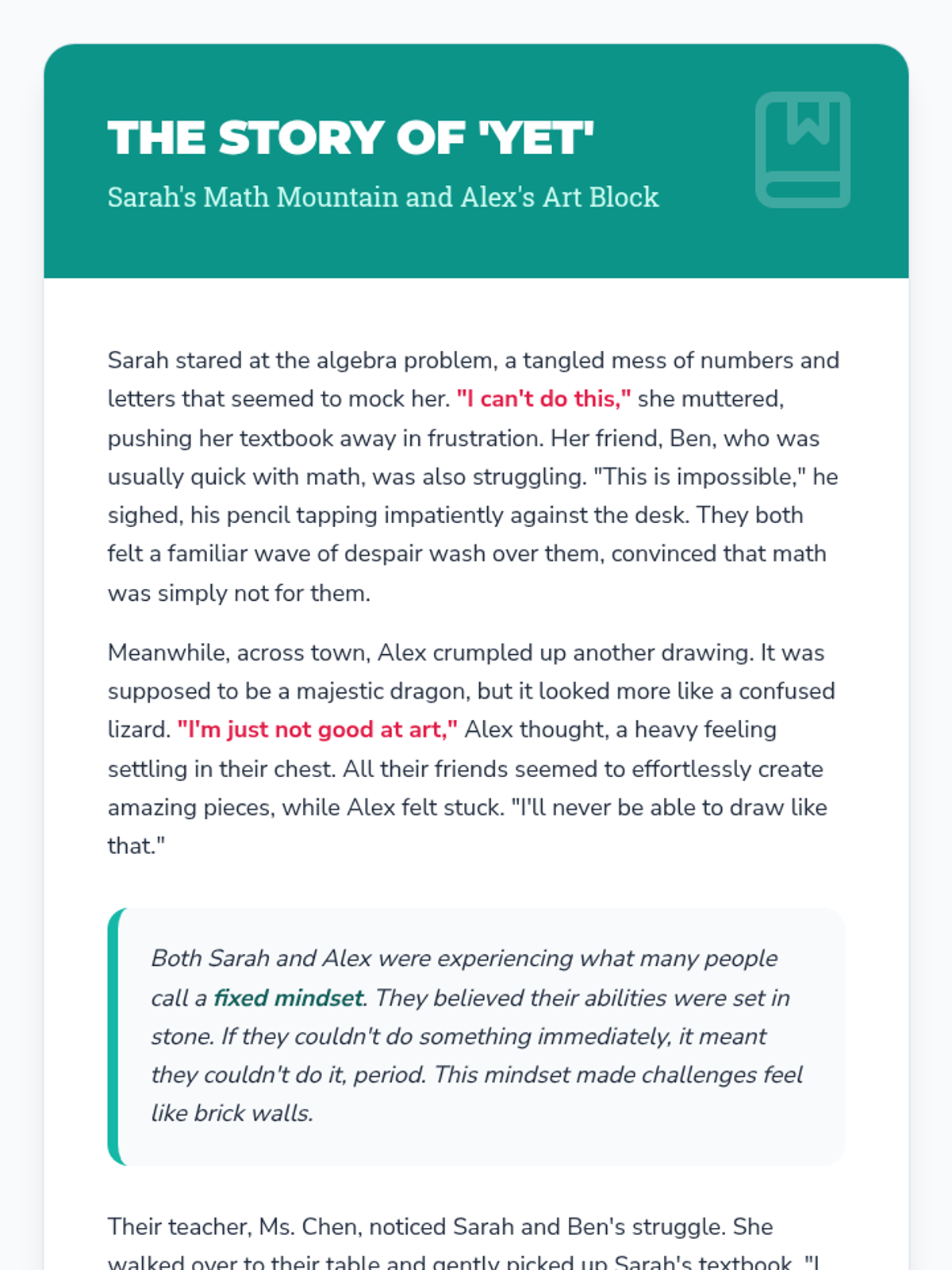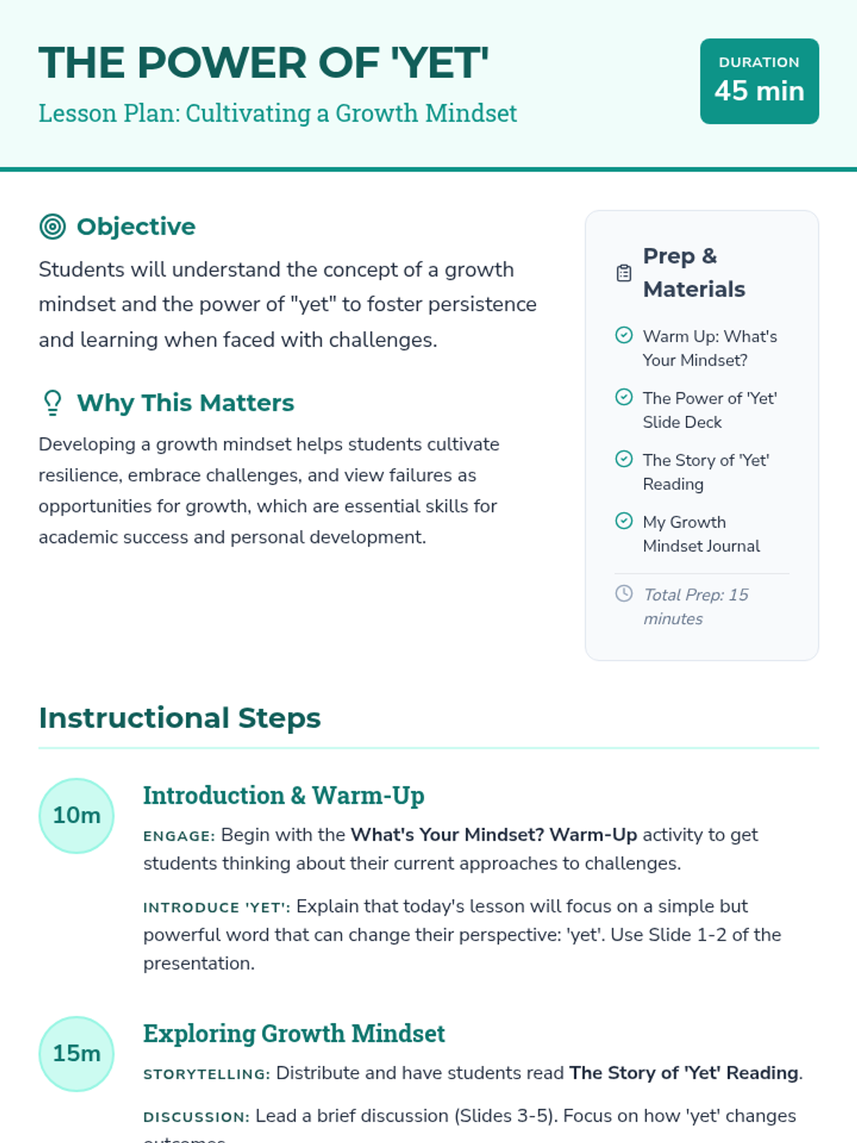 A transformative lesson for middle and high school students that introduces the 'power of yet' to cultivate a growth mindset, resilience, and persistence in the face of challenges.