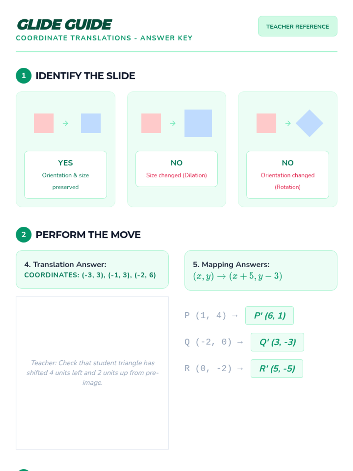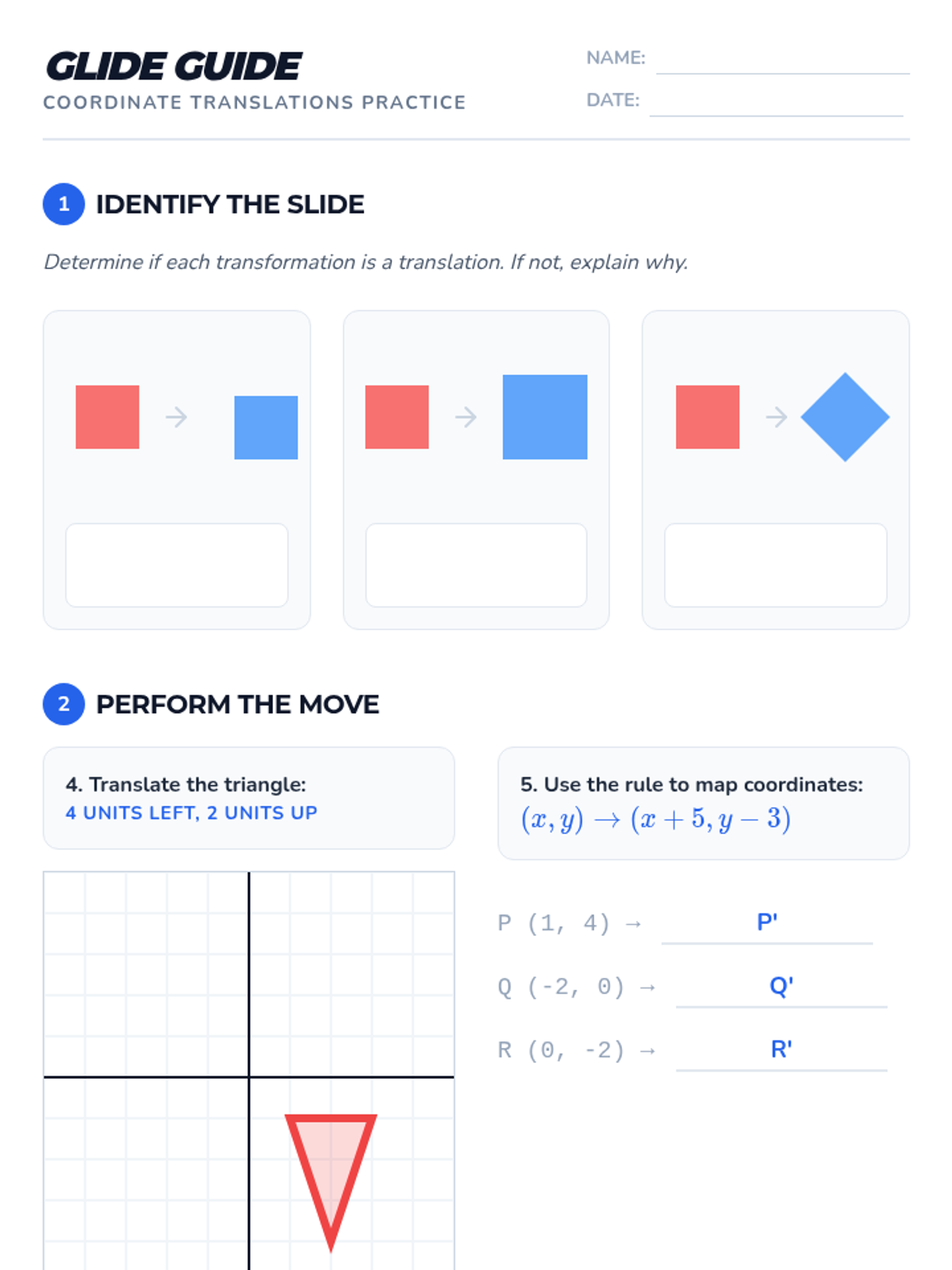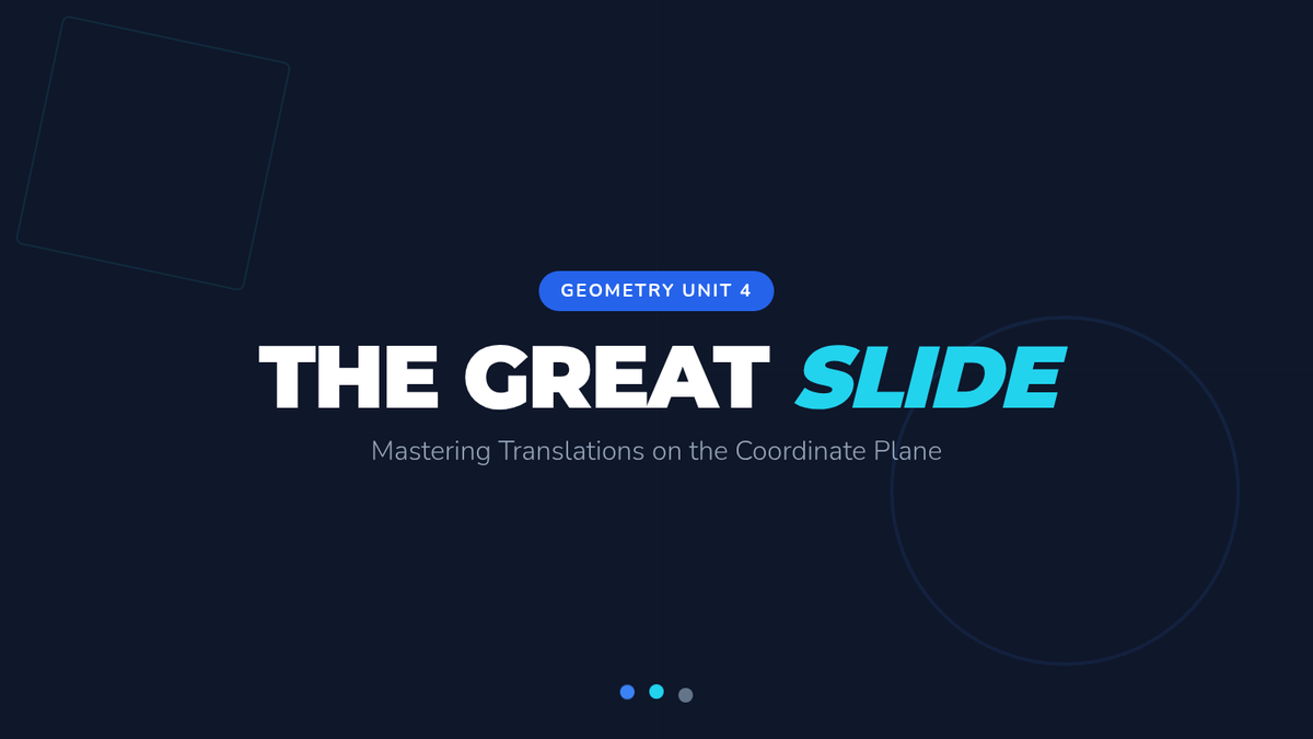 A comprehensive lesson on understanding and performing translations on the coordinate plane, including identifying slides, applying algebraic rules, and mapping new coordinates.