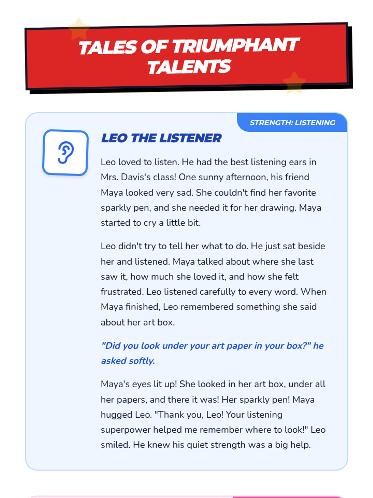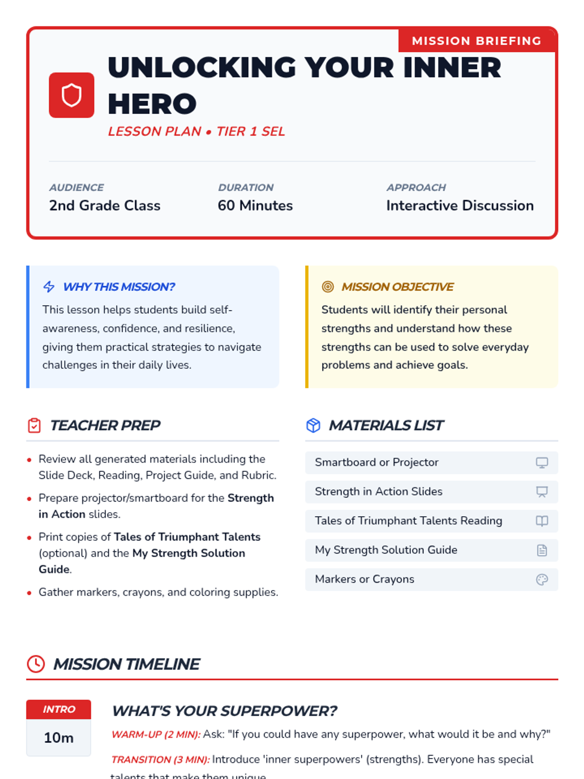 This lesson empowers 2nd graders to recognize their individual strengths and apply them to navigate challenges and achieve goals through interactive storytelling and a creative project.