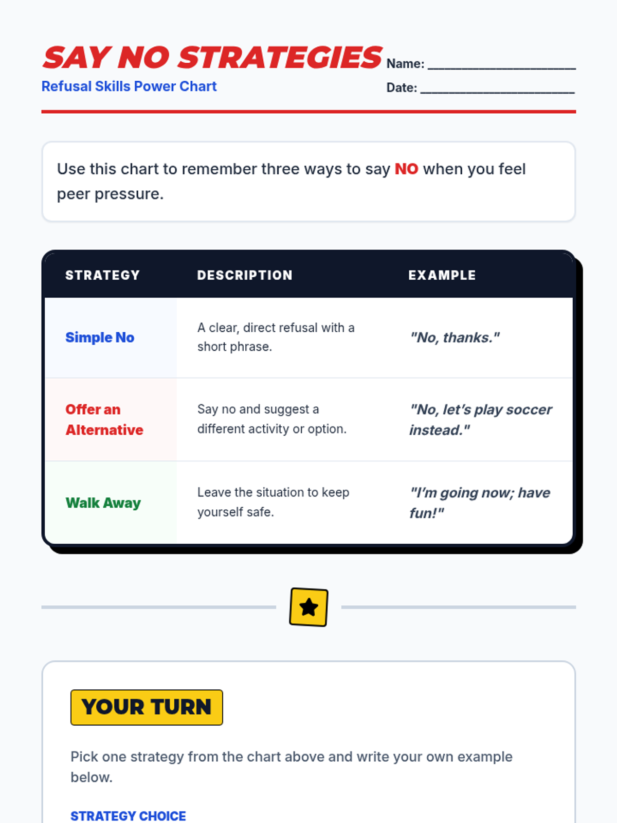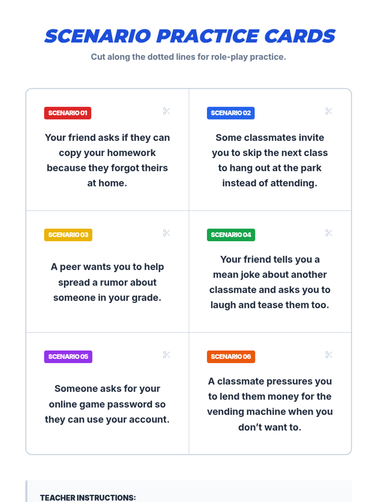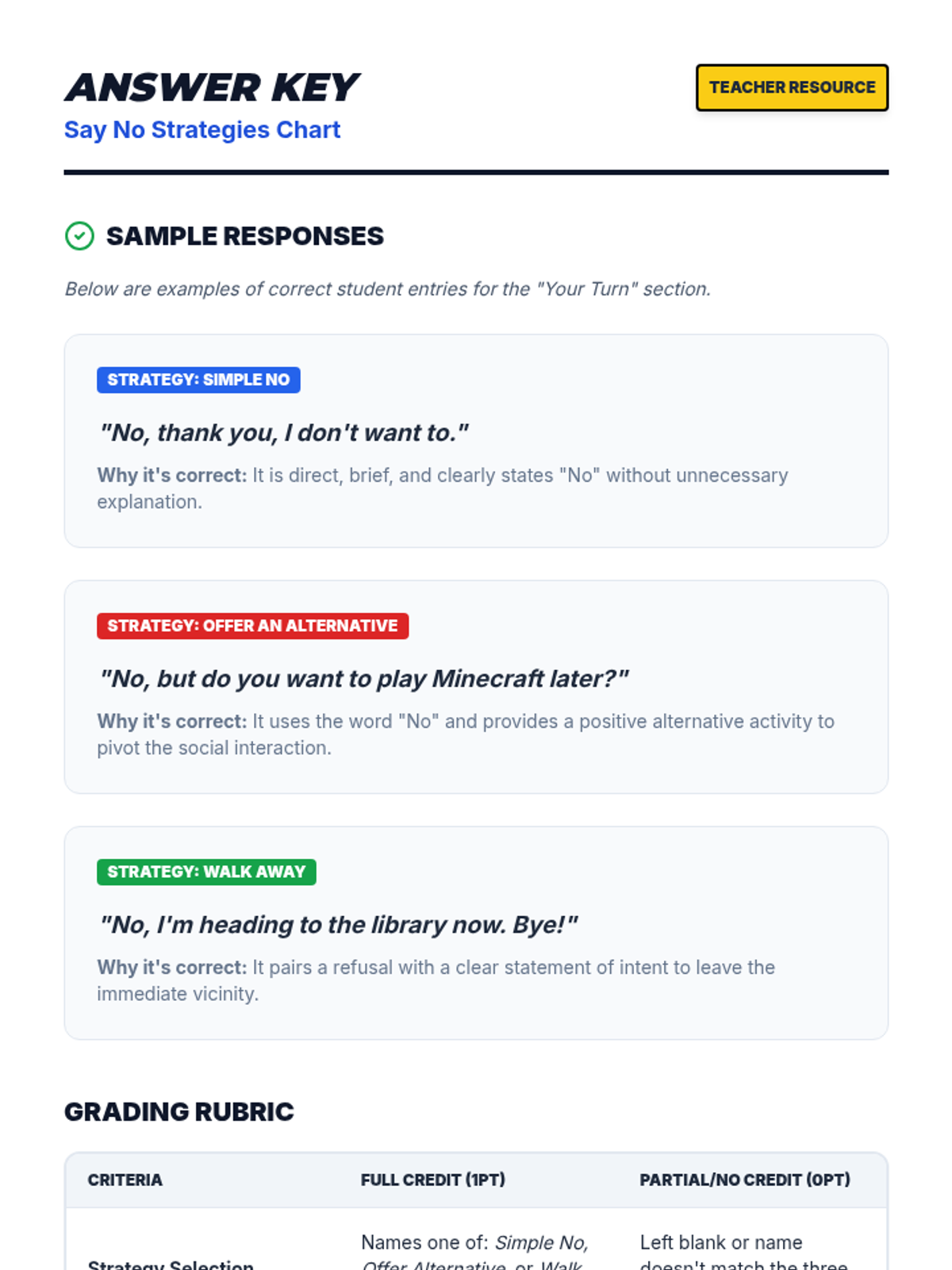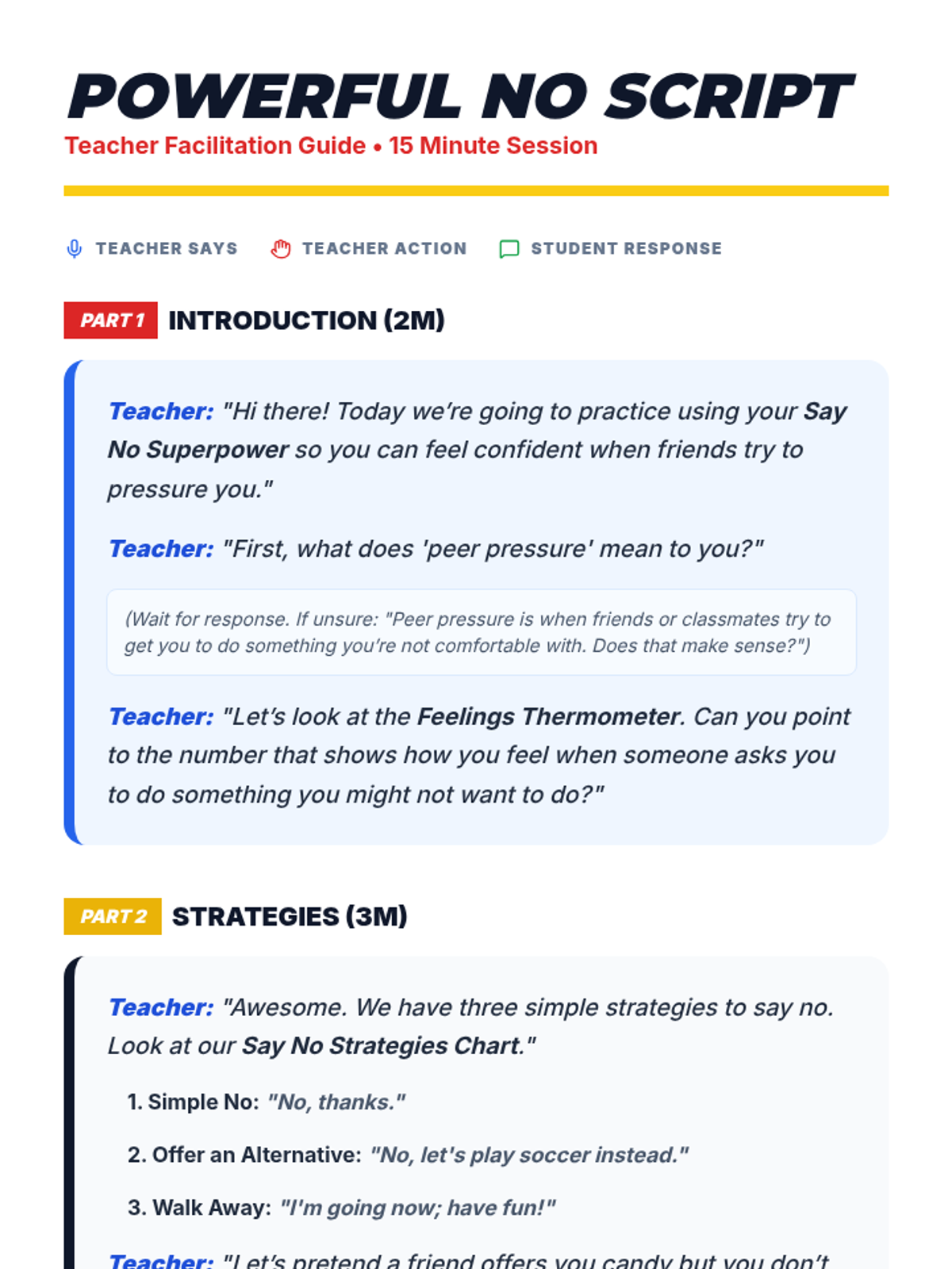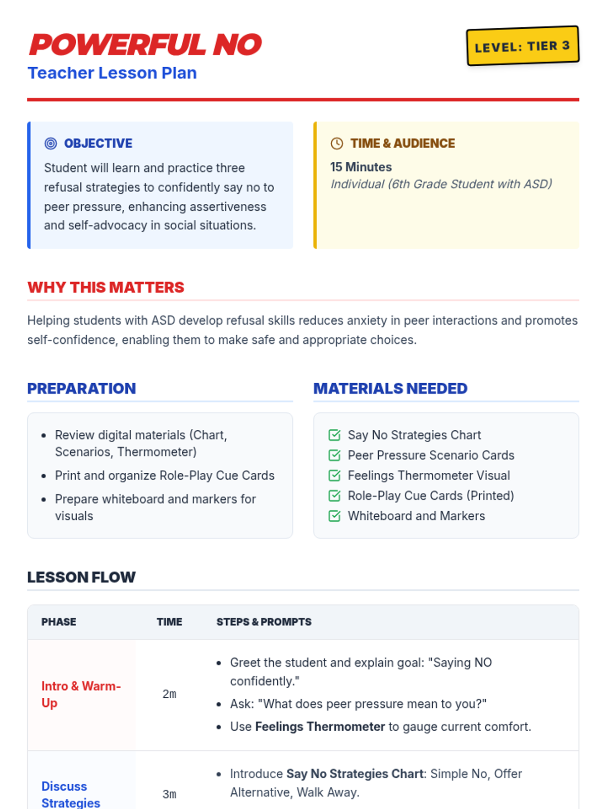 A 15-minute individual Tier 3 lesson for 6th graders with ASD to develop refusal skills and confidence against peer pressure using social scripts and role-play.