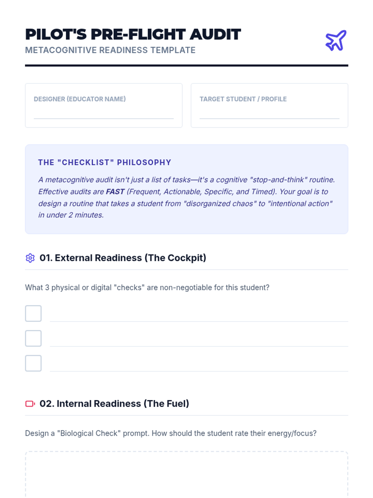 Design pre-study routines and checklists to help students assess cognitive load and organizational readiness before engaging with information.