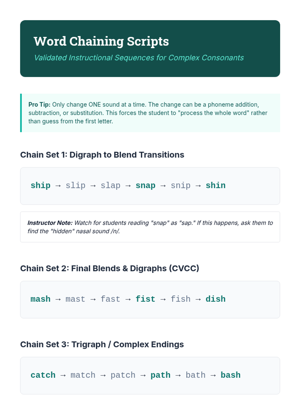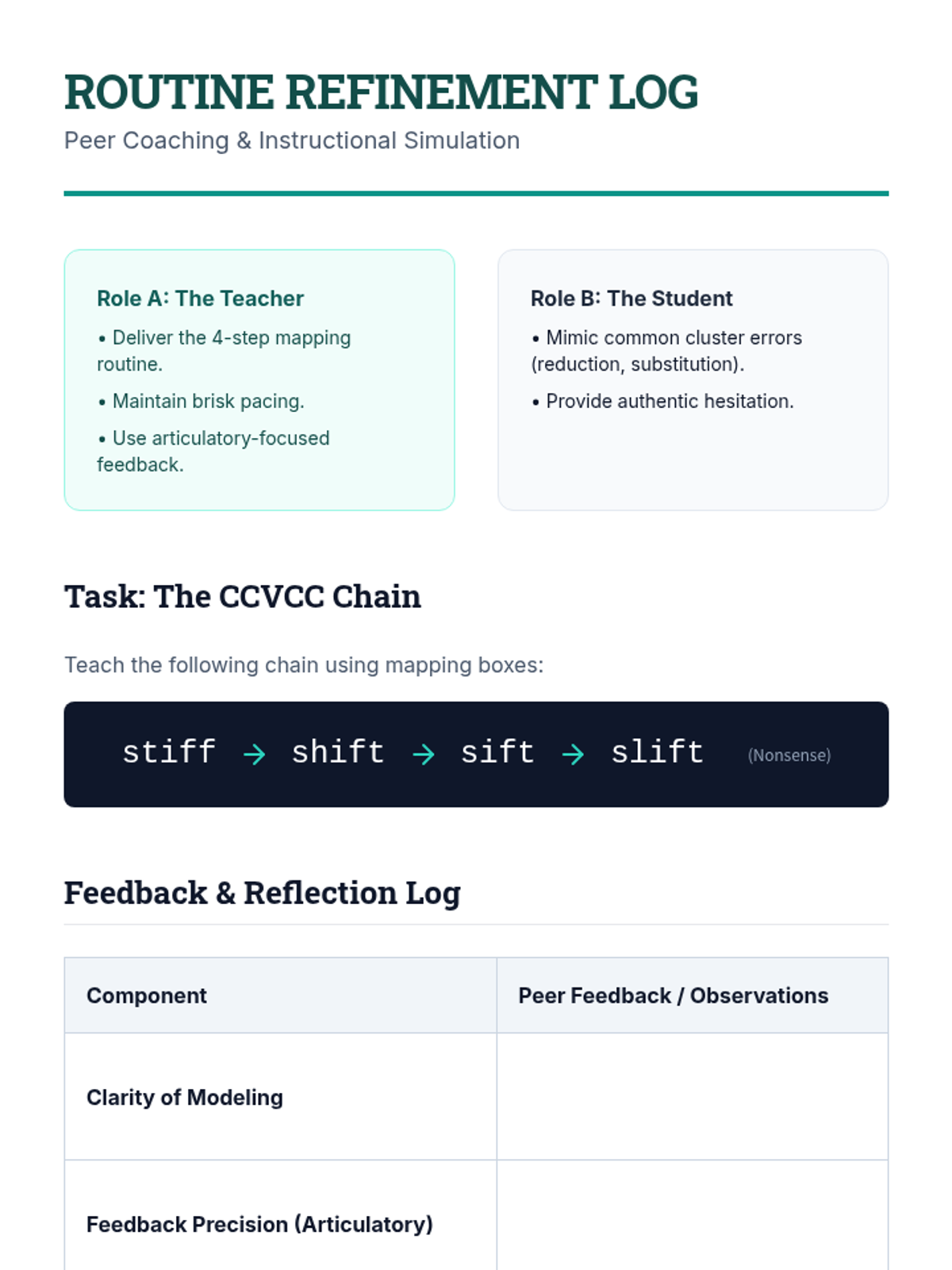 Focusing on pedagogy, students practice and refine explicit instructional routines such as word chaining and sound-spelling mapping boxes, utilizing peer feedback loops.
