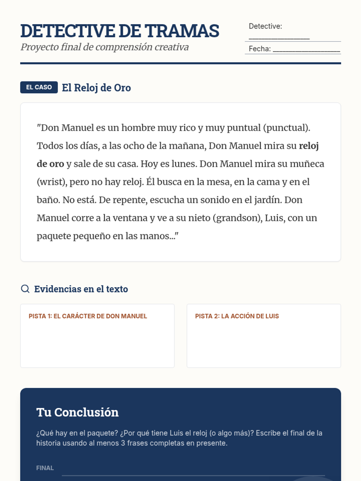 Students apply their understanding of character and plot to predict story conclusions and analyze textual evidence.