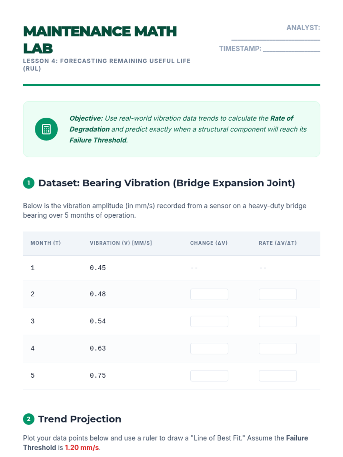 This lesson covers the use of time-series data and algorithms to predict the remaining useful life (RUL) of infrastructure.