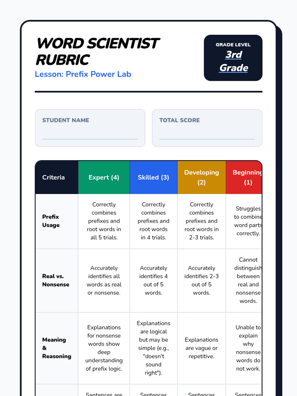 A fun, high-energy lesson where students explore how prefixes change the meaning of words. Students will use a monster-themed video and a "nonsense word" game to distinguish between real prefix combinations and silly ones.